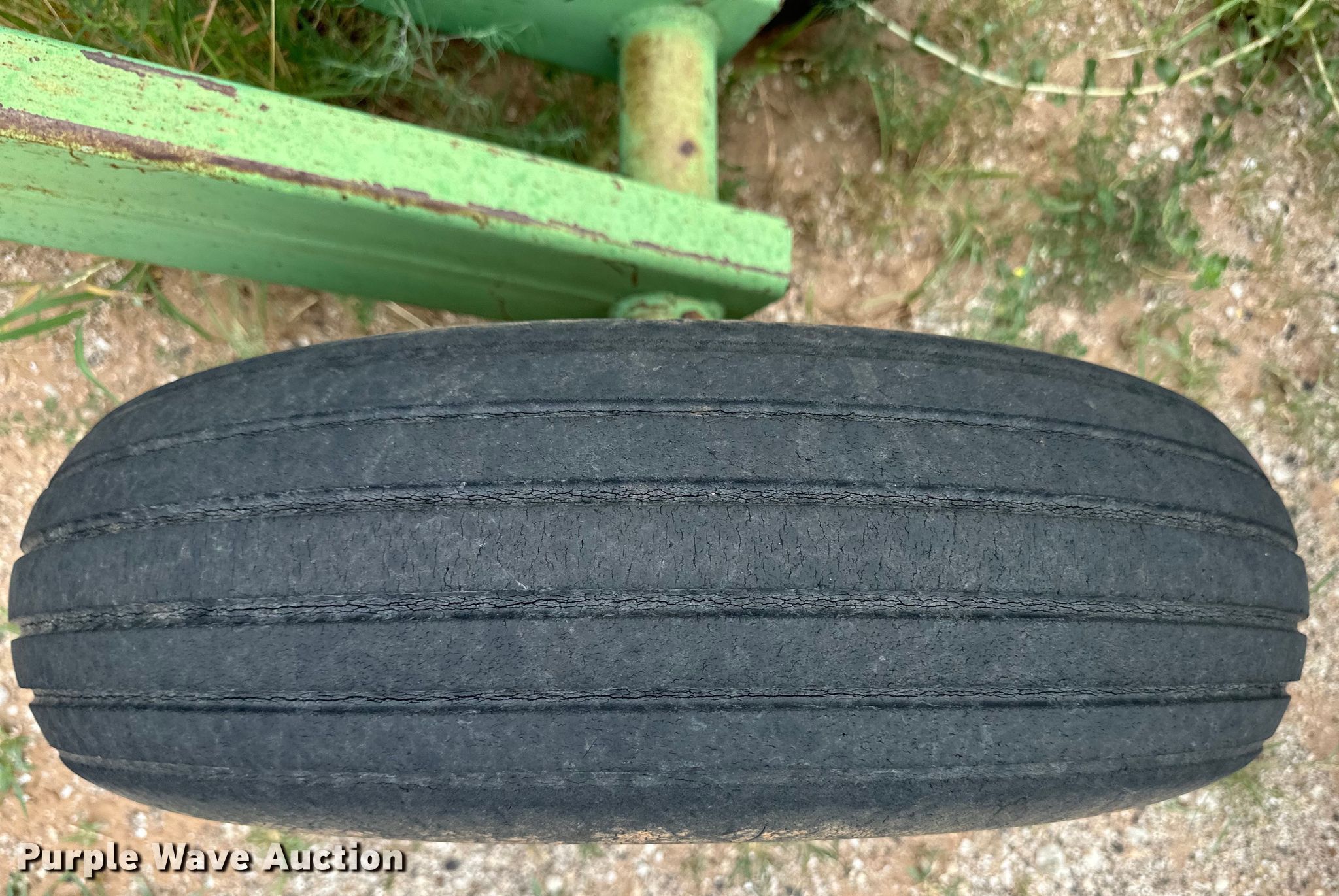 John Deere 340 off-set disk. Overall width: 14'. Features Front blades Diameter: 21", Spacing: 8.5", Rear blades Diameter: 23", Spacing: 9", Disk scrapers, Operation Hydraulic lift. Tires Tire size: 7.60-15. Woodward, OK 73801