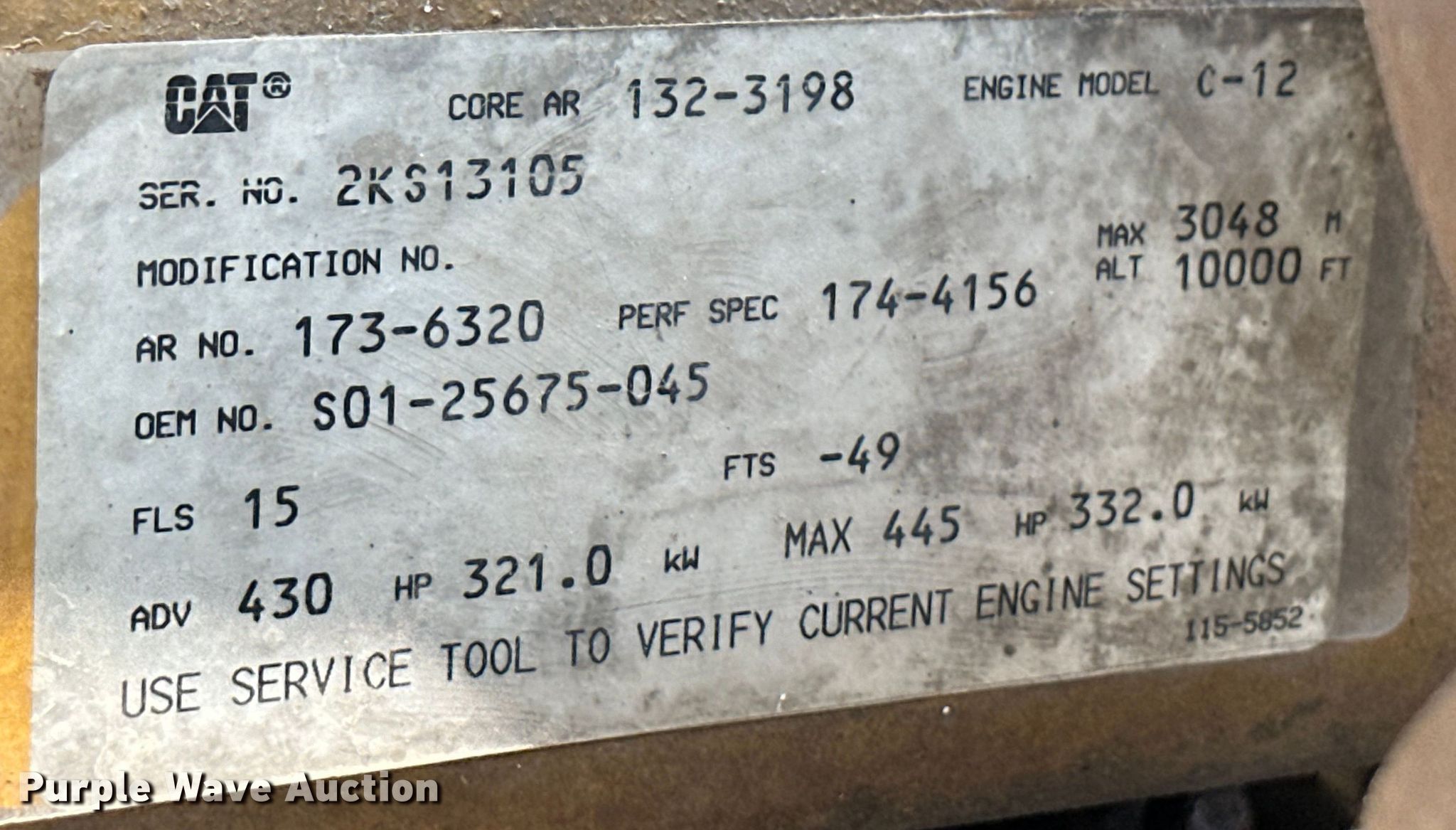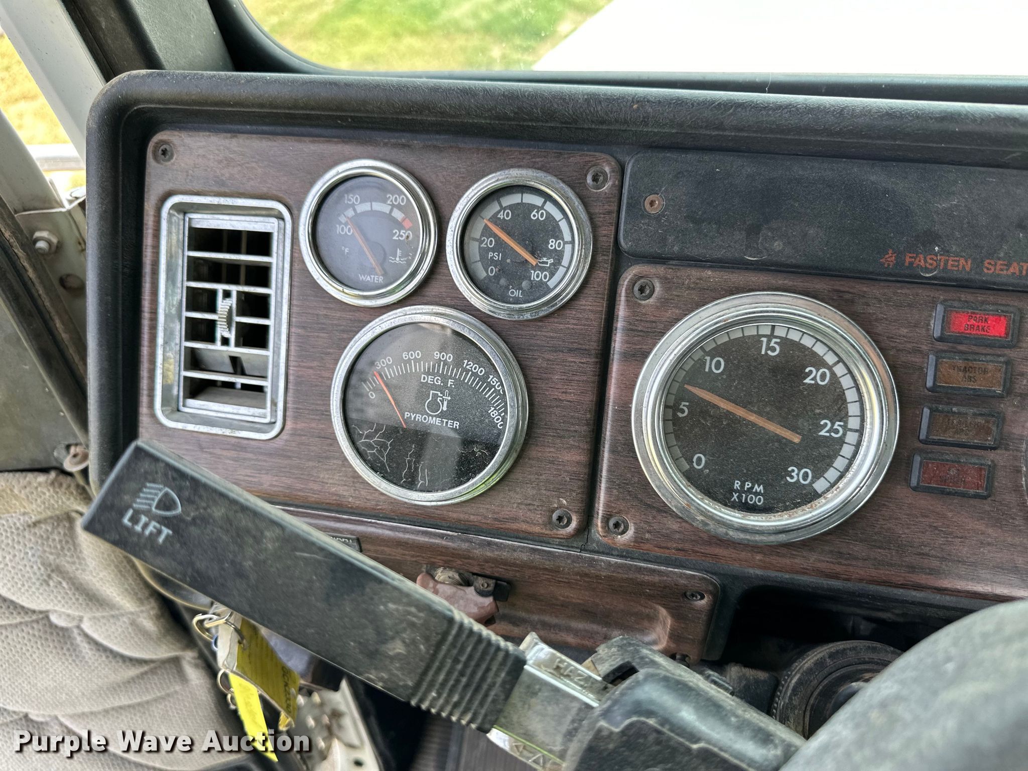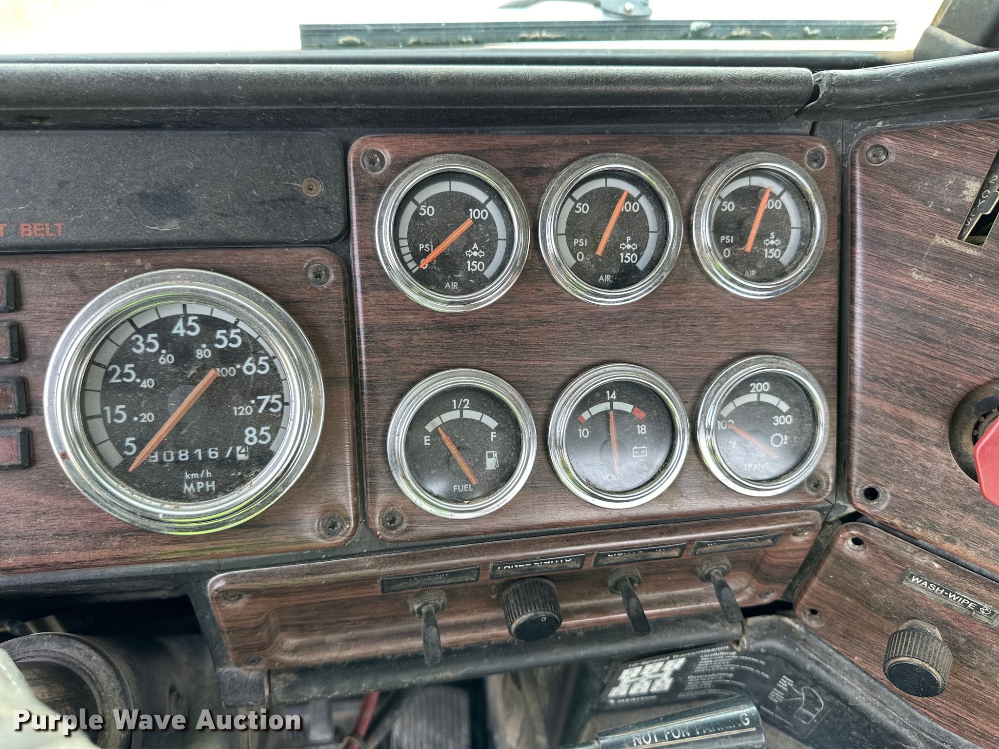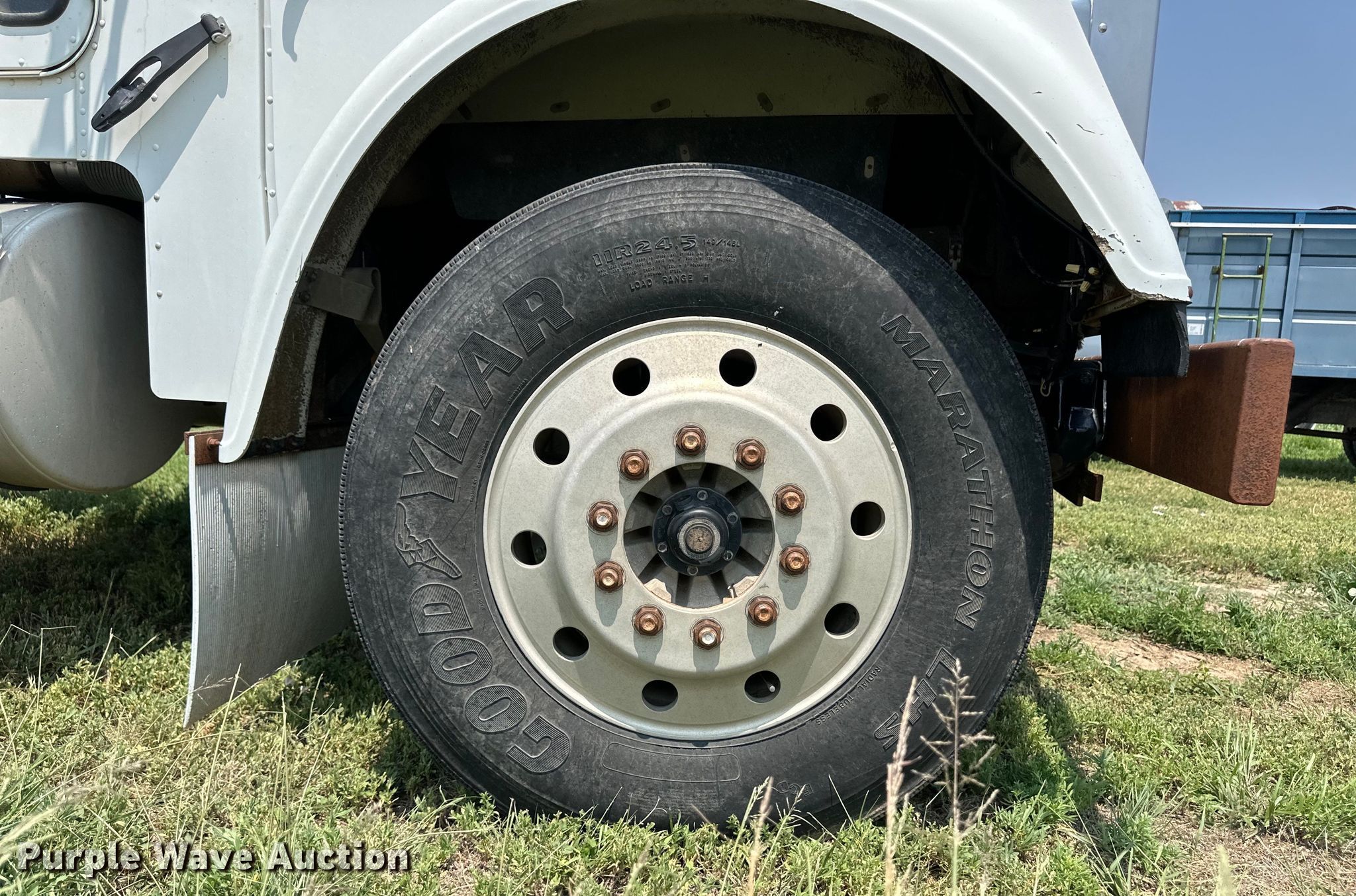 2000 Freightliner FLD semi truck. Miles: 908,167 on odometer, VIN: 1FUPFWEB5YPF66602. Engine Caterpillar C12, Serial: 2KS13105, Displacement: 12.0L, Cylinders: 6, Fuel type: Diesel, HP: 430, Engine brake. Transmission Meritor RMX10-165C, Manual, Speed: 10. Chassis Axles: Tandem, Differential lock: Inter-axle, Suspension: Air Dump valves, Brakes: Air. Interior AC, Heat, Heated mirrors, Cruise control, Air ride cab. Features Fifth wheel type: Air operated, Sliding, Fuel tank: Dual. Tires Size: 11R24.5. Kansas title. Title distribution may be delayed up to 30 days from verification of funds. Rundell Farms. Garden City, KS 67846