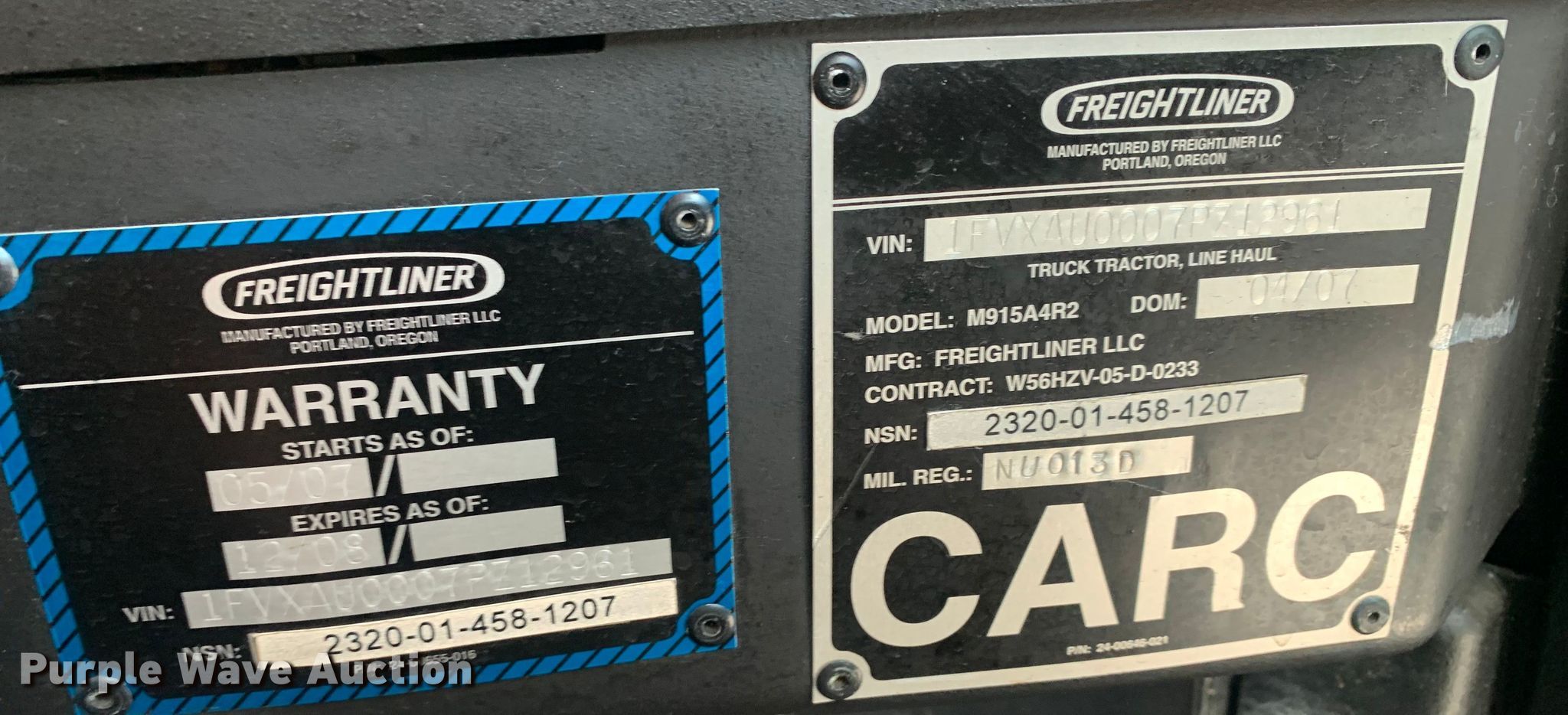 Purple Wave is selling a used Truck Tractor in Texas. This item is a 2007 Freightliner M915A4R2 FLD120 semi truck with the following: Miles: 62,698 on odometer, VIN: 1FVXAU0007PZ12961
