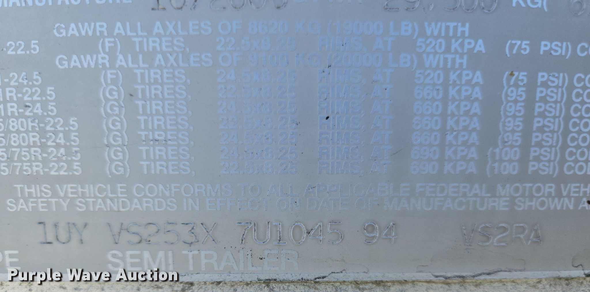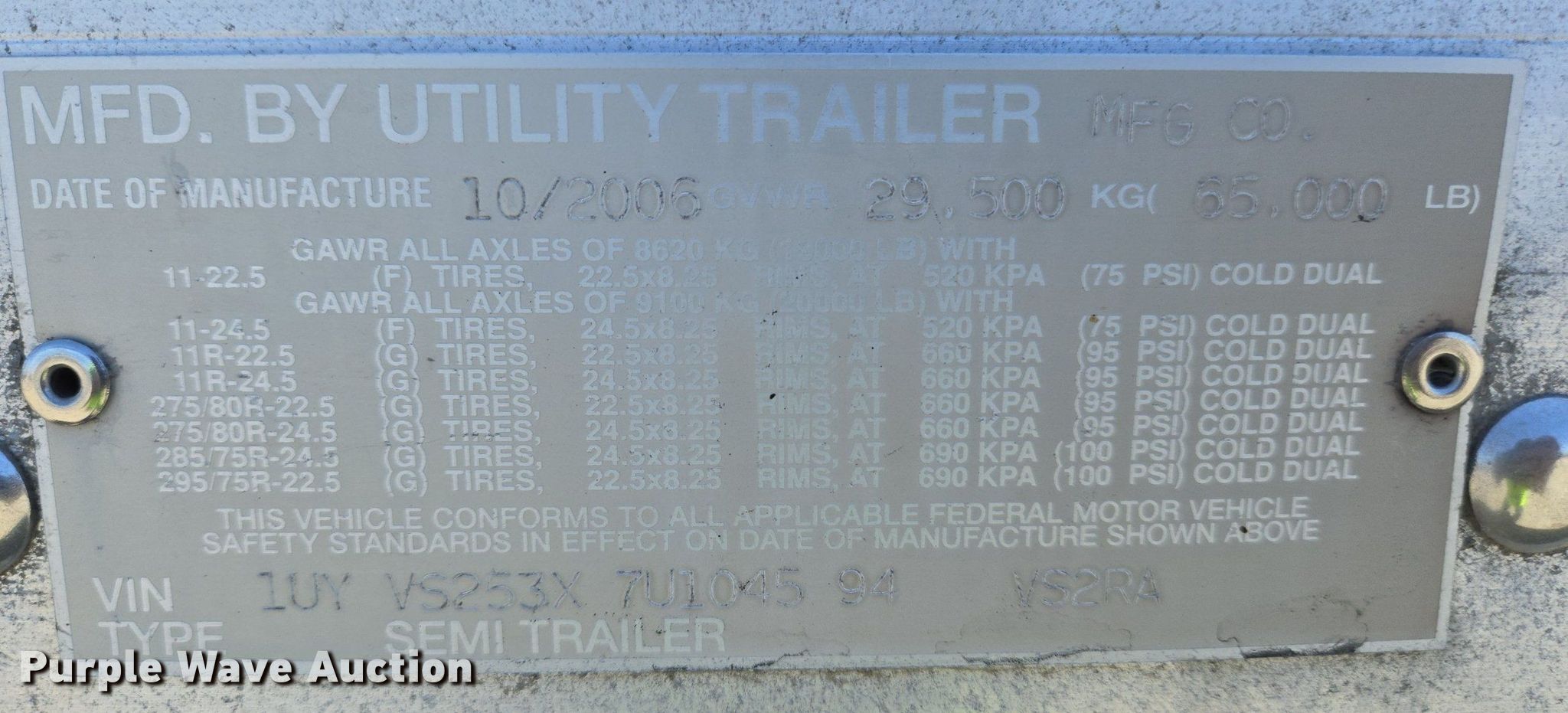 2007 Utility Trailer refrigerated van trailer. VIN: 1UYVS253X7U104594, Unit #: 55570084, ARB IDN: 206791747. Dimensions Body: 53' L x 102" W. Features Deck type: Aluminum, Refrigeration unit 2019 Carrier Transicold X4 7300, Hours: 9,431, Serial: TAP91607247. Chassis Landing gear: Dual, Suspension: Air, Brakes: Air, Axles: Tandem Sliding, GVWR: 65,000 lbs. Tires Steel wheels, Size: 295/75R22.5. Notes Arber Transport Carrier Refrigeration unit certification issued 2020. Lender owned. Item condition and history are unknown. No additional information is available. Titles will be distributed after confirmation of payment and removal.. Arizona title. Title distribution may be delayed up to 30 days from verification of funds. Antelope, CA 95843