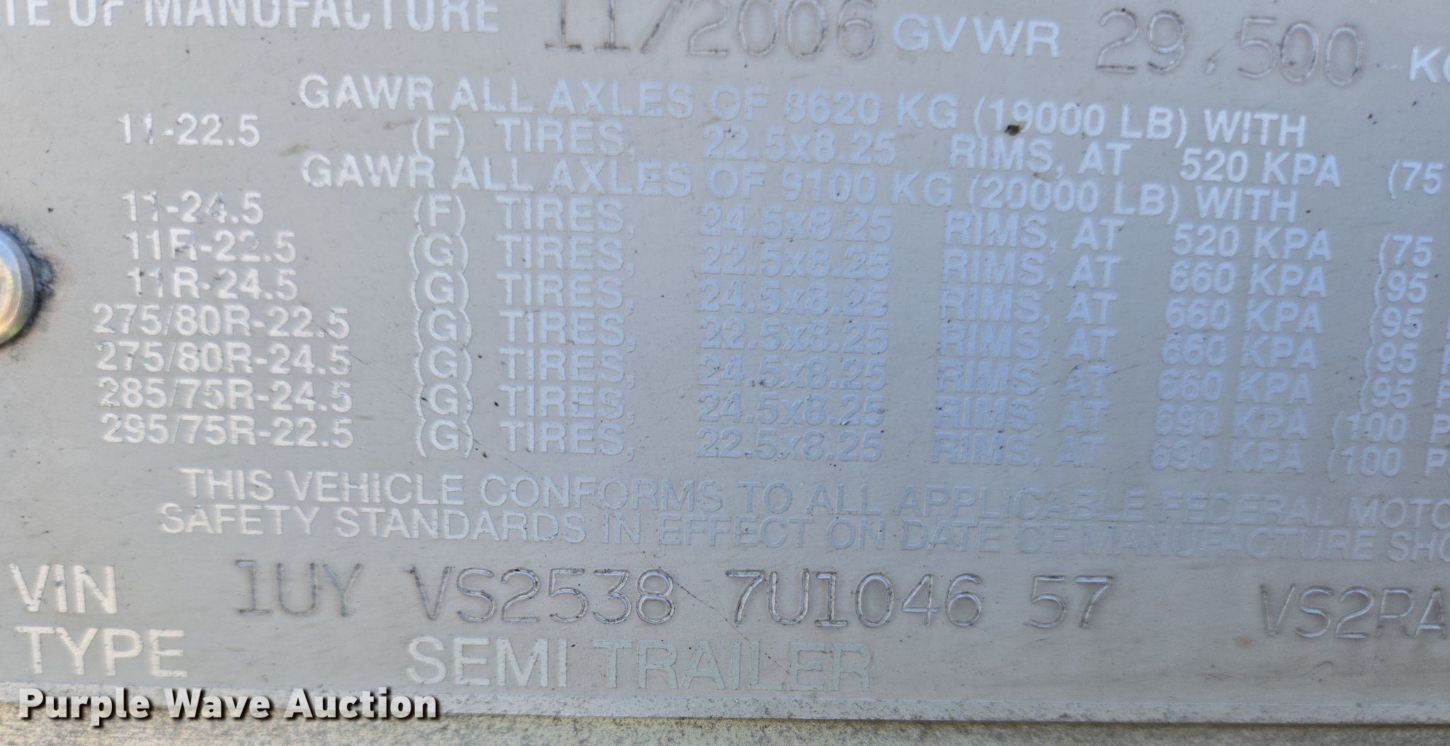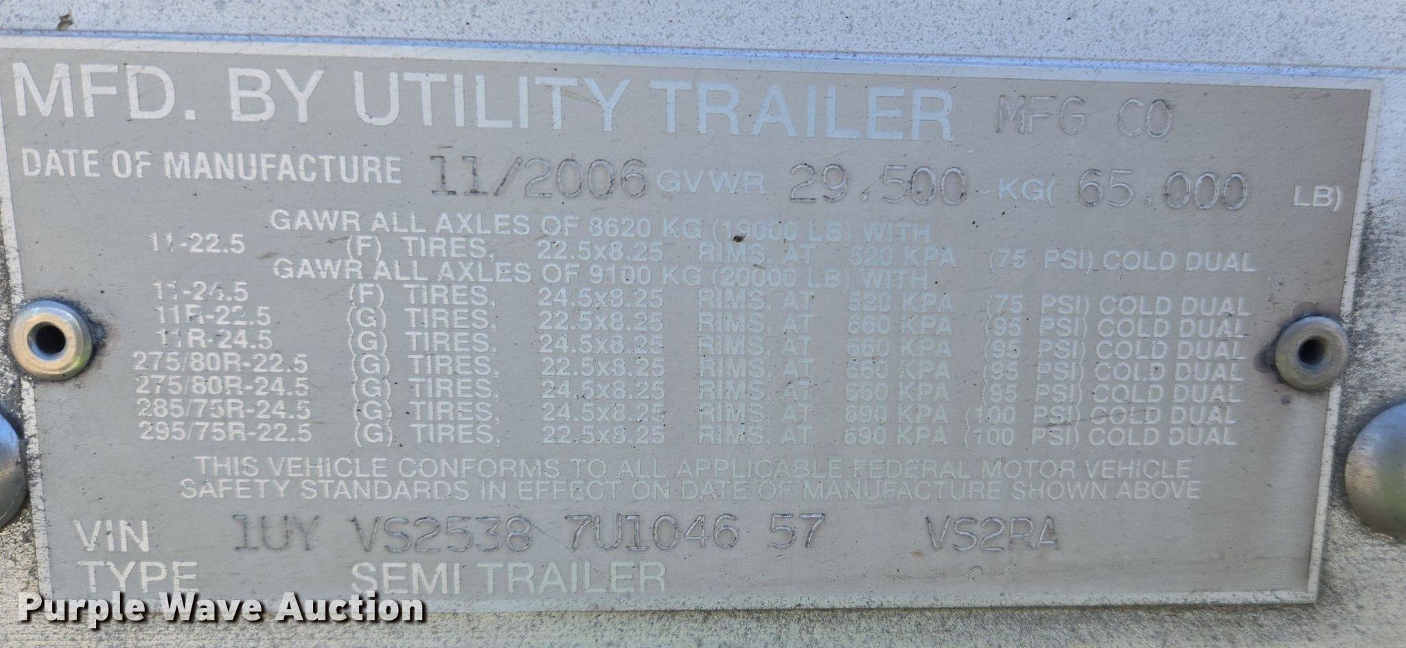 2007 Utility Trailer refrigerated van trailer. VIN: 1UYVS25387U104657, Unit #: 55572464. Dimensions Body: 53' L x 102" W. Features Deck type: Aluminum, Refrigeration unit Carrier, Hours: 11,734. Chassis Landing gear: Dual, Suspension: Air, Brakes: Air, Axles: Tandem Sliding, GVWR: 65,000 lbs. Tires Steel wheels, Size: 295/75R22.5. Notes Turns over but will not start. Lender owned. Item condition and history are unknown. No additional information is available. Titles will be distributed after confirmation of payment and removal.. Arizona title. Title distribution may be delayed up to 30 days from verification of funds. Antelope, CA 95843