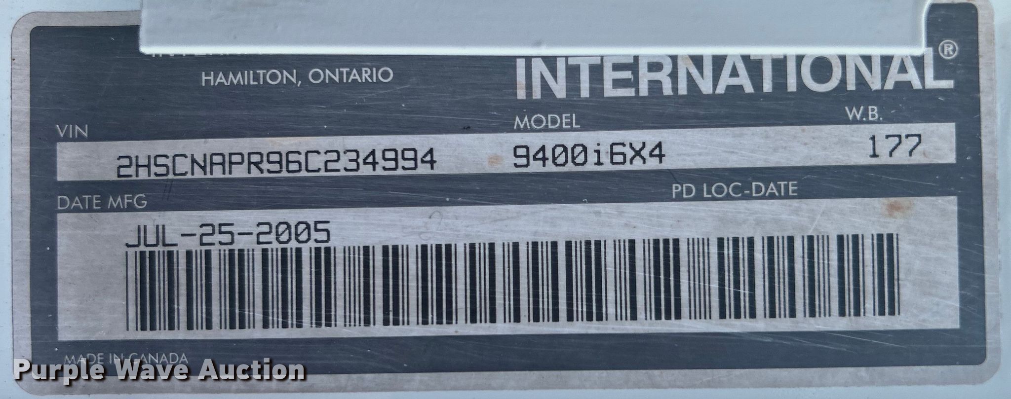 Purple Wave is selling a used Truck Tractor in Oklahoma. This item is a 2006 International 9400i semi truck with the following: Miles: 772,304 on odometer, VIN: 2HSCNAPR96C234994