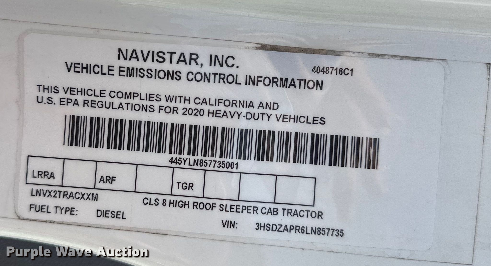 Purple Wave is selling a used Truck Tractor in Arkansas. This item is a 2020 International LT625 semi truck with the following: Miles: 535,691 on odometer, Hours: 22,635 on meter, VIN: 3HSDZAPR6LN857735