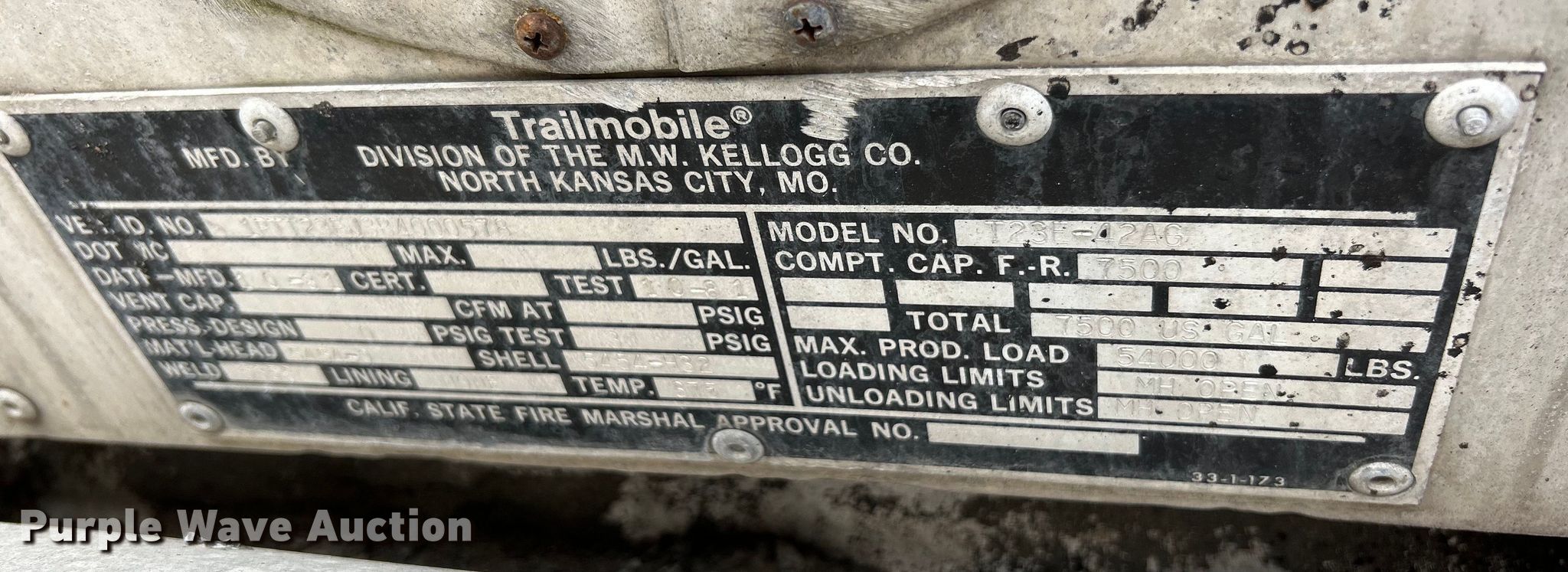 Purple Wave is selling a used Tank Trailer in Missouri. This item is a 1981 Trailmobile T23E-42AG tank trailer with the following: VIN: 1PTT23EJ3B4000578