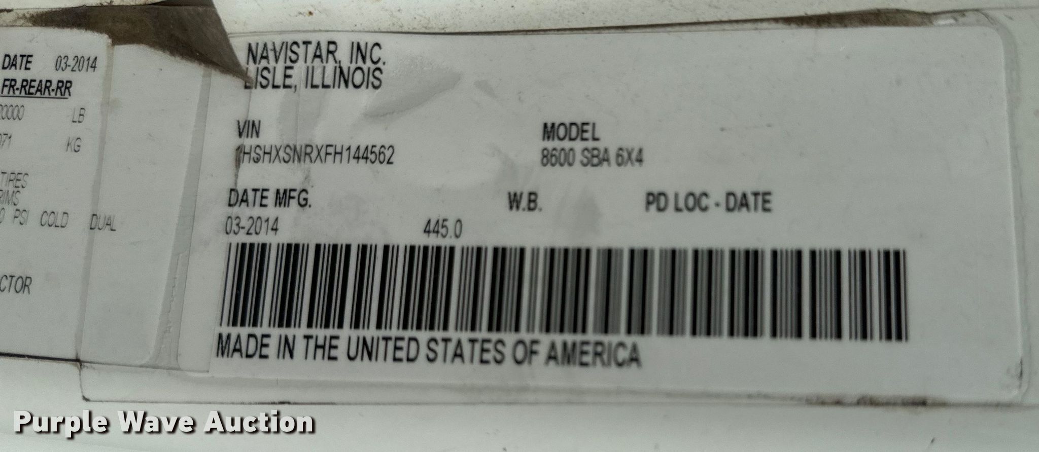 • VIN: 1HSHXSNRXFH144562
