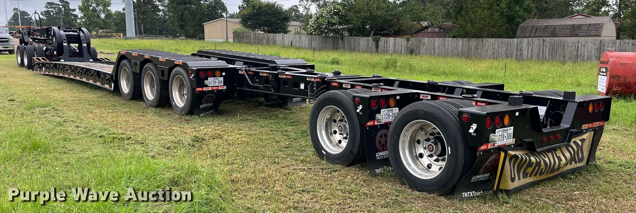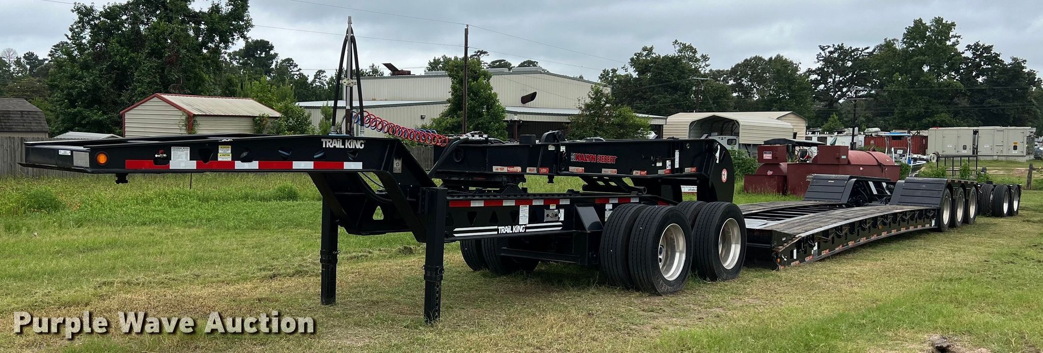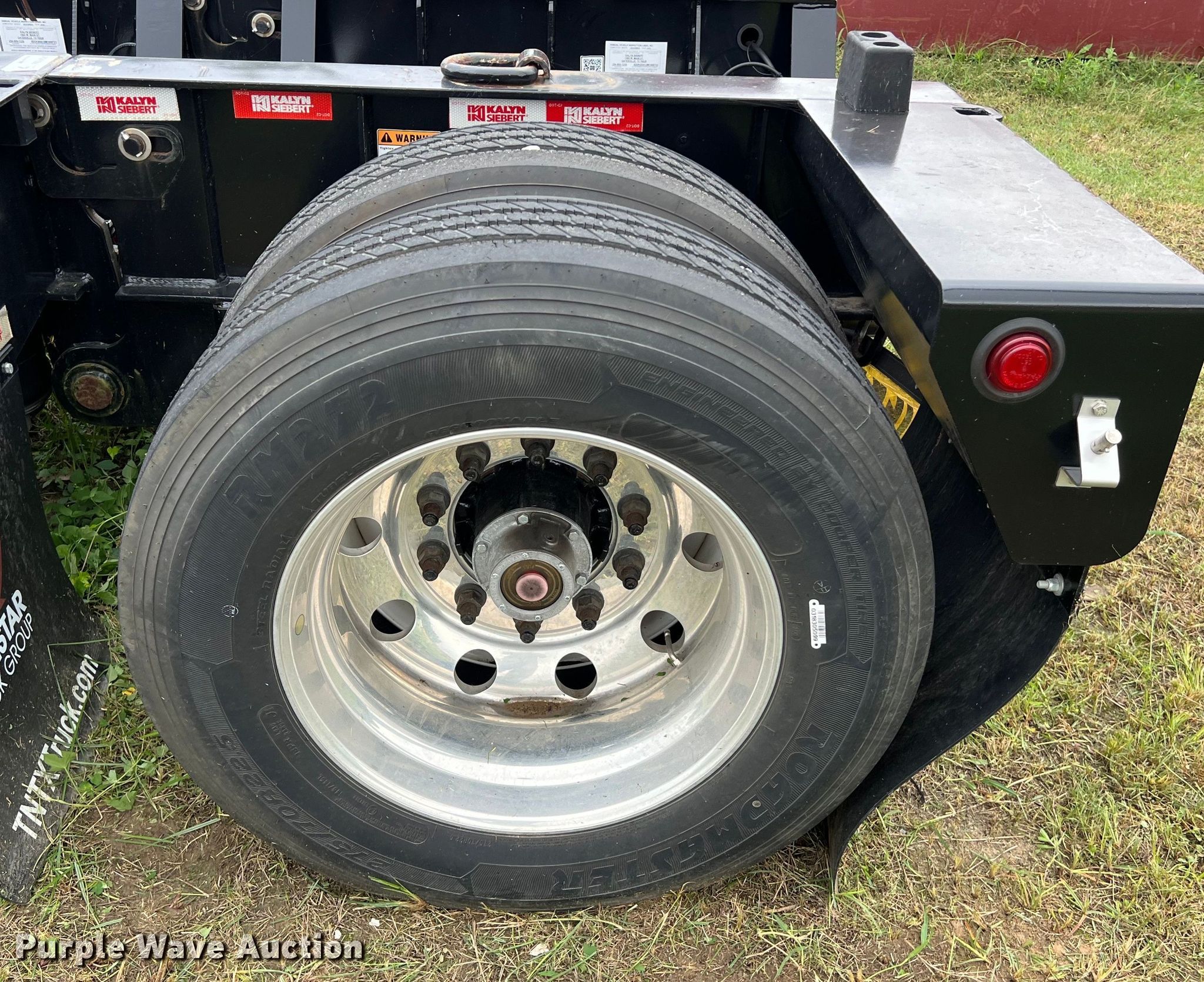 2021 Kalyn Siebert KS-HRG-3A-60T-MOD-9W lowboy equipment trailer. VIN: 5DDKE2637M1068718. Dimensions Overall: 55' L x 9' W, Deck: 25' L x 9' W, Rear deck length: 12'. Features Deck type: Wood, Outriggers: Swing-out Board size: 12", Neck type: Detachable. Chassis Suspension: Air, Brakes: Air, Axles: Triple, GVWR: 145,812 lbs, GAWR: 20,280 lbs. Tires Aluminum wheels, Size: 275/70R22.5. 2018 Trail King TK80J jeep/dolly VIN: 1TKR02528JM057479. Dimensions Overall: 25' L x 8' 6" W. Chassis Landing gear: Dual, Suspension: Air, Brakes: Air, Axles: Tandem, GVWR: 87,080 lbs, GAWR: 24,751 lbs. Tires Aluminum wheels, Size: 275/70R22.5. 2021 Kalyn Siebert KS-HRG-1A-12T-TAG detachable tag axle VIN: 5DDKB0510M1068721. Dimensions Overall: 4' 6" L x 9' W. Chassis Suspension: Air, Brakes: Air, GVWR: 27,154 lbs, GAWR: 20,280 lbs. Tires Aluminum wheels, Size: 275/70R22.5. 2021 Kalyn Siebert KS-HRG-1A-12T-FLIP flip axle VIN: 5DDKB0512M1068722. Dimensions Overall: 4' 7" L x 9' W. Chassis Suspension: Air, Brakes: Air, GVWR: 26,954 lbs, GAWR: 20,280 lbs. Tires Aluminum wheels, Size: 275/70R22.5. Trailer - Texas title. Jeep/dolly - Transfer of ownership will be a bill of sale. Tag axle - Transfer of ownership will be a bill of sale. Flip axle - Transfer of ownership will be a bill of sale.. Title has a lien that will be released following the close of the auction. Title distribution may be delayed up to 30 days from verification of funds. Magnum Sitework and Excavation, LLC. Montgomery, TX 77316