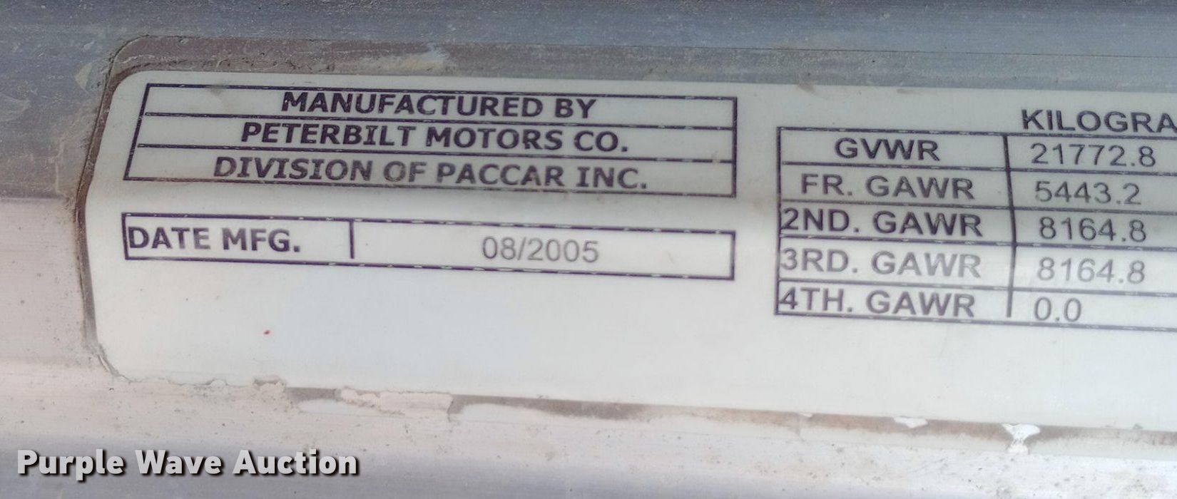 Purple Wave is selling a used Truck Tractor in Kansas. This item is a 2006 Peterbilt 379 semi truck with the following: Miles: 37,904 on odometer, Actual mileage unknown, Hours: 21,021 on meter, VIN: 1XP5DB9X16D896508