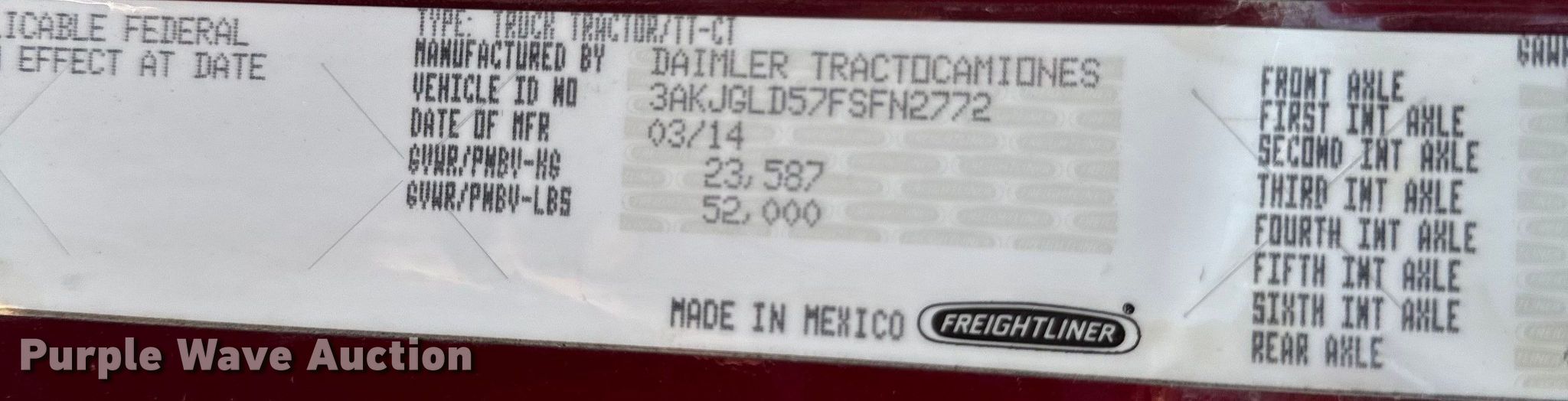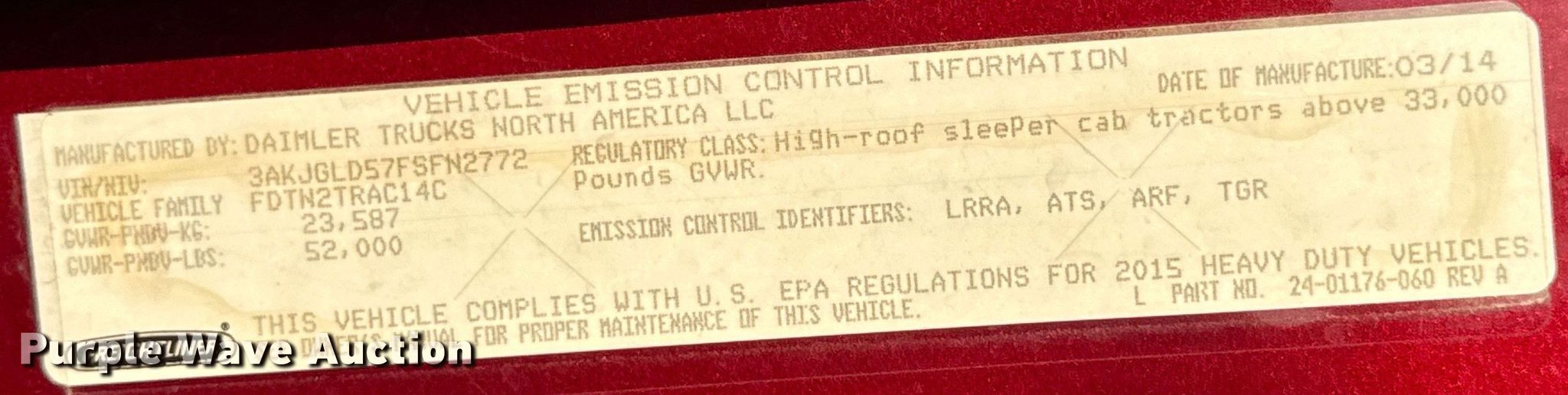 - VIN: 3AKJGLD57FSFN2772
