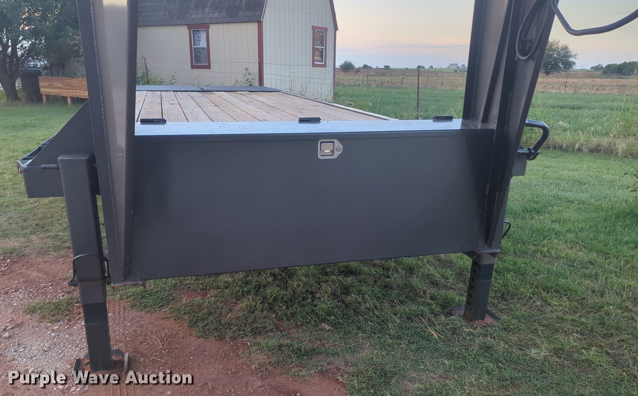 2023 Landoll equipment trailer. VIN: 1LH0FSFT5P2031902. Dimensions Overall: 34' L x 102" W, Deck: 20' L x 102" W, Tail length: 6', Ramps: Manual Length: 70". Features Deck type: Wood. Chassis Hitch: Gooseneck, Landing gear: Dual, Suspension: Spring, Brakes: Electric, Axles: Tandem, GVWR: 14,000 lbs, GAWR: 7,000 lbs. Tires Steel wheels, Size: 235/80R16. Transfer of ownership documentation will be a bill of sale. Kingfisher, OK 73750