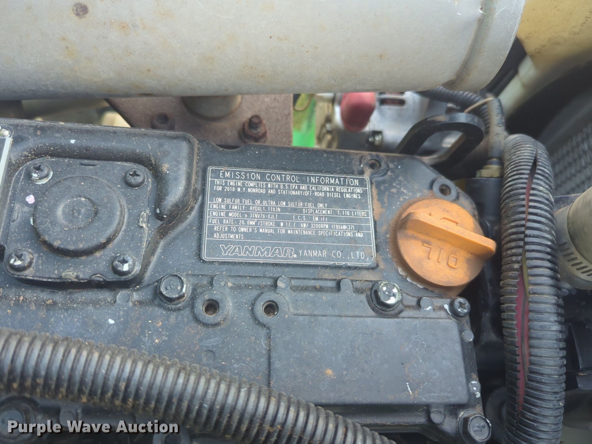 John Deere X748 lawn mower. Hours: 1,015 on meter, Cutting width: 60". Engine Yanmar 3TNV76-XLT, Serial: CH3011d279941, Displacement: 1.116, Cylinders: 3, Fuel type: Diesel. Transmission Hydrostatic. Features Grass bagger. Tires Front: 16x8.50-10, Rear: 26x12.00-12. Kingfisher, OK 73750