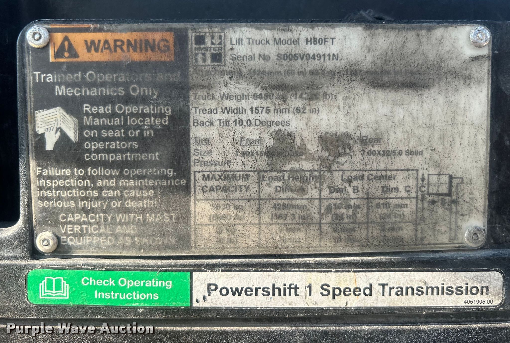 This Hyster 80 forklift will sell to the highest bidder regardless of price.