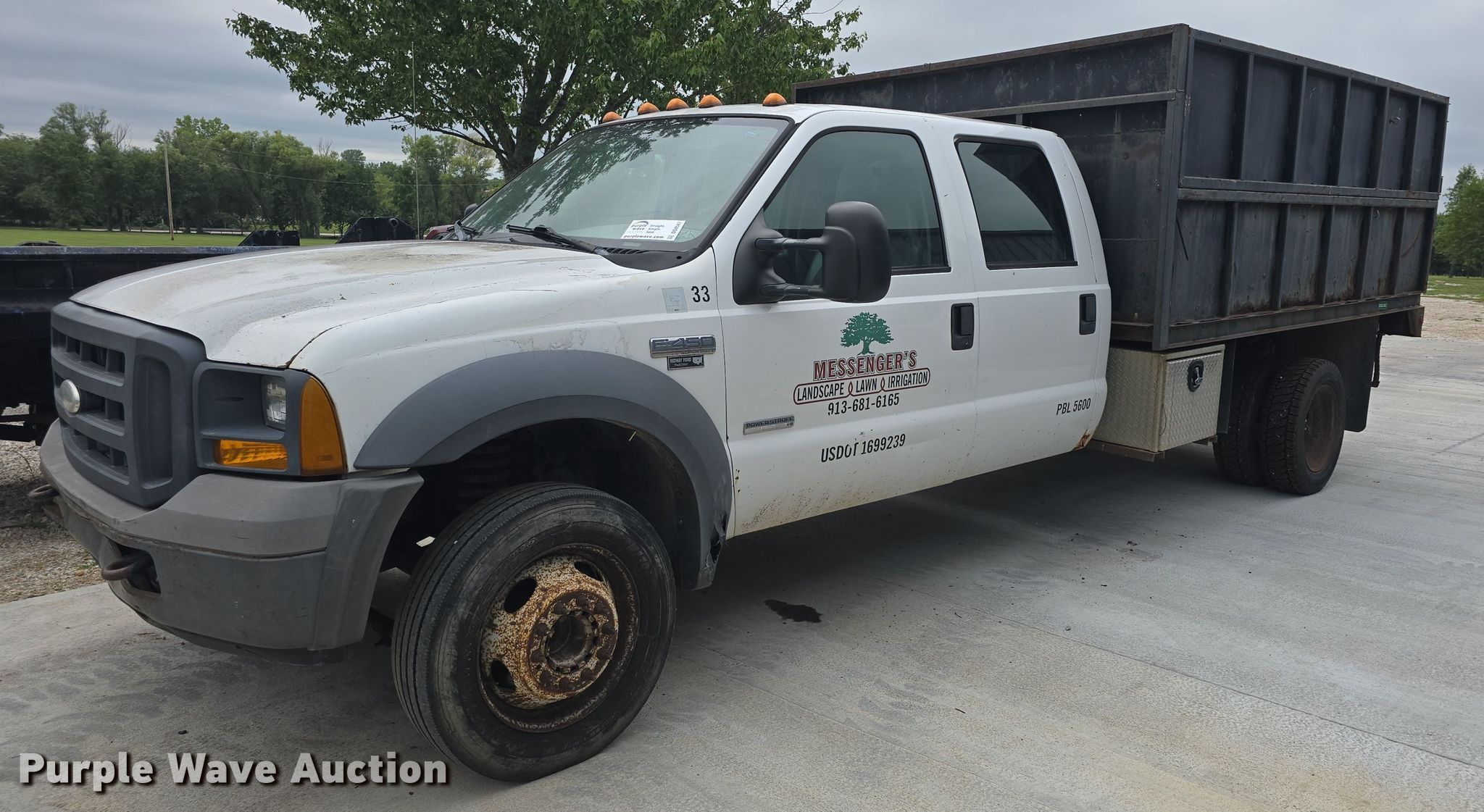 Purple Wave is selling a used Construction Dump Truck in Kansas. This item is a 2005 Ford F450 Super Duty XL dump truck with the following: Miles: 195,616 on odometer, VIN: 1FDXW46P75EB49388, Unit #: 33