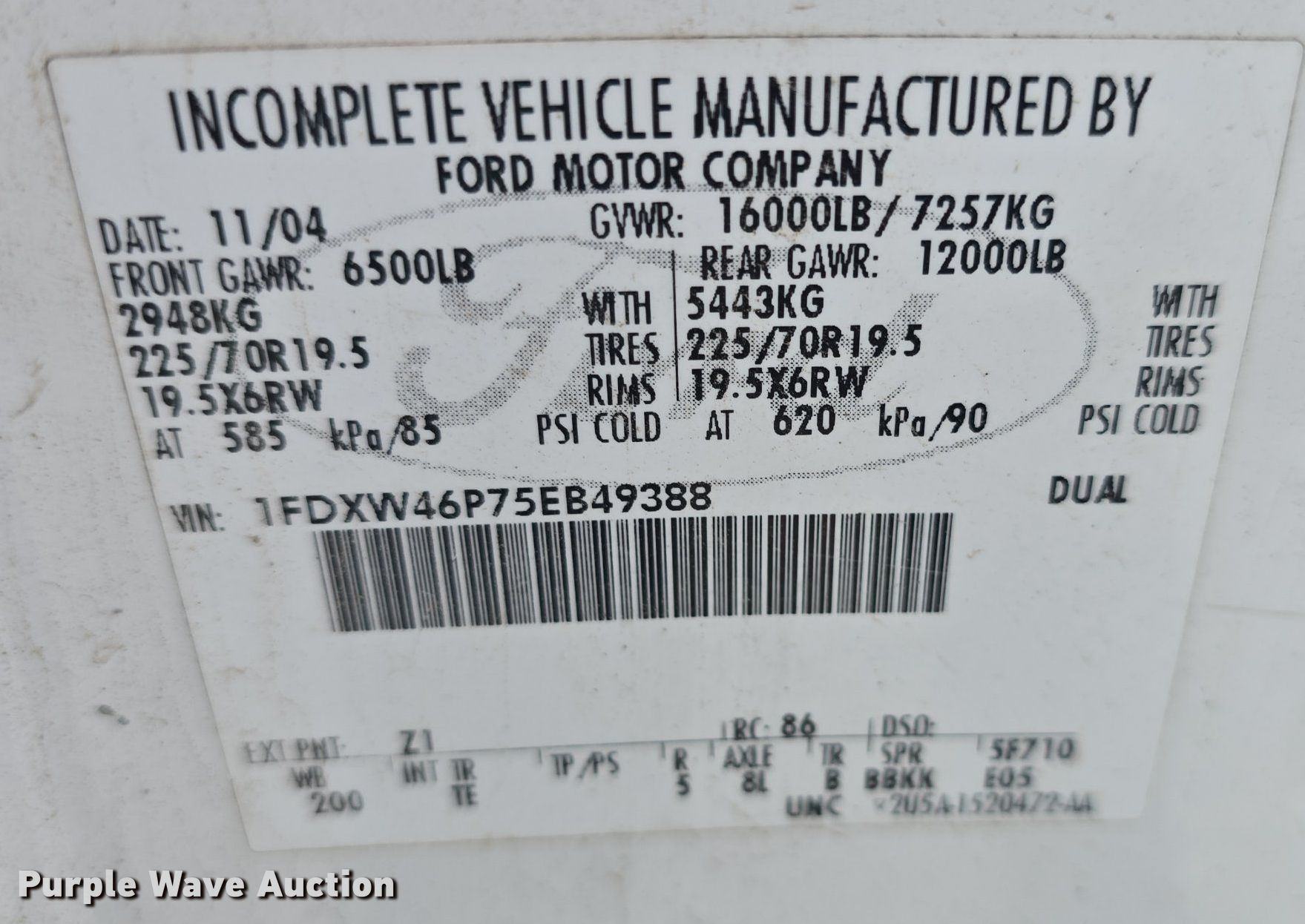 • VIN: 1FDXW46P75EB49388