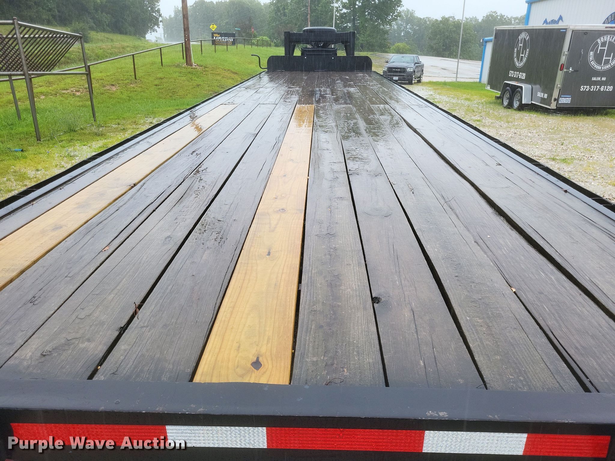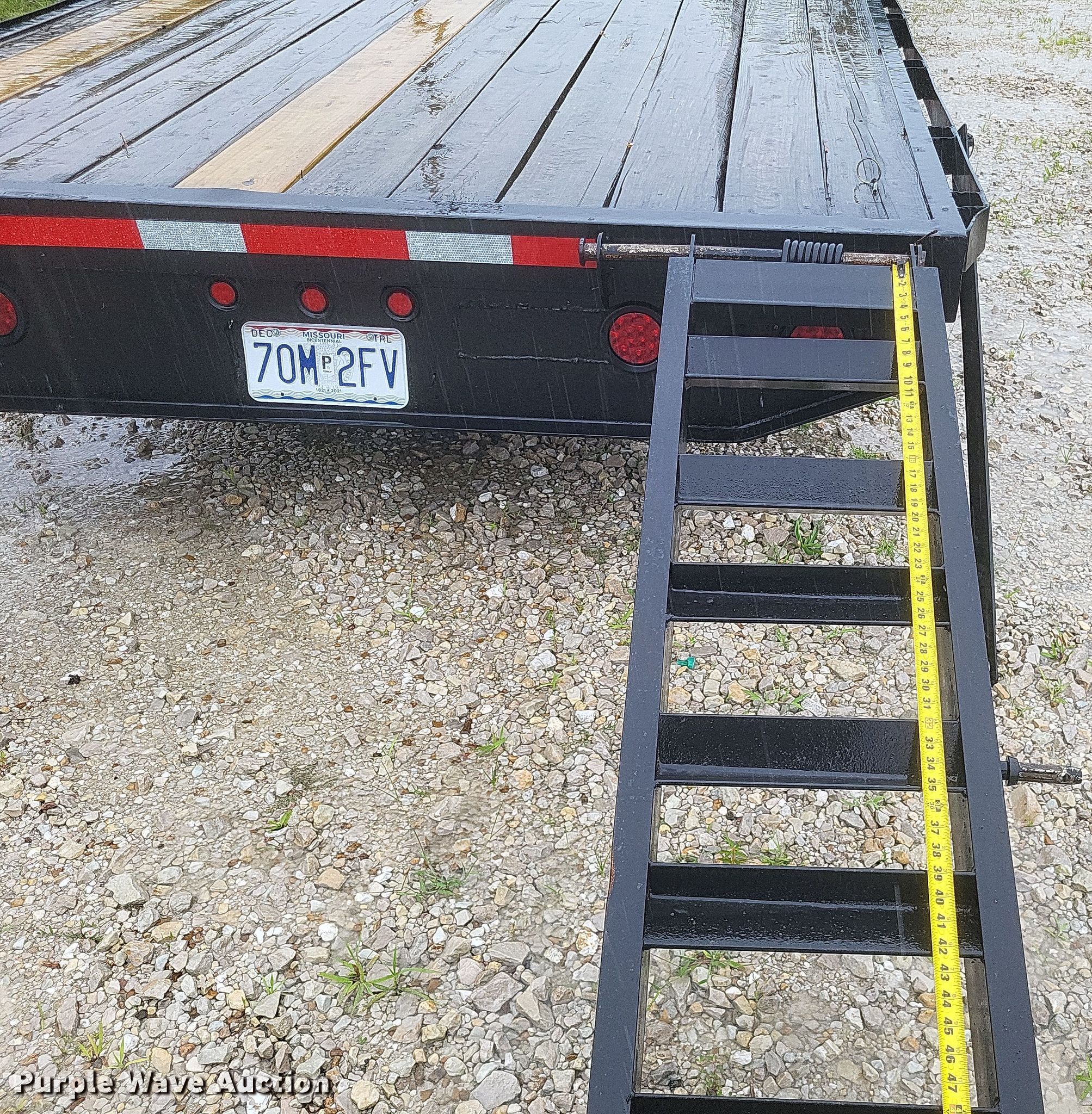 2024 Shop built equipment trailer. VIN: DRXMVB000375349M0. Dimensions Overall: 42' 11" L x 8' W, Deck: 34' L x 8' W, Deck height: 2' 11", Ramps: Manual Length: 6'. Features Deck type: Wood. Chassis Hitch: Gooseneck, Landing gear: Dual, Suspension: Spring, Brakes: Electric, Axles: Tandem. Tires Steel wheels, Size: 235/80R16. Missouri title. Salem, MO 65560