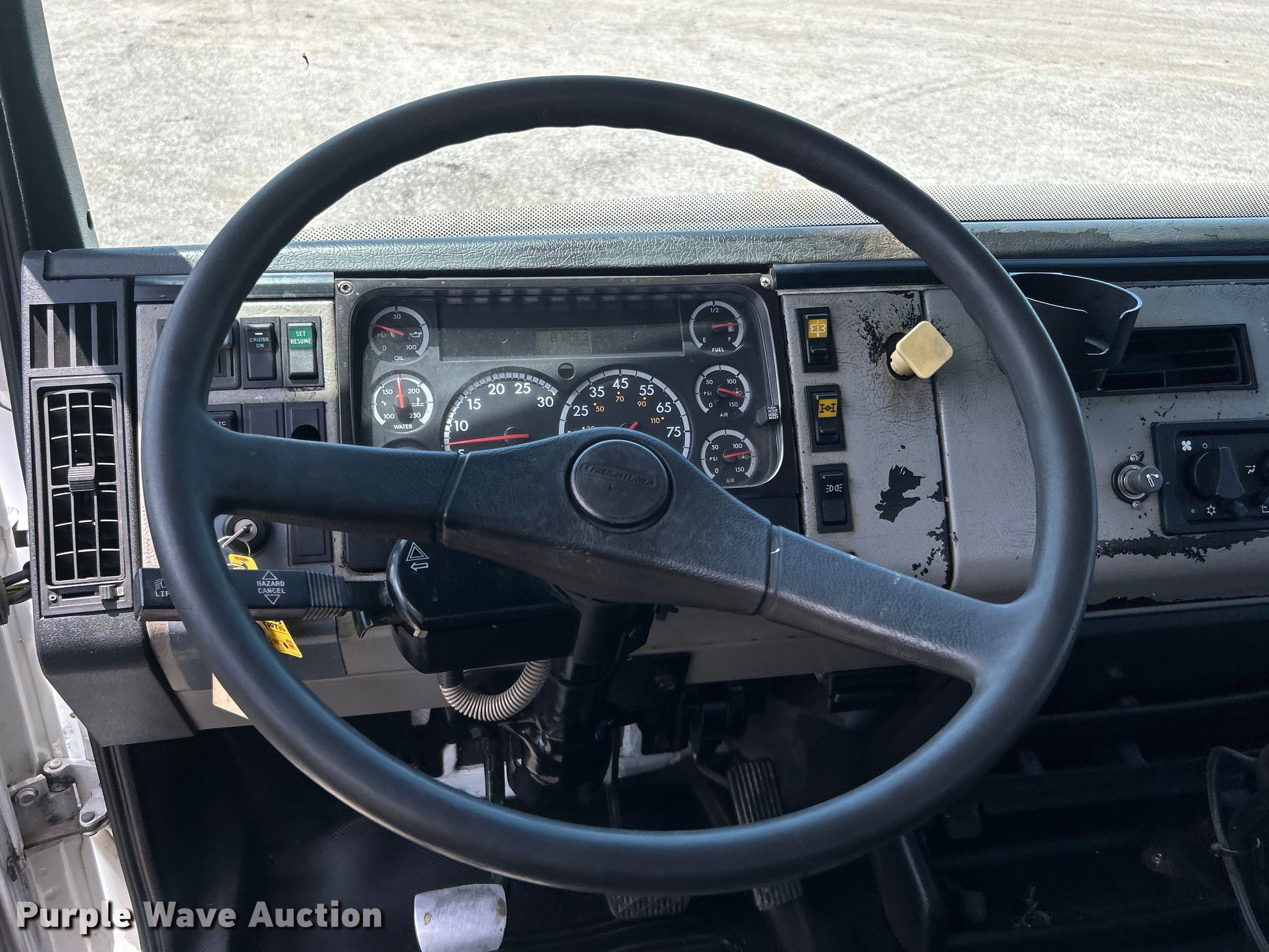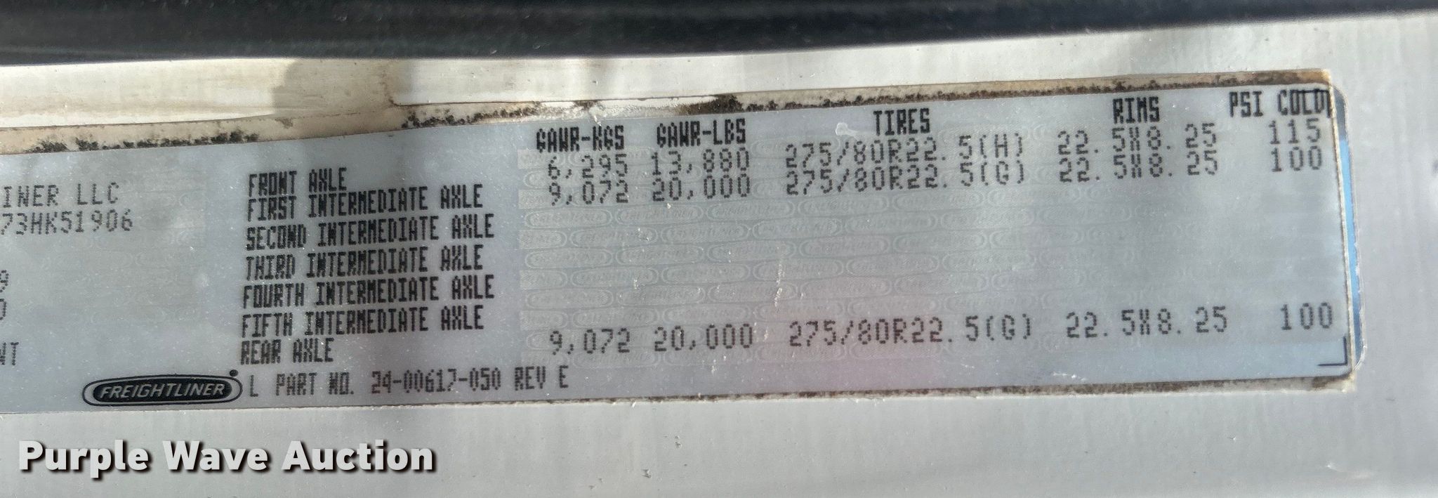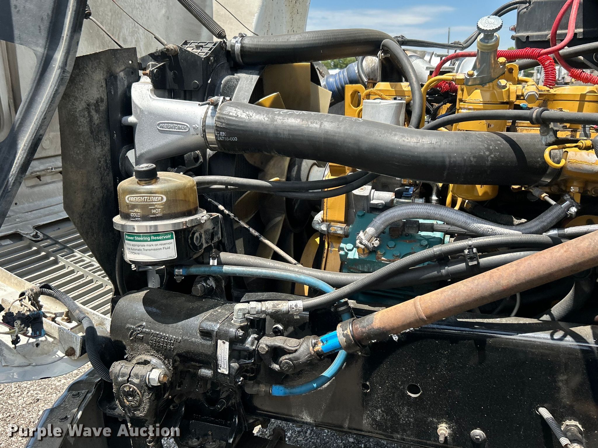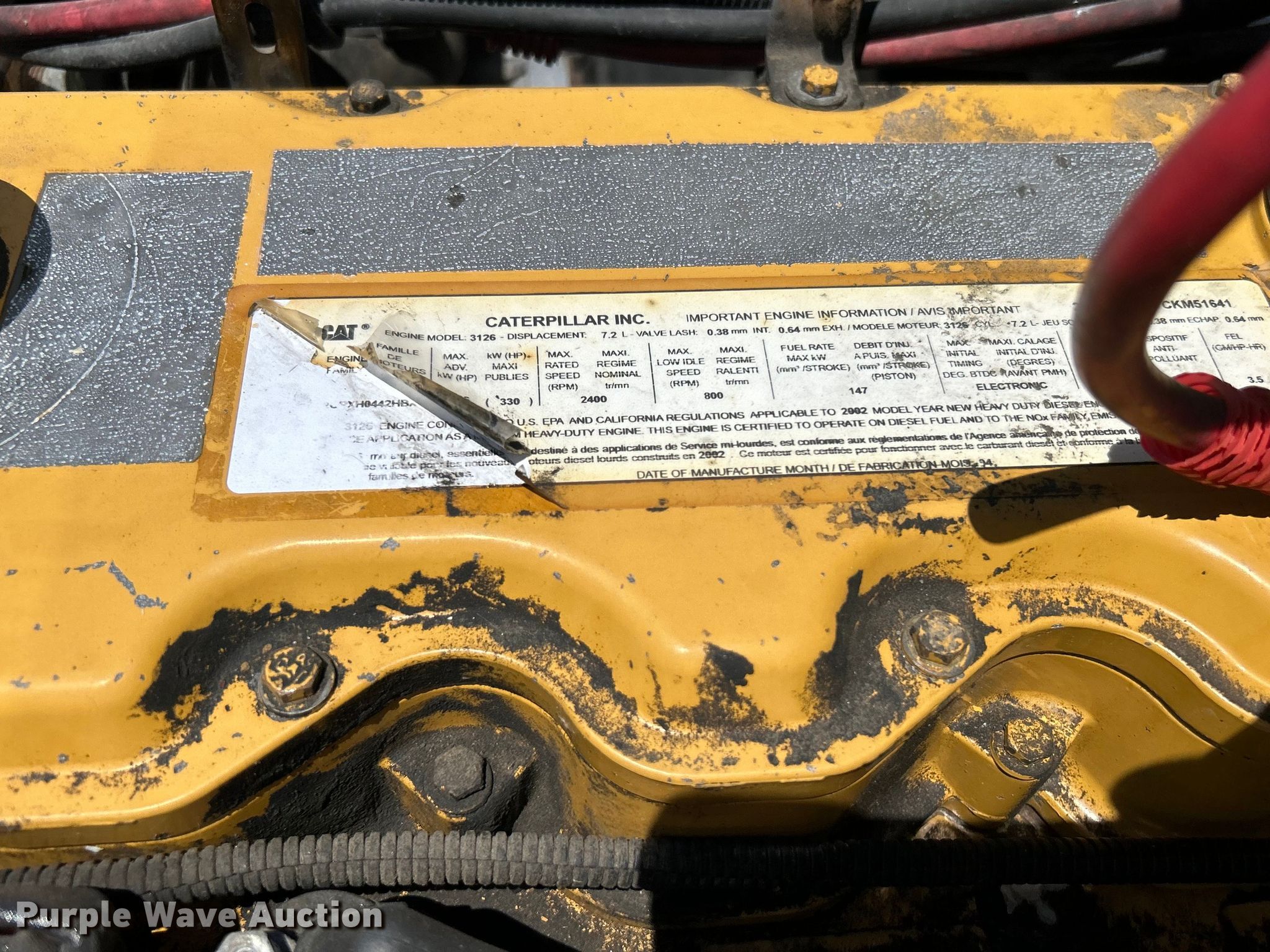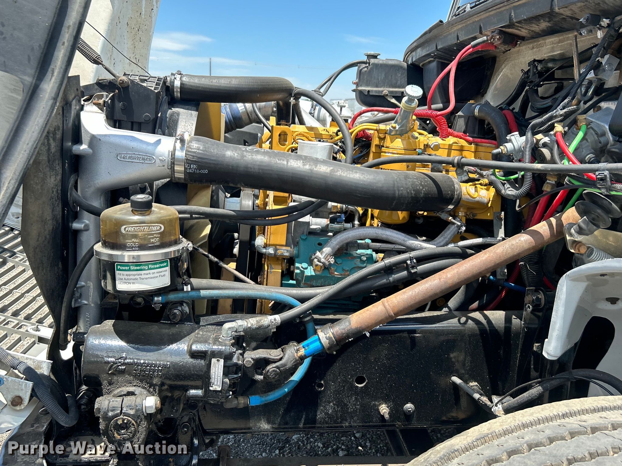 2003 Freightliner Business Class M2 rollback truck. Miles: 436,566 on odometer, Hours: 8,729 on meter, VIN: 1FVHBXAK73HK51906. Engine Caterpillar 3126, Serial: CKM51641, Displacement: 7.2L, Cylinders: 6, Fuel type: Diesel. Transmission Eaton Fuller, Manual, Speed: 9. Chassis Axles: Single, Suspension: Air, Brakes: Air, PTO, GVWR: 53,880 lbs. Interior AC, Heat, Heated mirrors, Power windows, Cruise control. Features Rollback bed Ledwell, 28' L x 102" W, Winch. Tires Front: 275/80R22.5, Rear: 295/75R22.5. Notes Windshield chipped or cracked. Oklahoma title. Title distribution may be delayed up to 30 days from verification of funds. 15107 North 137th East Avenue. Collinsville, OK 74021