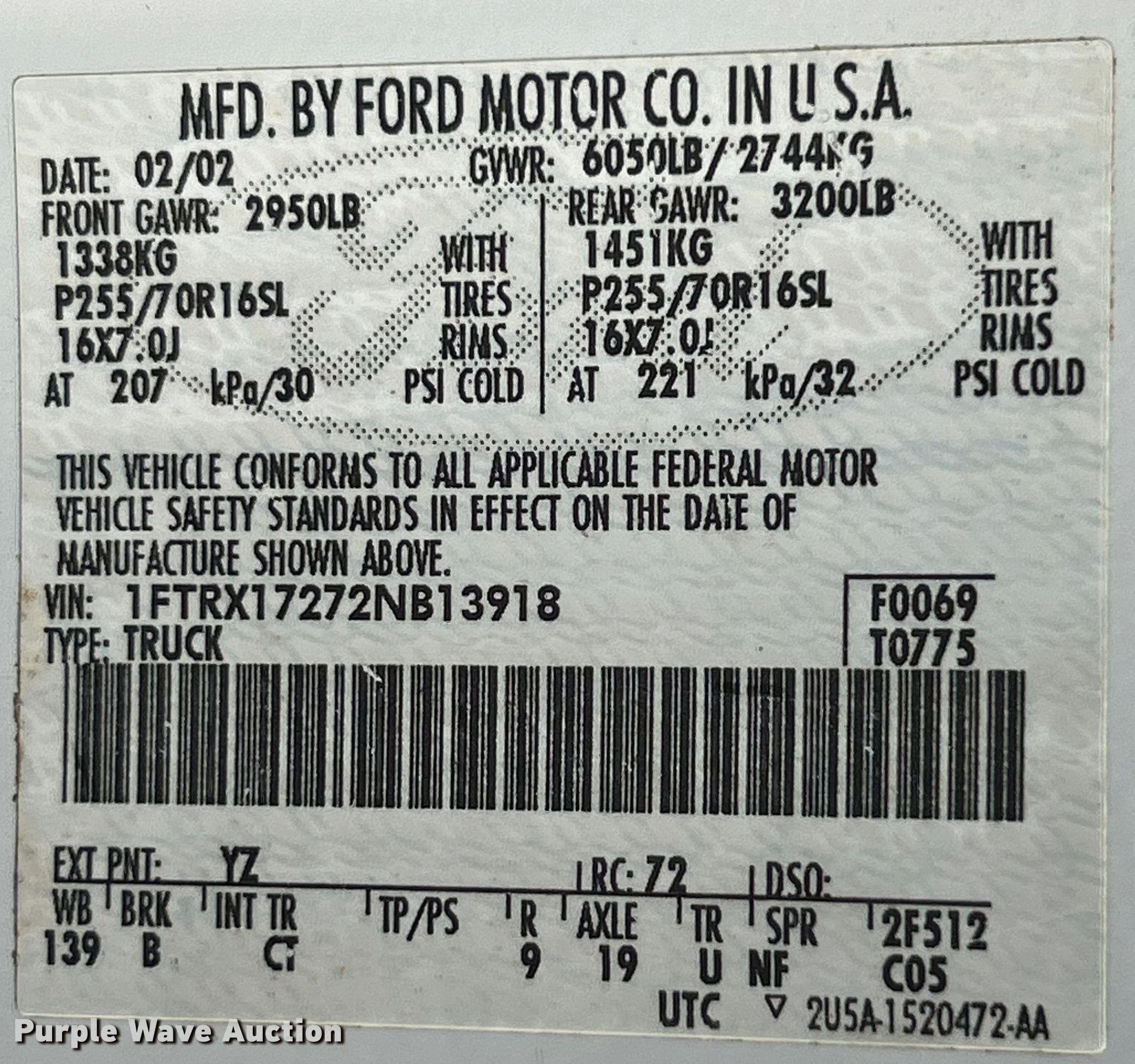 Purple Wave is selling a used 1/2 Ton Pickup or Van in Missouri. This item is a 2002 Ford F150 XL SuperCab pickup truck with the following: Miles: 185,006 on odometer, VIN: 1FTRX17272NB13918