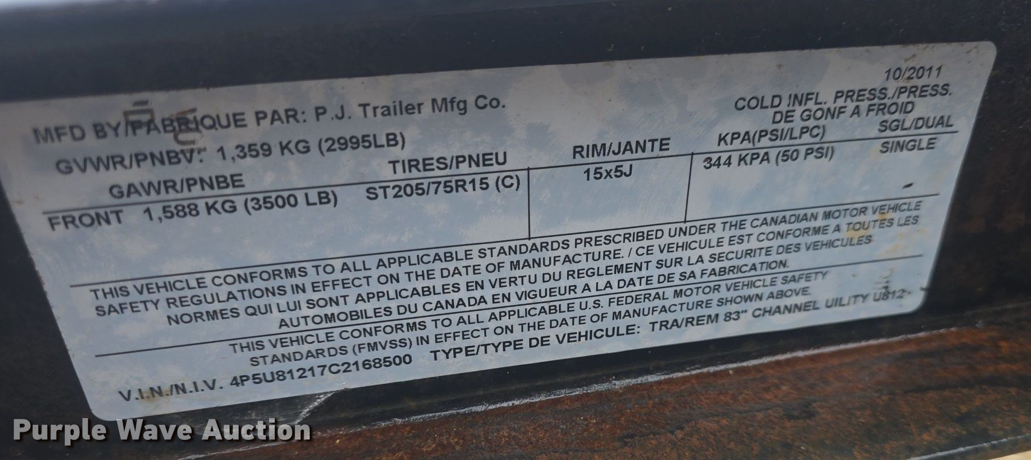 Purple Wave is selling a used Car or Utility Trailer in Kansas. This item is a 2012 PJ utility trailer with the following: VIN: 4P5U81217C2168500, Unit #: 1375