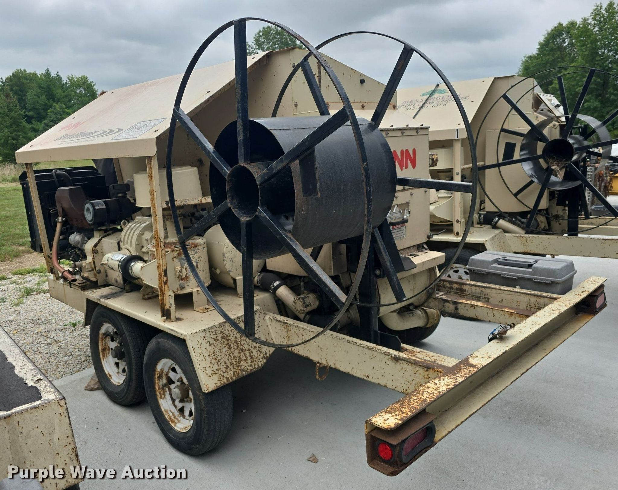 2011 Finn BB30218 bark blower. Hours: 897 on meter, VIN: 1F9AS1425BF135185, Serial: MM1185, Unit #: 2. Engine Cylinders: 4, Fuel type: Diesel. Features Controls: Ground, Remote control, Hopper, Conveyor Width: 22", Feed roller Width: 22", Rotary airlock, Reel. Trailer Hitch: 2 5/16" ball, Landing gear: Single, Axles: Tandem, Tire size: 185/80R13, Brand: Power King. Notes Battery missing, Unknown operating condition. This is worksite support equipment and will not come with a title. Transfer of ownership documentation will be a bill of sale. Bucyrus, KS 66013