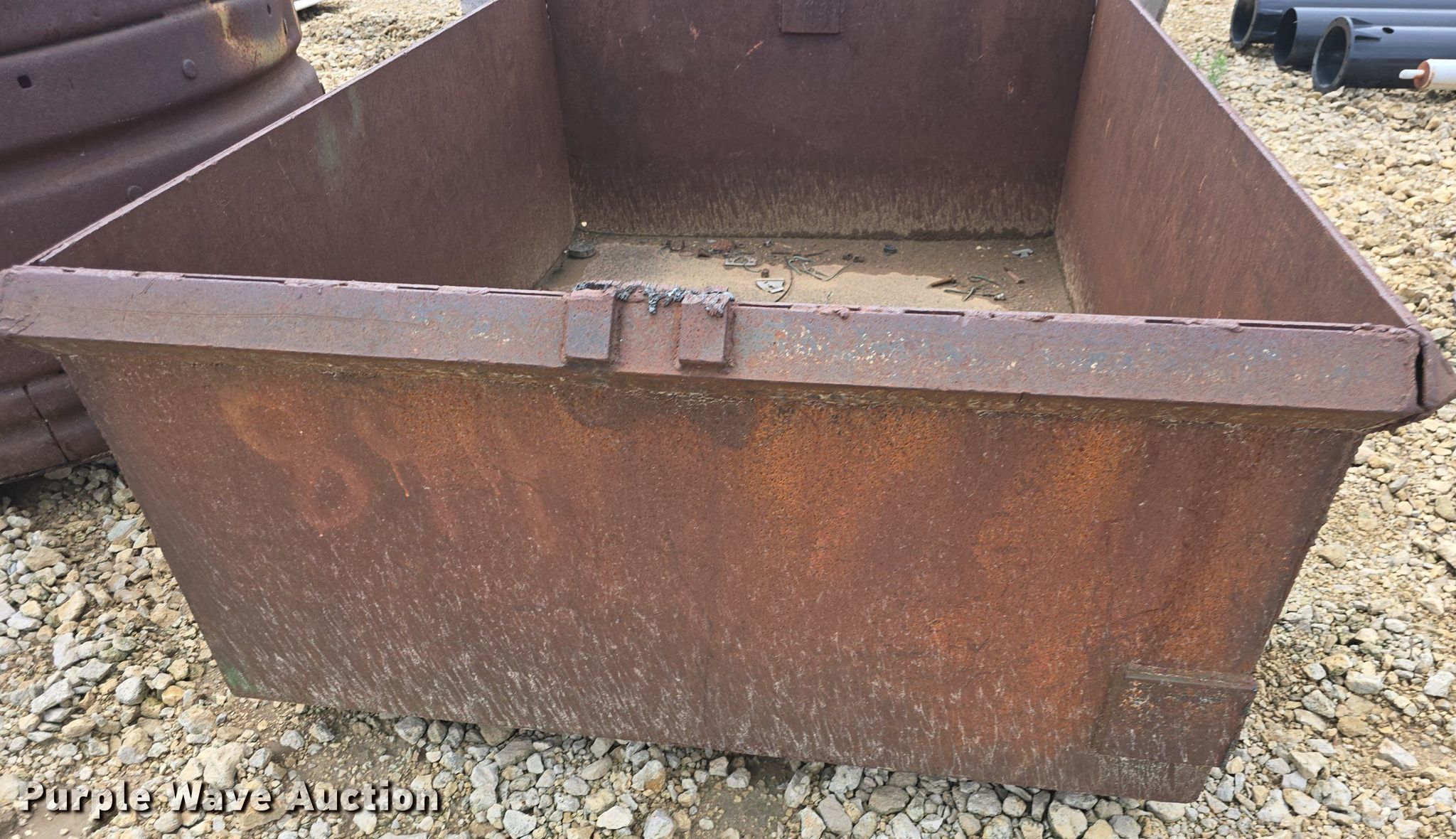Purple Wave is selling a used Other Industrial or Business in Kansas. This item is a Containers with the following: Stand, 74" x 30" x 4', Containers, 57" x 5' x 47", Side damaged, 34" x 30" x 20", 55" diameter x 4', 72" x 52" x 26"