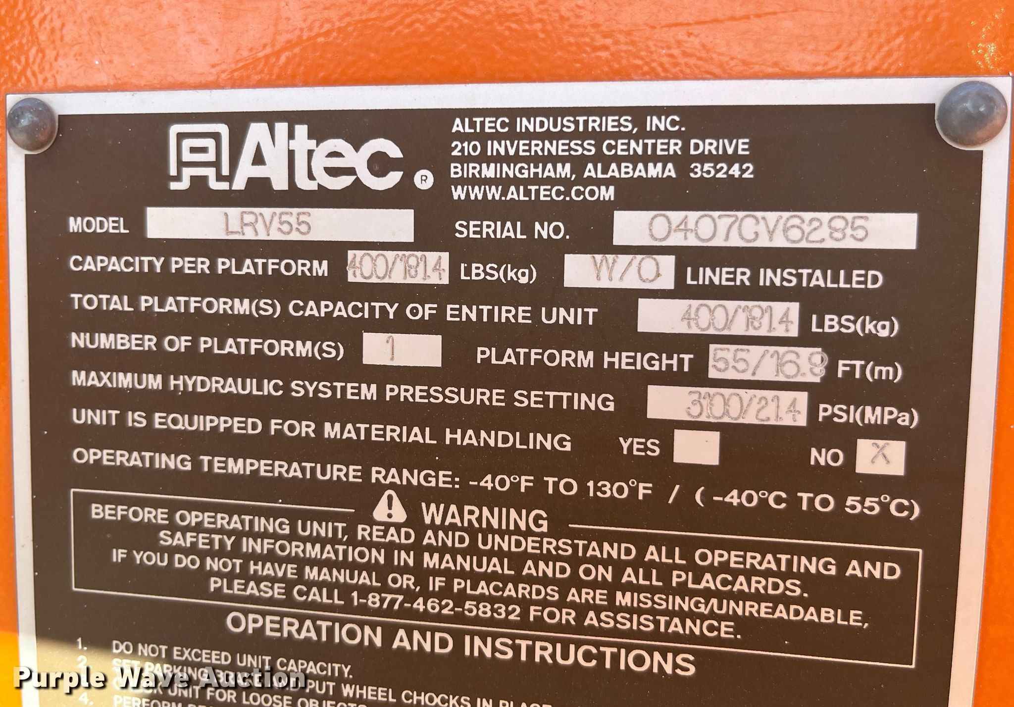 - Maximum lift height: 55'