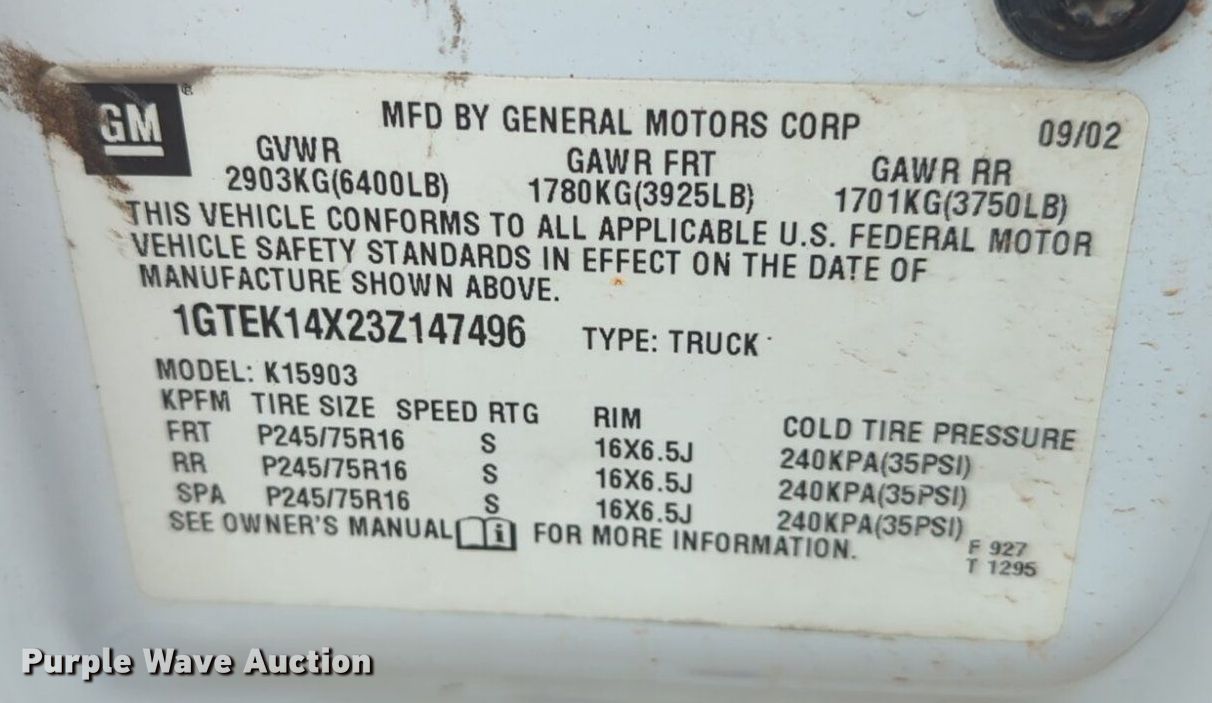 Purple Wave is selling a used 1/2 Ton Pickup or Van in Oklahoma. This item is a 2003 GMC Sierra 1500 pickup truck with the following: Miles: 189,500 on odometer, VIN: 1GTEK14X23Z147496
