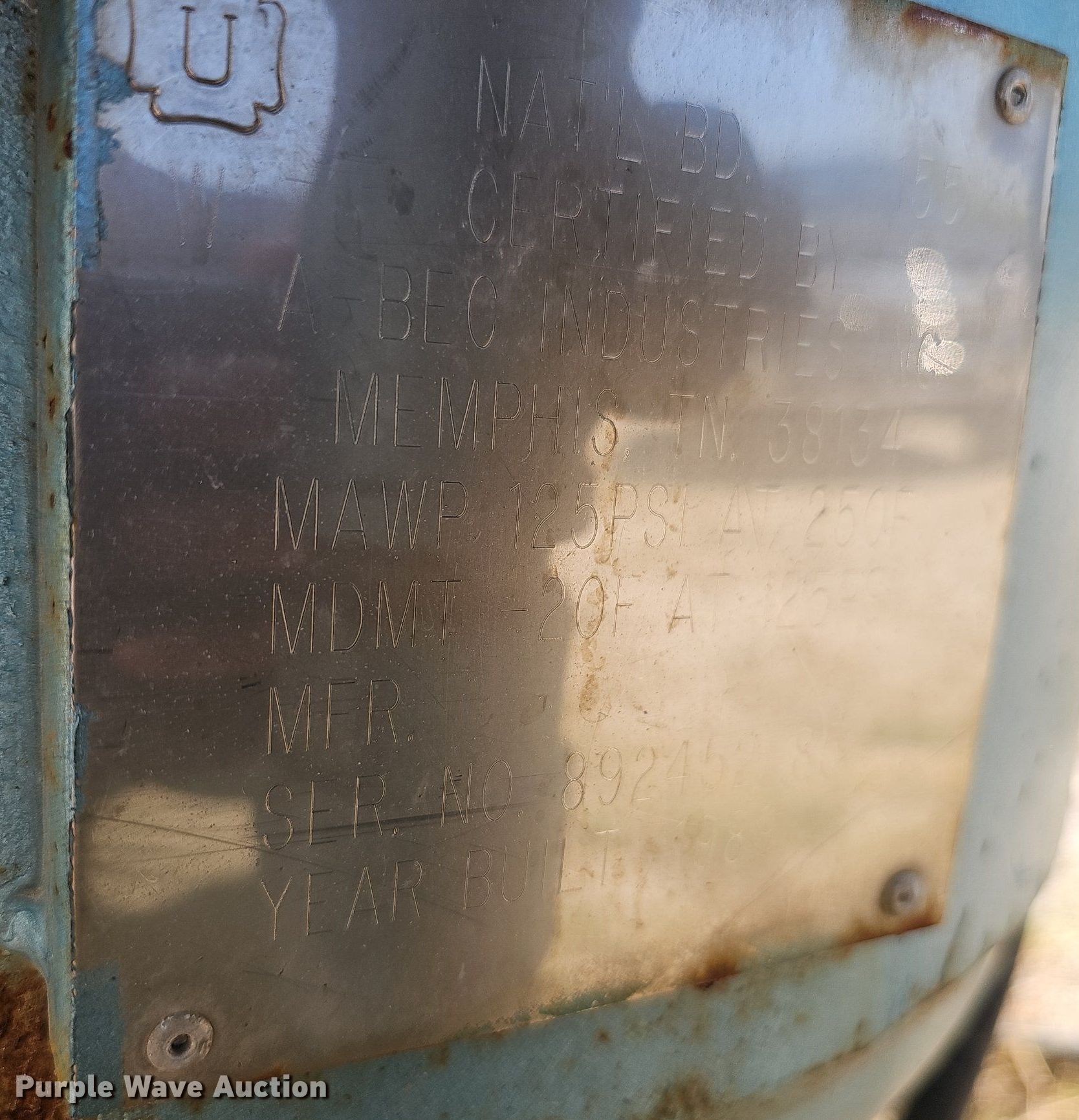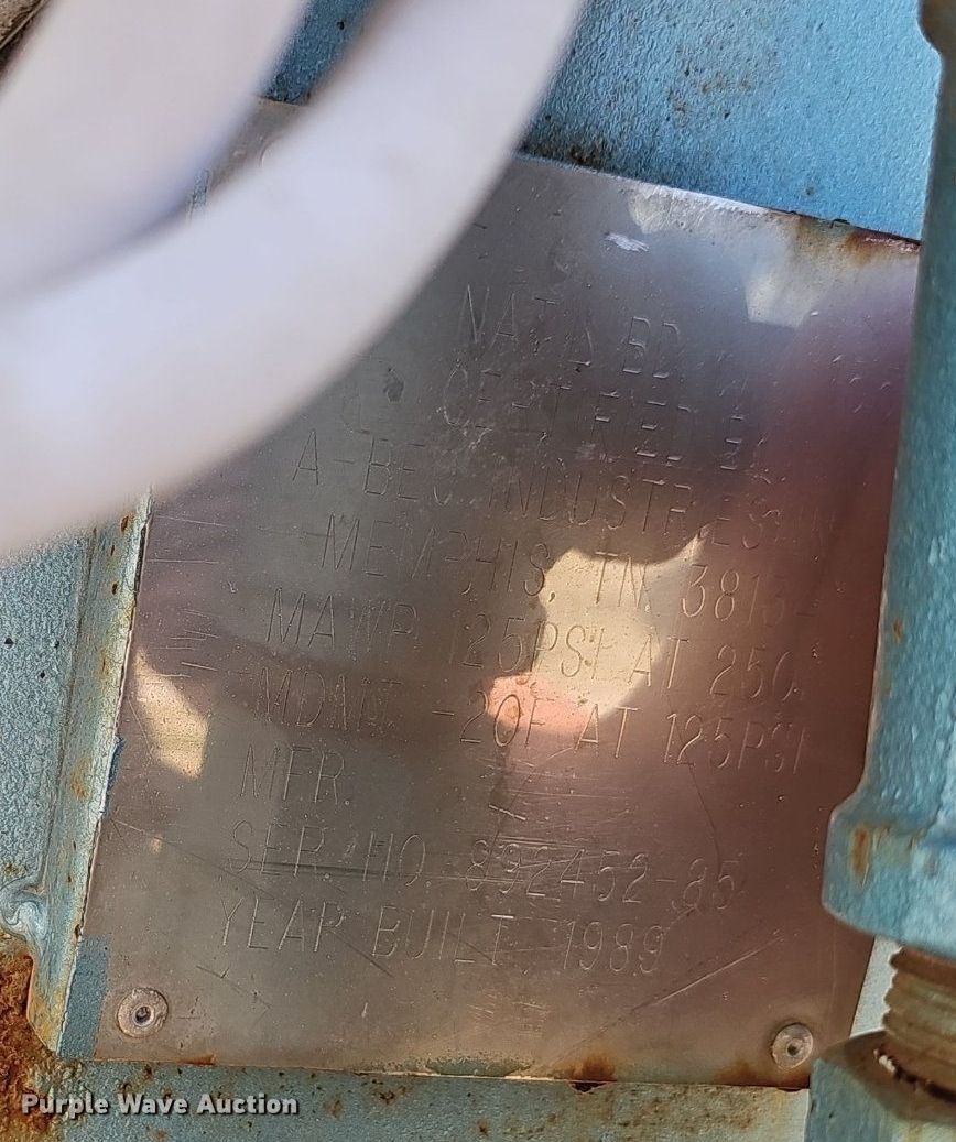 1989 A-Bec National BD 155 sand blaster. Serial: 892452-85. Features Requires 1.5" hose, PSI: 125. Tires Size: 16x400. Notes Unknown operating condition. Coonrod Construction. Nevada, MO 64772