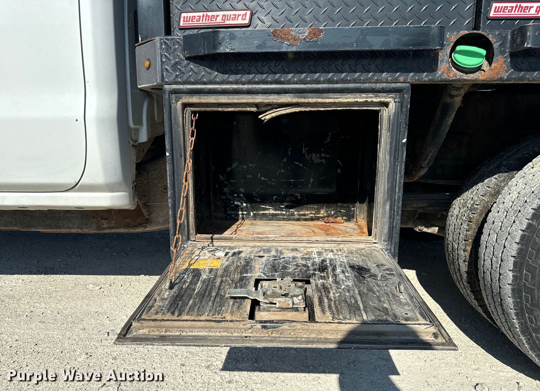 2018 Chevrolet 3500HD Crew Cab flatbed pickup truck. VIN: 1GB4KYCY2JF210291, Unit #: 0291. Engine Displacement: 6.6L V8 OHV, Cylinders: 8, Fuel type: Diesel. Transmission Automatic, Four wheel drive. Interior AC, Heat, Heated mirrors, Power windows, Power locks, Cruise control. Features Flatbed Knapheide, 9' 6" L, Hitch: Gooseneck, Weather Guard auxiliary fuel tank. Tires Size: 235/80R17. Notes Dash warning indicator: Check engine, Possible engine issues, diesel fuel in engine oil. Missouri title. HTH Companies Inc.. Lafayette, IN 47905