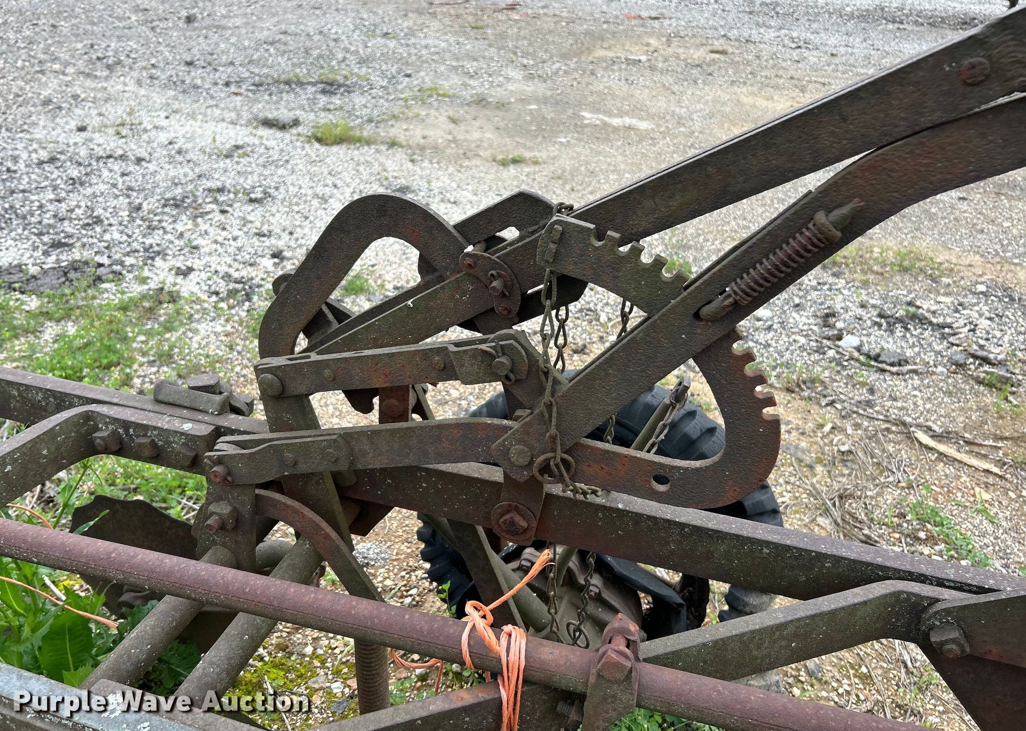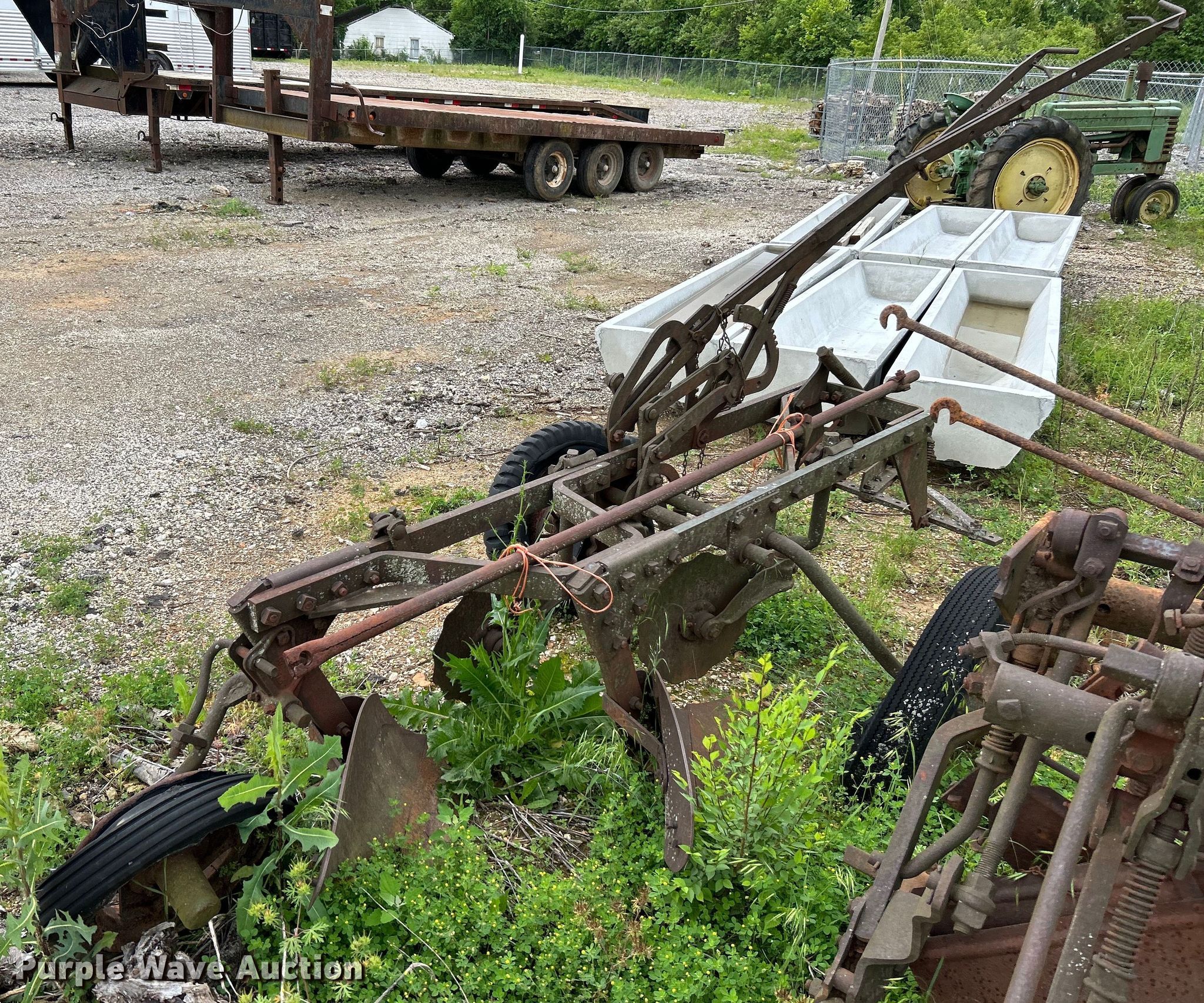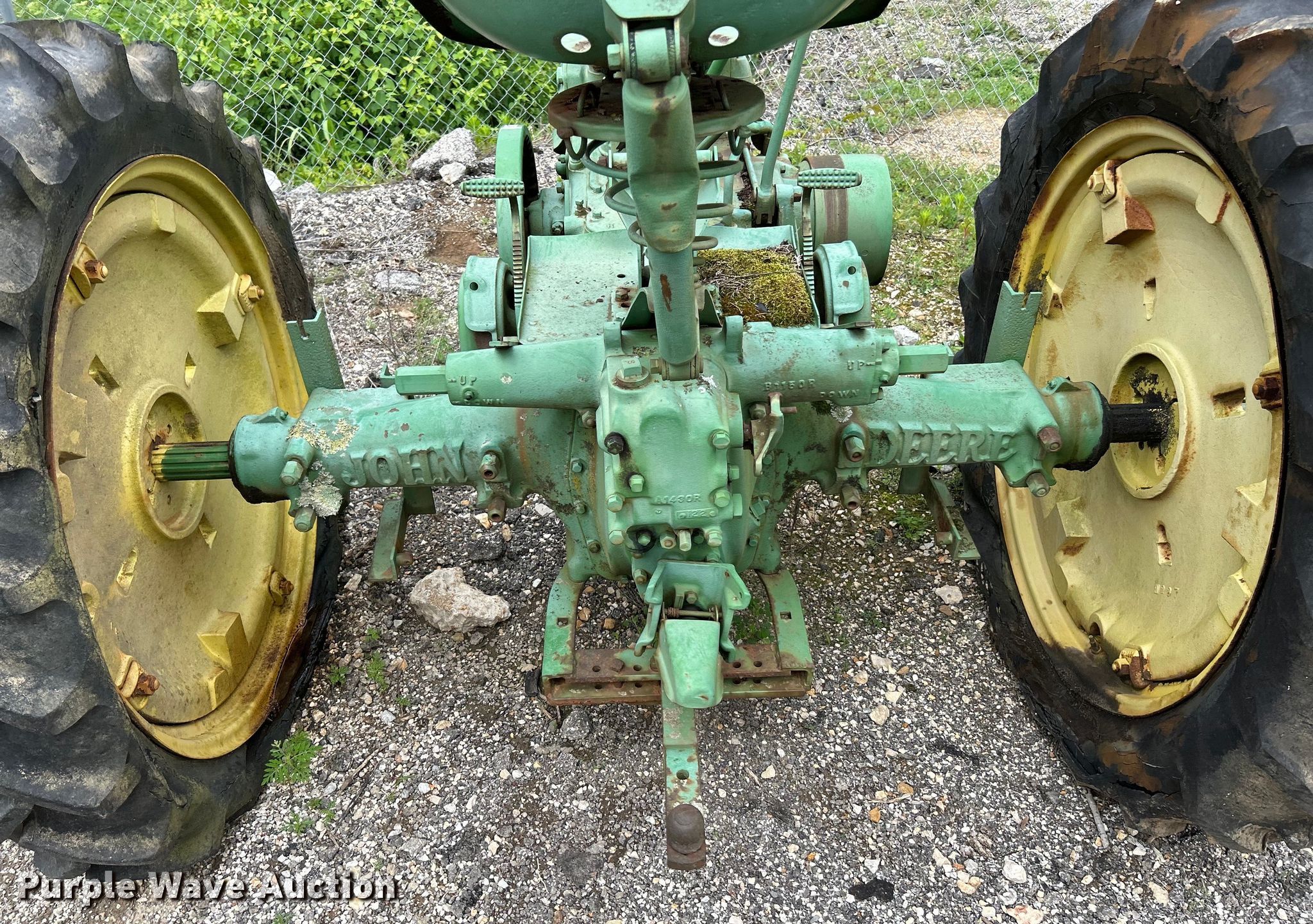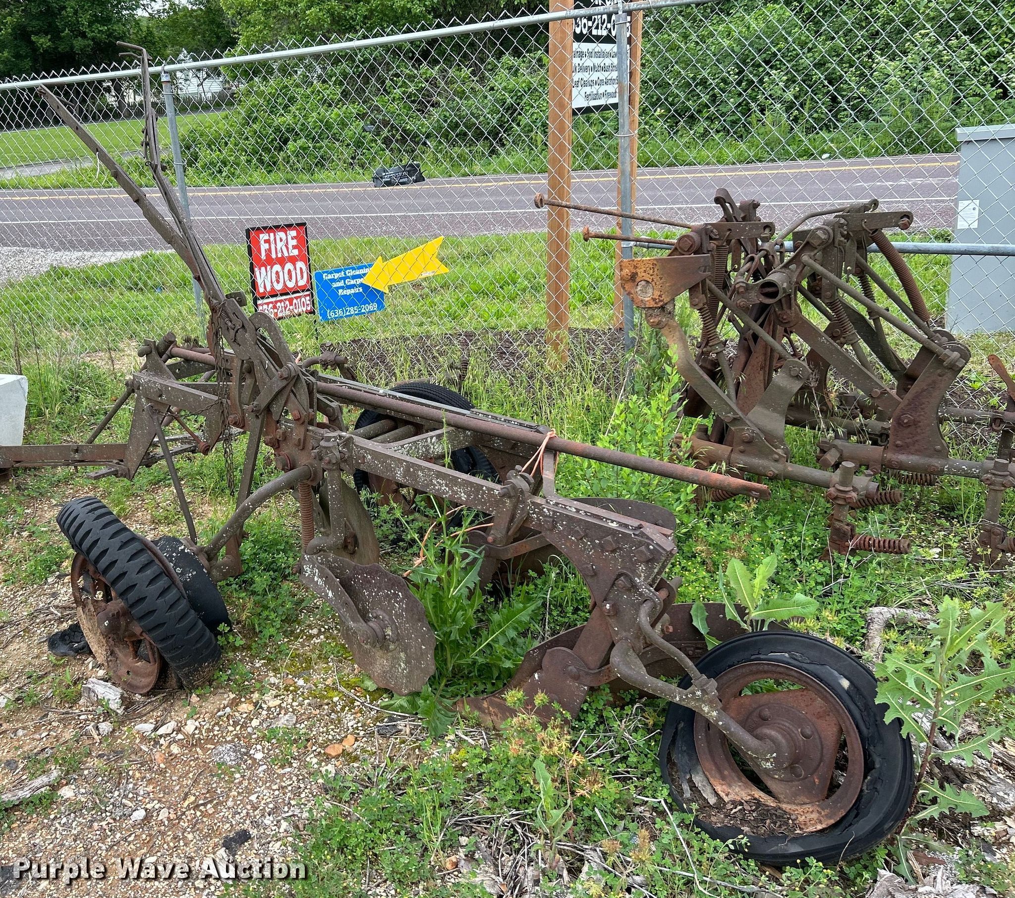 1939 John Deere B tractor. Serial: B70877. Engine Cylinders: 2, Fuel type: Gas. Transmission Manual. Features PTO: 540, Two bottom plow, Field cultivator. Tires Front: 5.00-15 SL, Rear: 9.5-36. Notes Non-operational plow, Non-operational cultivator, Non-operational unit. House Springs, MO 63051