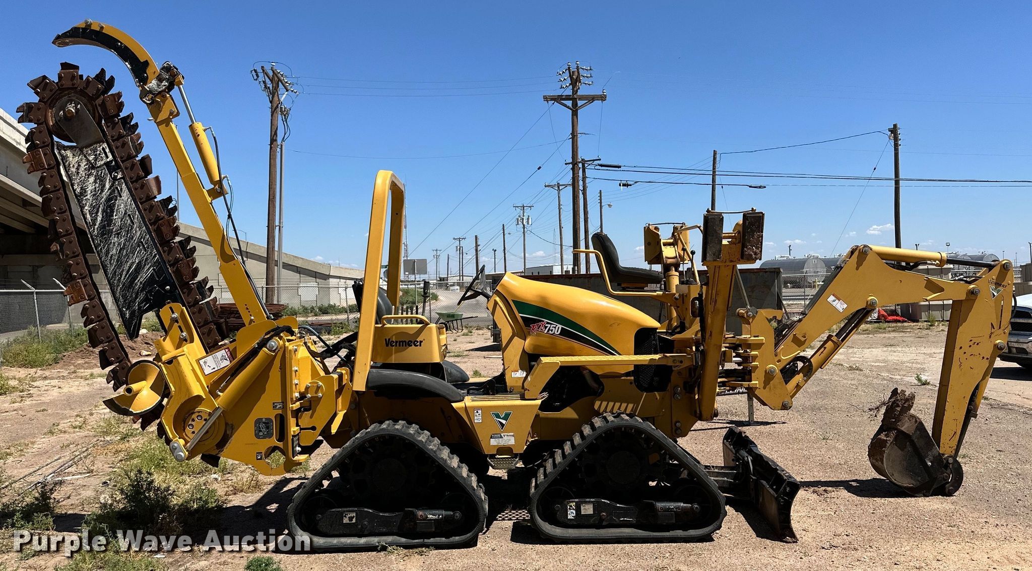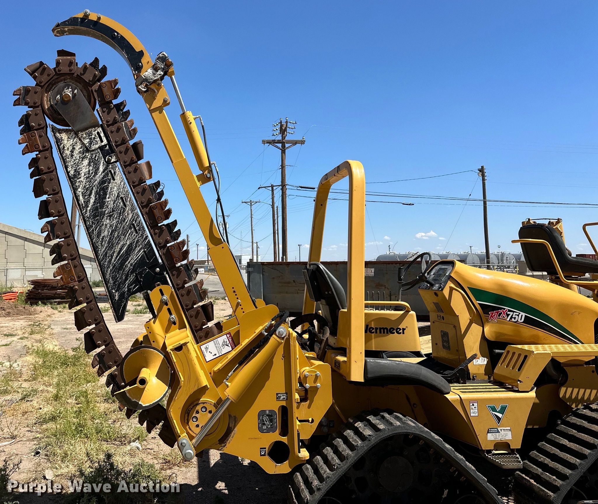 Purple Wave is selling a used Trencher or Rock Saw in Texas. This item is a 2009 Vermeer RTX750 trencher with the following: Hours: 1,482 on meter, Serial: 1VR9112M691000134