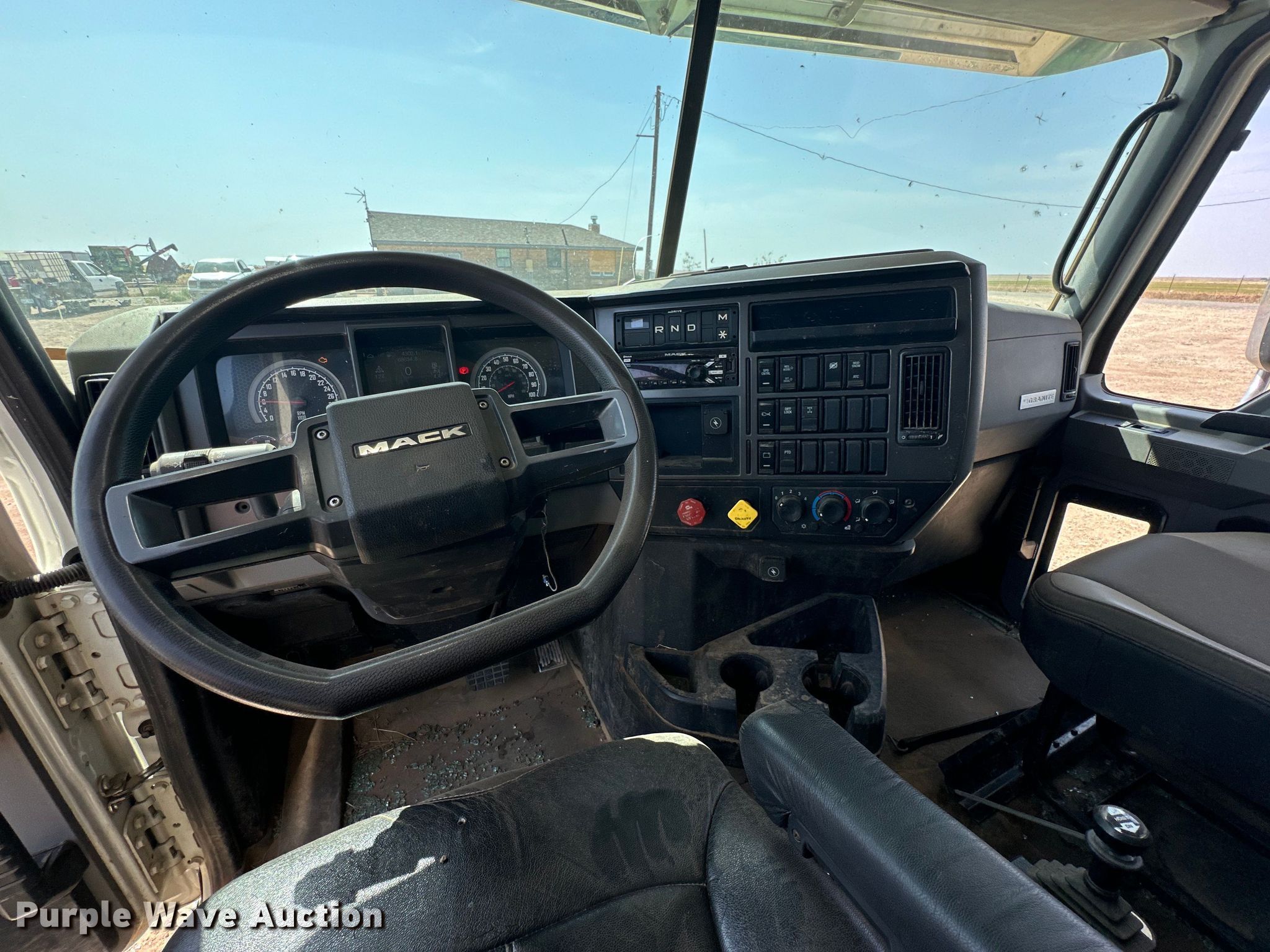 2020 Mack Granite dump truck. Miles: 68,635 on odometer, Hours: 4,302 on meter, VIN: 1M2GR4GC2LM014390, Insurance salvage unit claim #: 4-807679. Engine Mack MP8, Displacement: 12.7L, Cylinders: 6, Fuel type: Diesel. Transmission Mack, Automatic. Chassis Axles: Tandem, Differential lock: Inter-axle, Suspension: Camelback, Brakes: Air, PTO. Interior AC, Heat, Power windows, Cruise control. Features Dump bed 16' L x 96" W, Side height: 53", Bed type: Steel, Bed vibrator, Roll tarp, Ram: Single, End gate: Air operated. Tires Size: 11R24.5. Notes Tornado Damage, Rear window broken, Dash warning indicator: Check engine, Windshield chipped or cracked. Oklahoma title. Mileage has not been verified. Odometer discrepancy will be marked on the title. Oklahoma Farm Bureau. Duke, OK 73532
