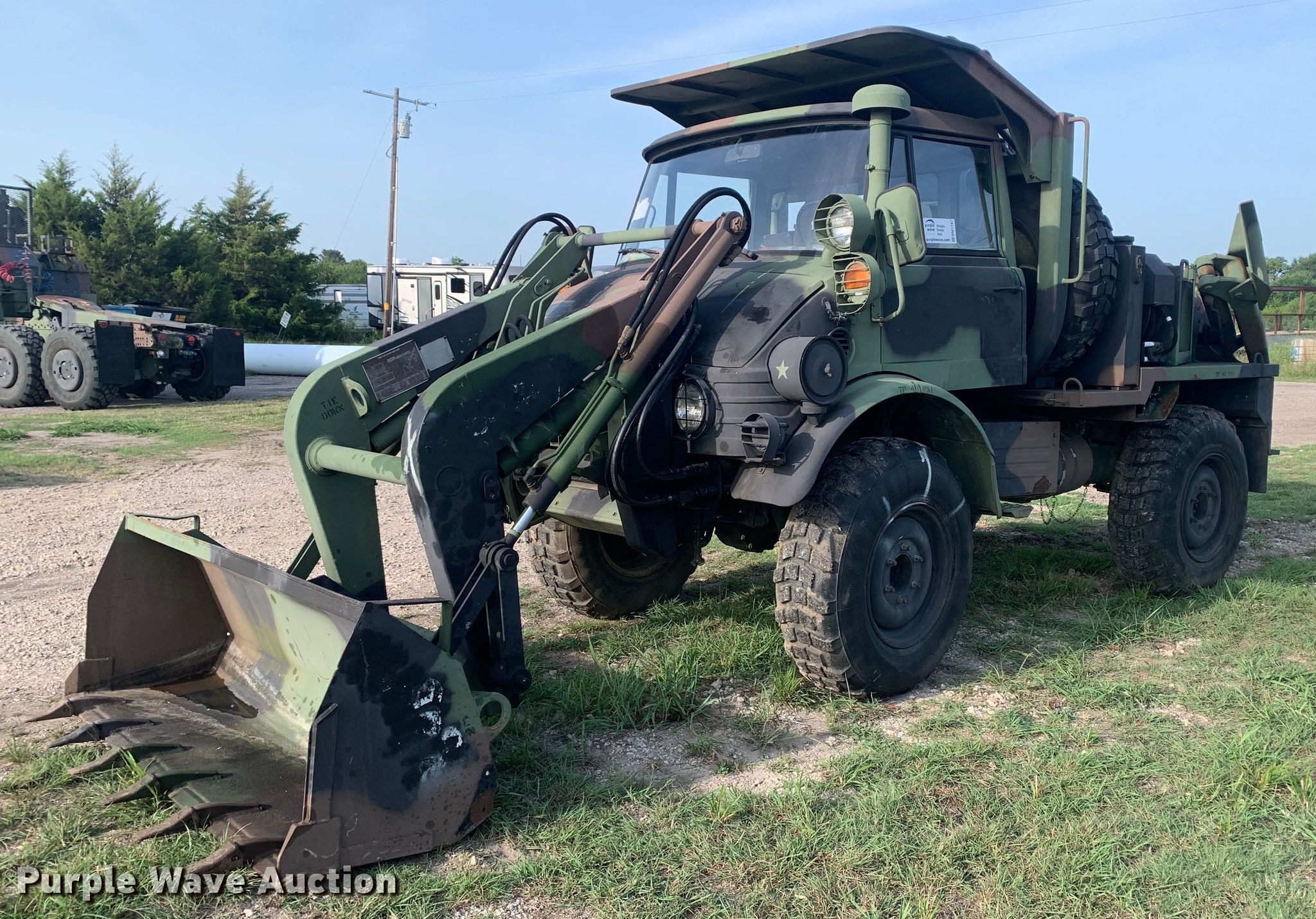 1988 Freightliner Unimog FLU419 emplacement excavator. Serial: 1FG99999XJM450909. Engine Mercedes-Benz, Cylinders: 6, Fuel type: Diesel. Transmission Manual, 8F - 4R. Chassis Four wheel drive. Operators station Enclosed cab, Heat, Backhoe controls: Three stick. Features Loader Bucket Width: 80", Cutting edge: Bolt-on, Teeth: 6, Backhoe Auxiliary hydraulics, Width: 24", Cutting edge: Bolt-on, Teeth: 5, Outriggers: 2. Tires Size: 12.5R20 XL. Notes Possible rodent damage, Non-operational unit. Texas title. Seller is a Texas licensed motor vehicle dealer. The buyer may be required to pay sales tax and/or registration fees to the dealer prior to taking possession. Title will be assigned and distributed by the dealer. Please contact the seller for distribution questions. War Fox Equipment, LLC. Euless, TX 76040