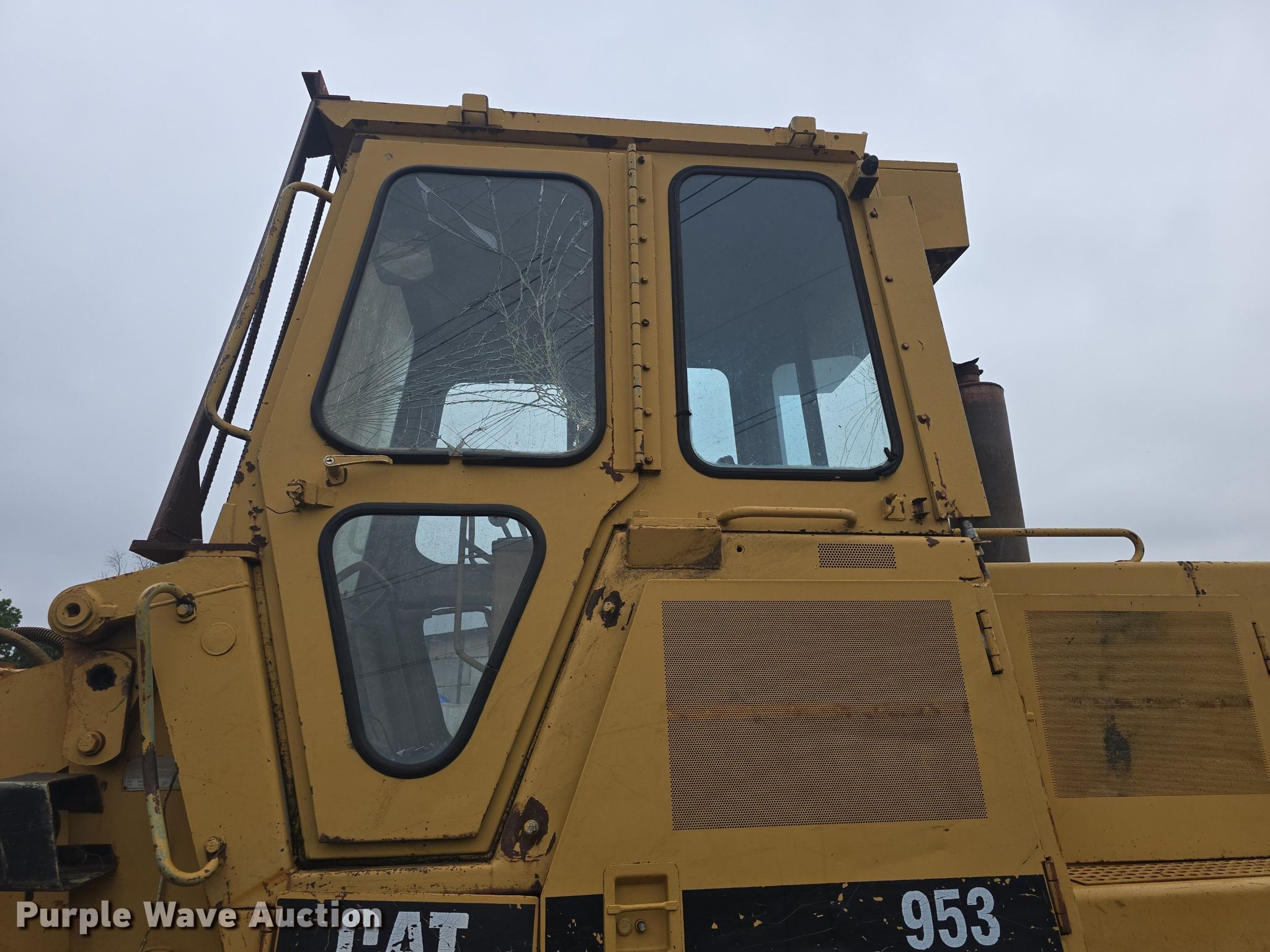 1990 Caterpillar 953 loader. Hours: 8,420 on meter, Serial: 44Z00724. Engine Caterpillar 3204, Cylinders: 4, Fuel type: Diesel. Transmission Hydrostatic. Operators station Enclosed cab, AC, Heat, Steering: Joystick. Features Bucket Width: 8, Cutting edge: bolt-on, Teeth: 8. Tracks Width: 20", Grouser pads: Double, Bottom rollers: 6, Track guards. Notes Engine issues, possible push rod issues , Unit must be towed or hauled, Possible bearings issues, Glass cracked, Non-operational unit. Stilwell, KS 66085