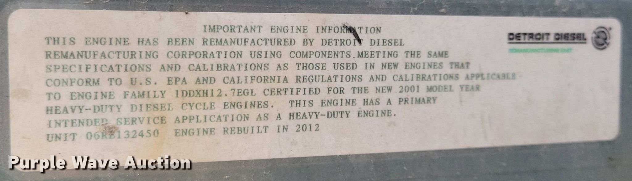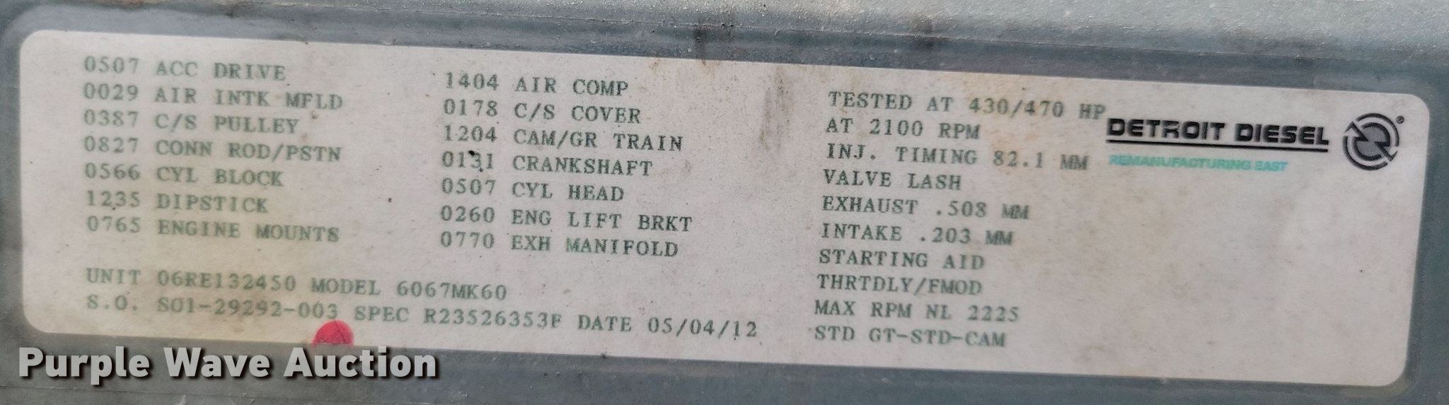 2013 Western Star 4900EX semi truck. Miles: 585,031 on odometer, VIN: 5KKXACCG3DPBU0726. Engine Detroit Diesel 60 Series, Displacement: 12.7L, Cylinders: 6, Fuel type: Diesel, Engine brake. Transmission Eaton Fuller, Manual, Speed: 13. Chassis Axles: Tandem, Differential lock: Inter-axle, Suspension: Air Dump valves, Brakes: Air, PTO, FAWR: 12,000 lbs. Interior AC, Heat, Heated mirrors, Cruise control, Air ride cab. Features Deck plate: Aluminum, Fifth wheel type: Air operated, Sliding, Fuel tank: Dual. Tires Size: 11R24.5. Notes Non-operational PTO, missing lines, Dead battery. Iowa title. Title distribution may be delayed up to 14 days from verification of funds. Croell Redi-Mix. New Hampton, IA 50659
