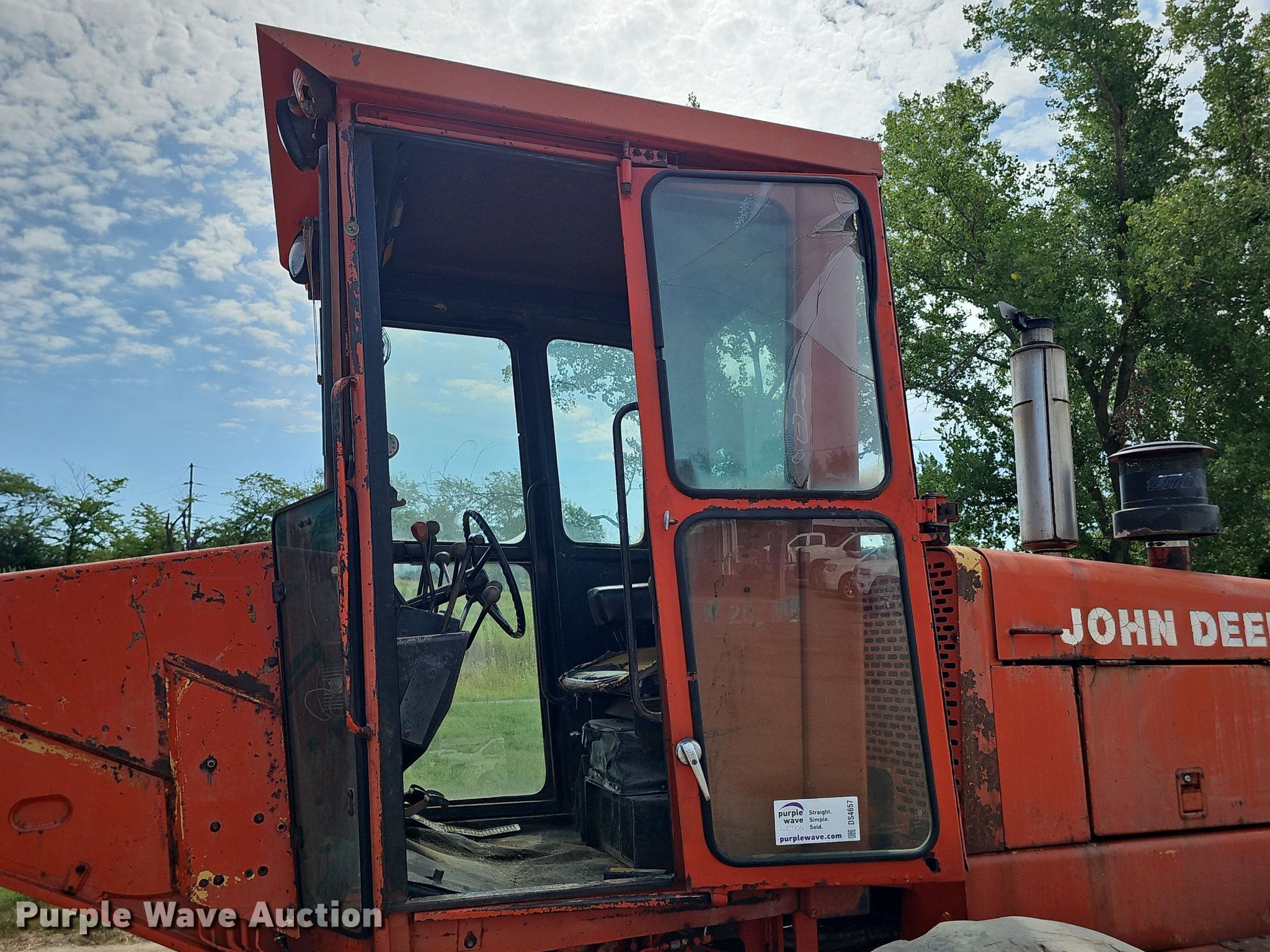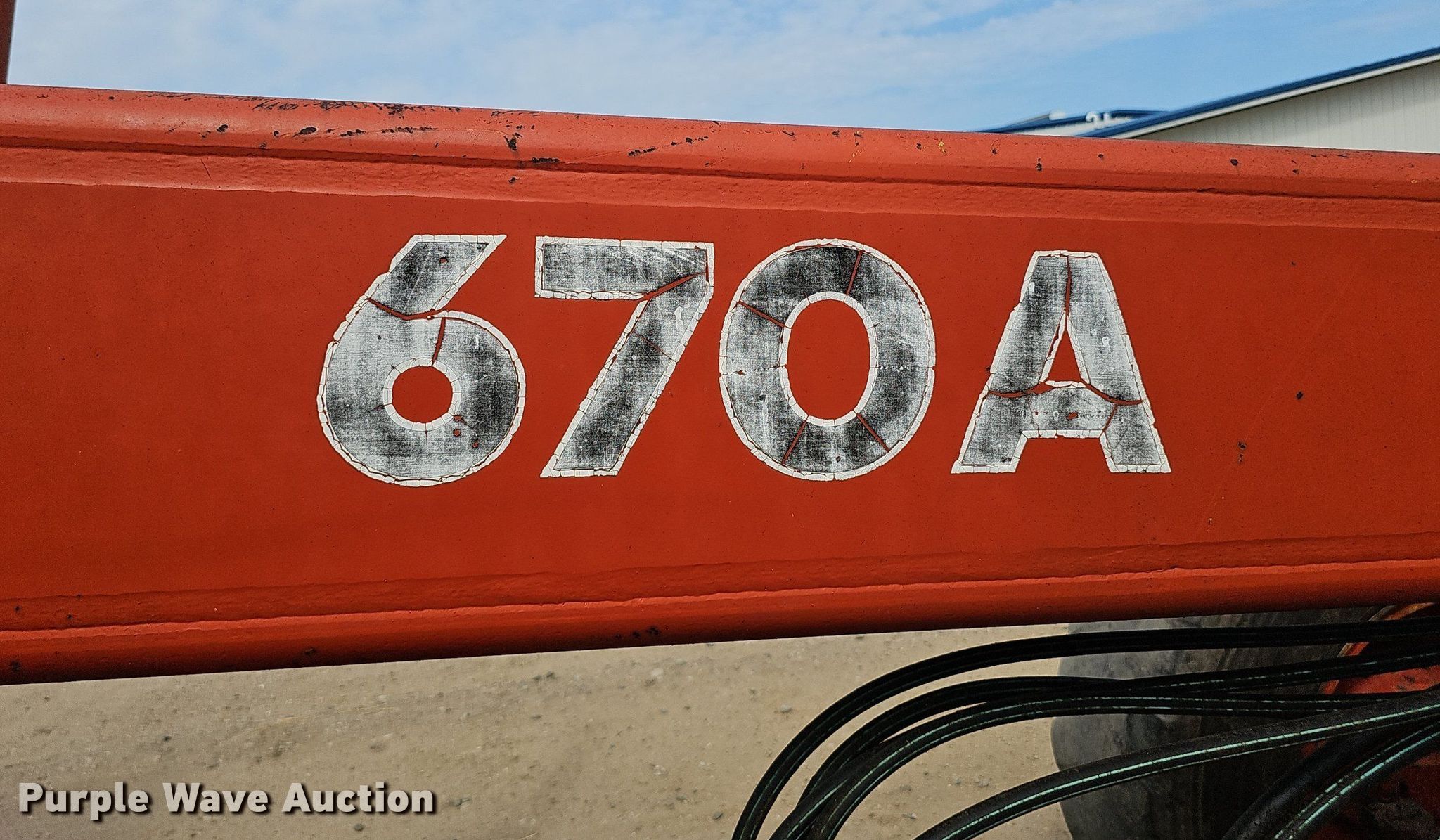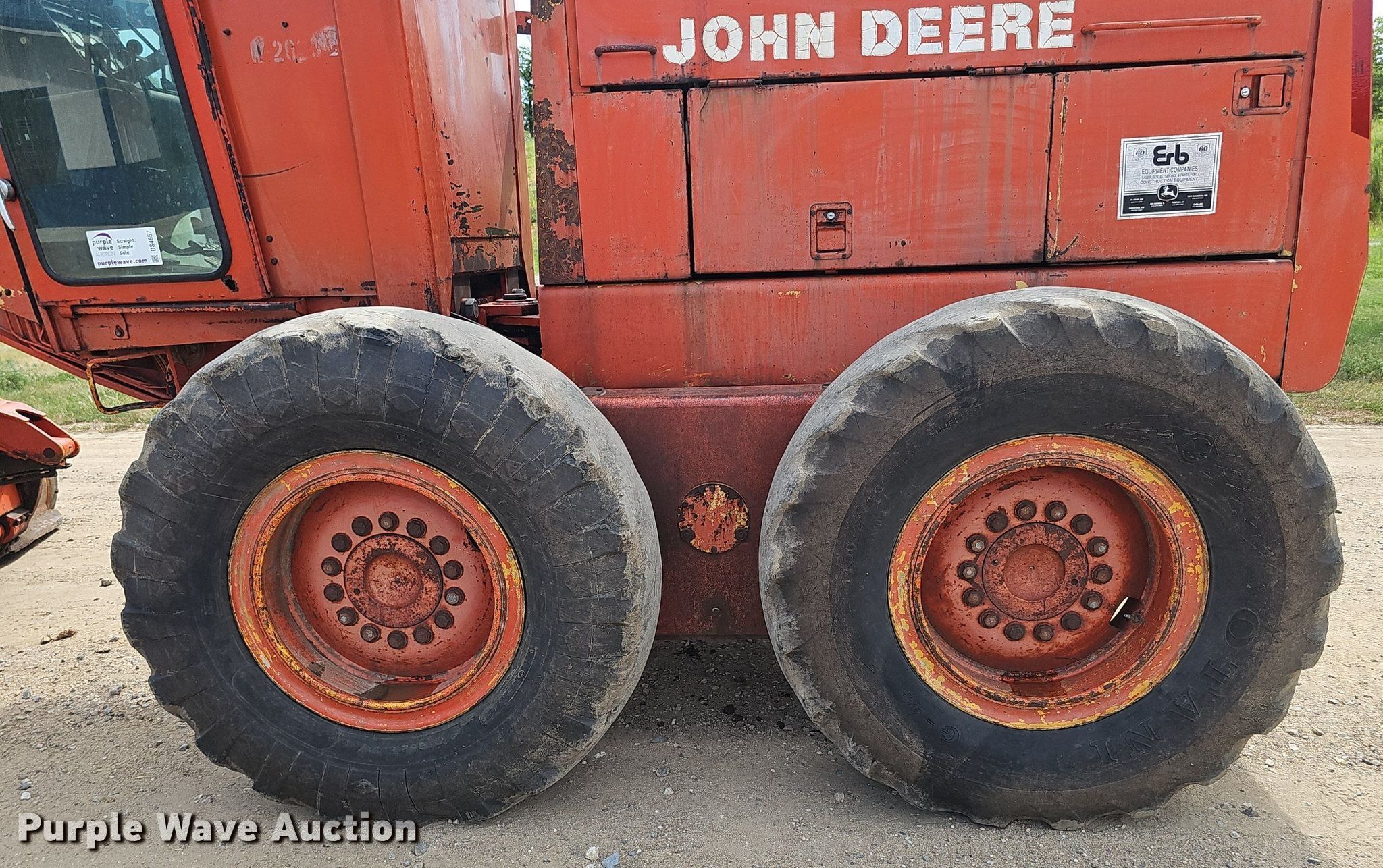 1985 John Deere 670A motor grader. Hours: 806 on meter Actual hours unknown, Serial: DW670AX509225. Engine John Deere 6414TDW05, Serial: T06414T107018, Cylinders: 6, Fuel type: Diesel. Transmission Powershift, 8F - 4R. Chassis Differential lock. Operators station Enclosed cab, Heat, Hydraulic control valves: 7. Features Moldboard: Tip control, Side shift, Moldboard total width: 14', Front-mounted lift group, Scarifier Scarifier type: Front-mounted Teeth: 5.. Tires Size: 14.00R24. Notes Glass cracked, Hydraulic leaks. Inline Construction. Marysville, KS 66508