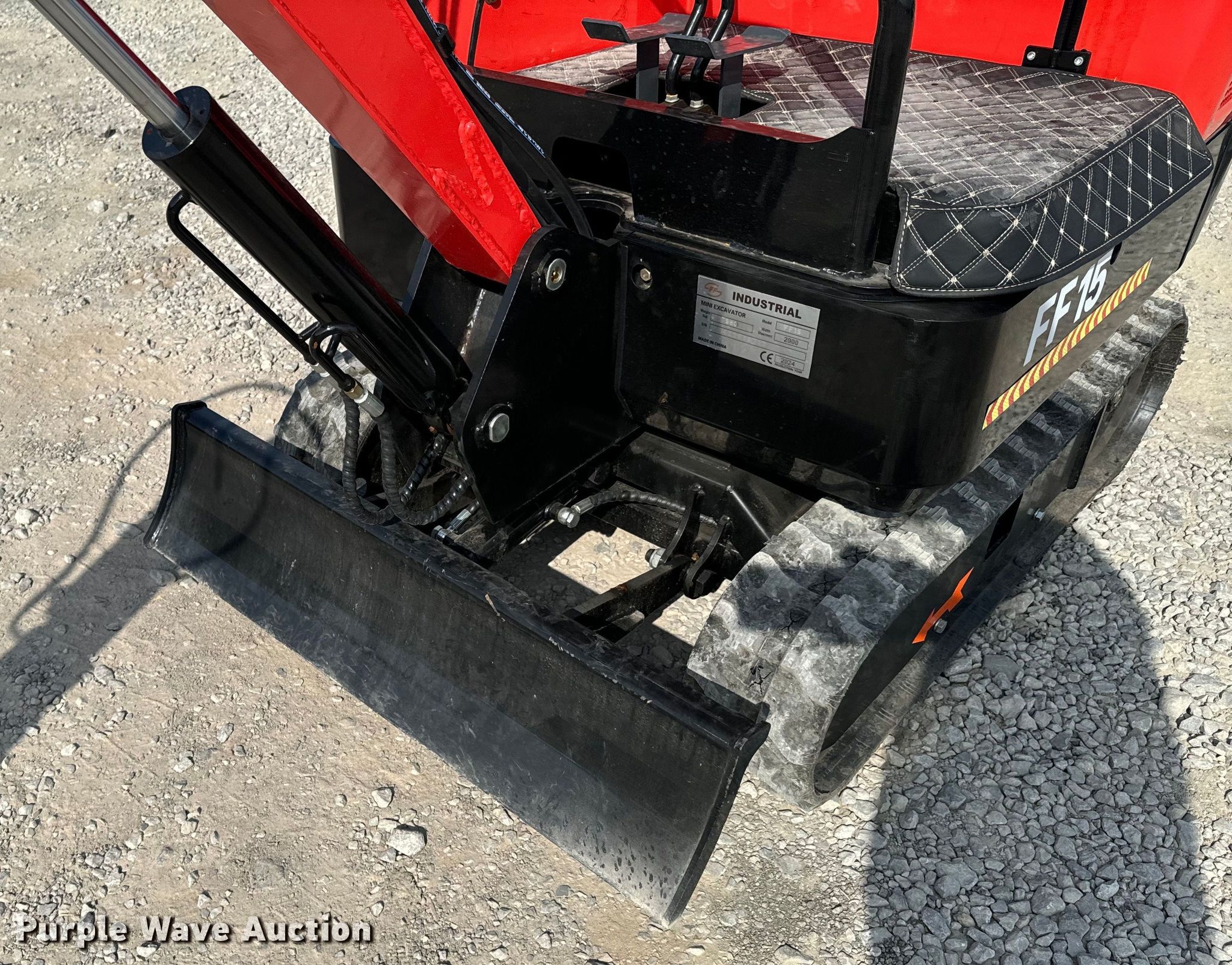 This 2024 FF Industrial FF15 mini excavator will sell to the highest bidder regardless of price.