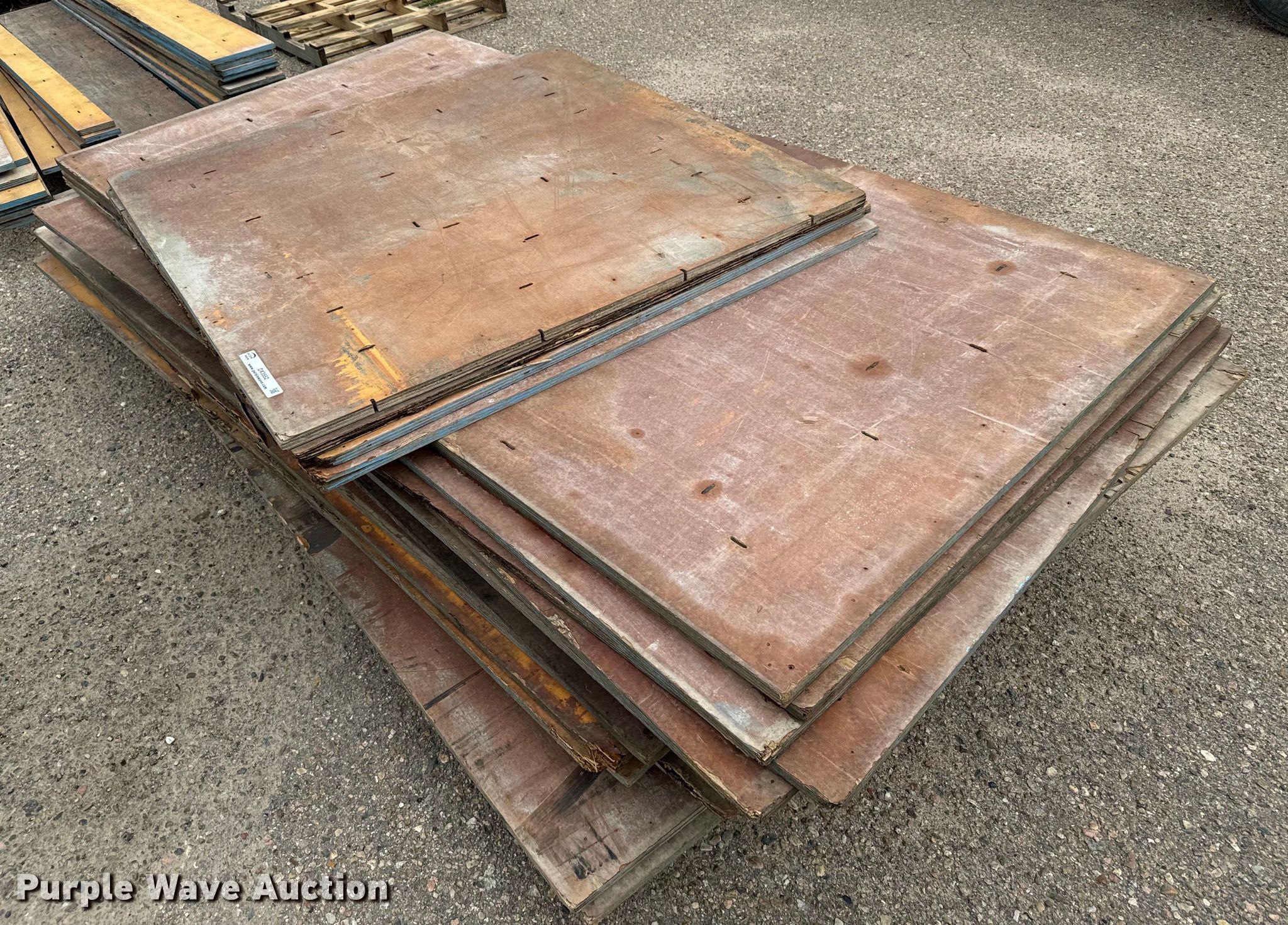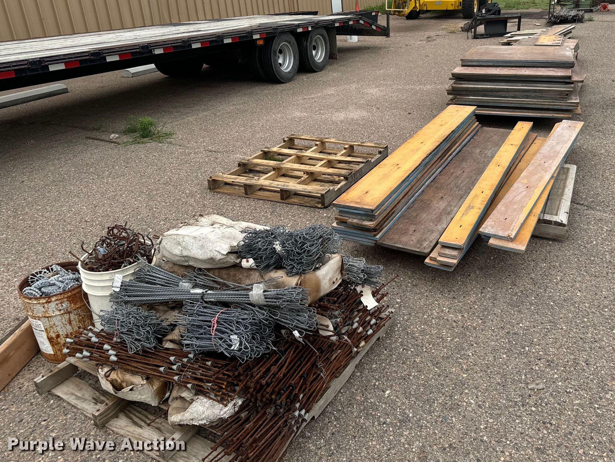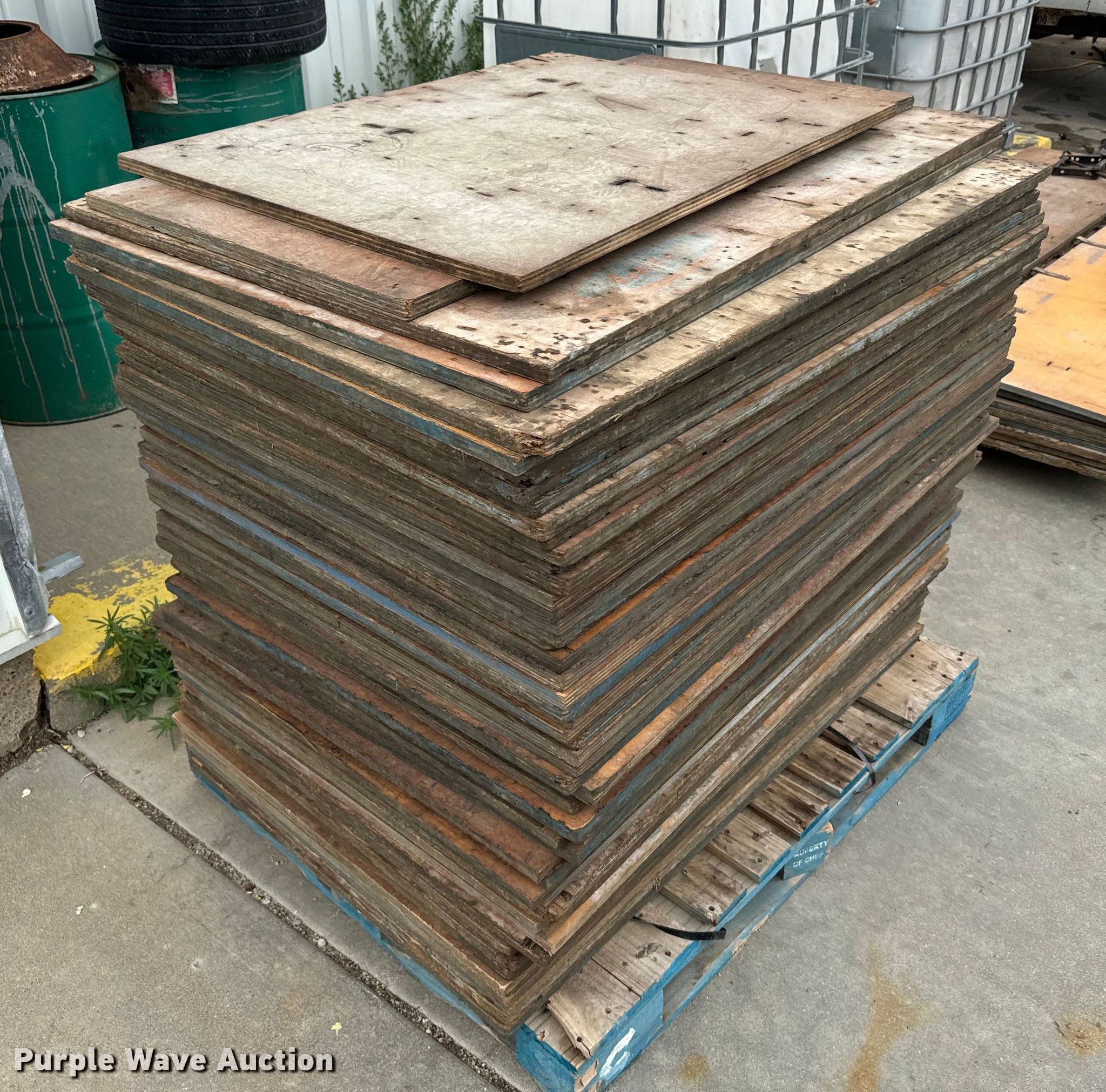 Purple Wave is selling a used Building Materials in Kansas. This item is a Concrete forms with the following: Approx. 13 10" x 8', Approx. 7 7" x 8', Approx. 18 4' x 8', Approx. 4 4' x 4', Wall ties and rear chairs, Wall pins, Approx. 54 32" x 48", (8) pallets of forms, pins and ties