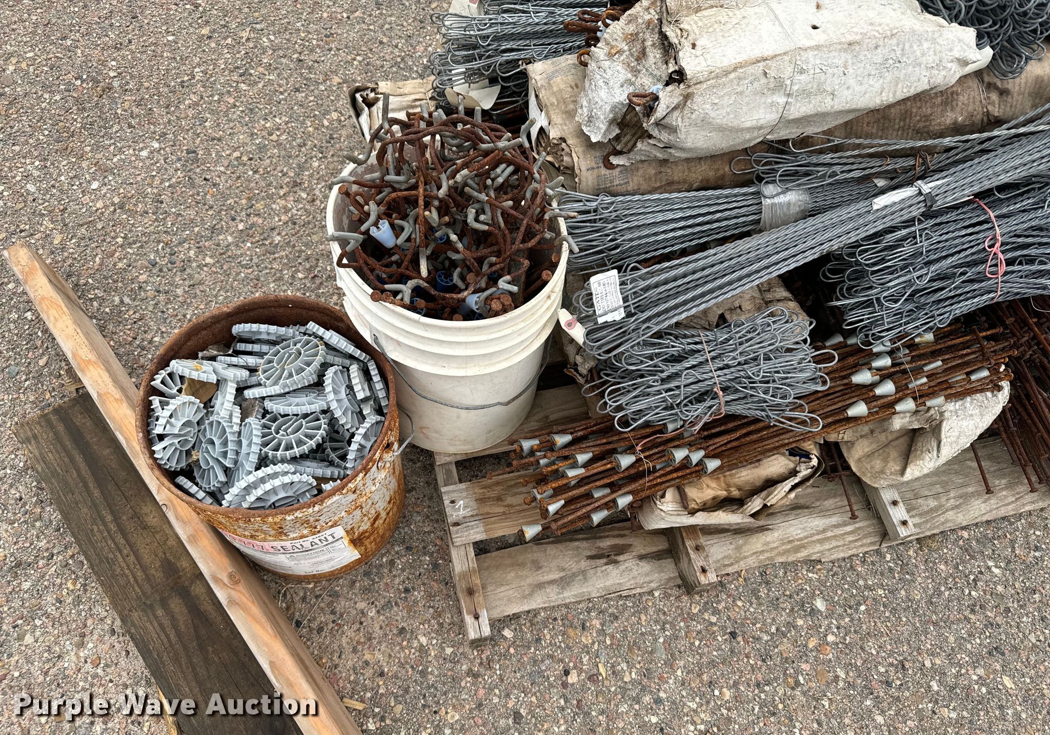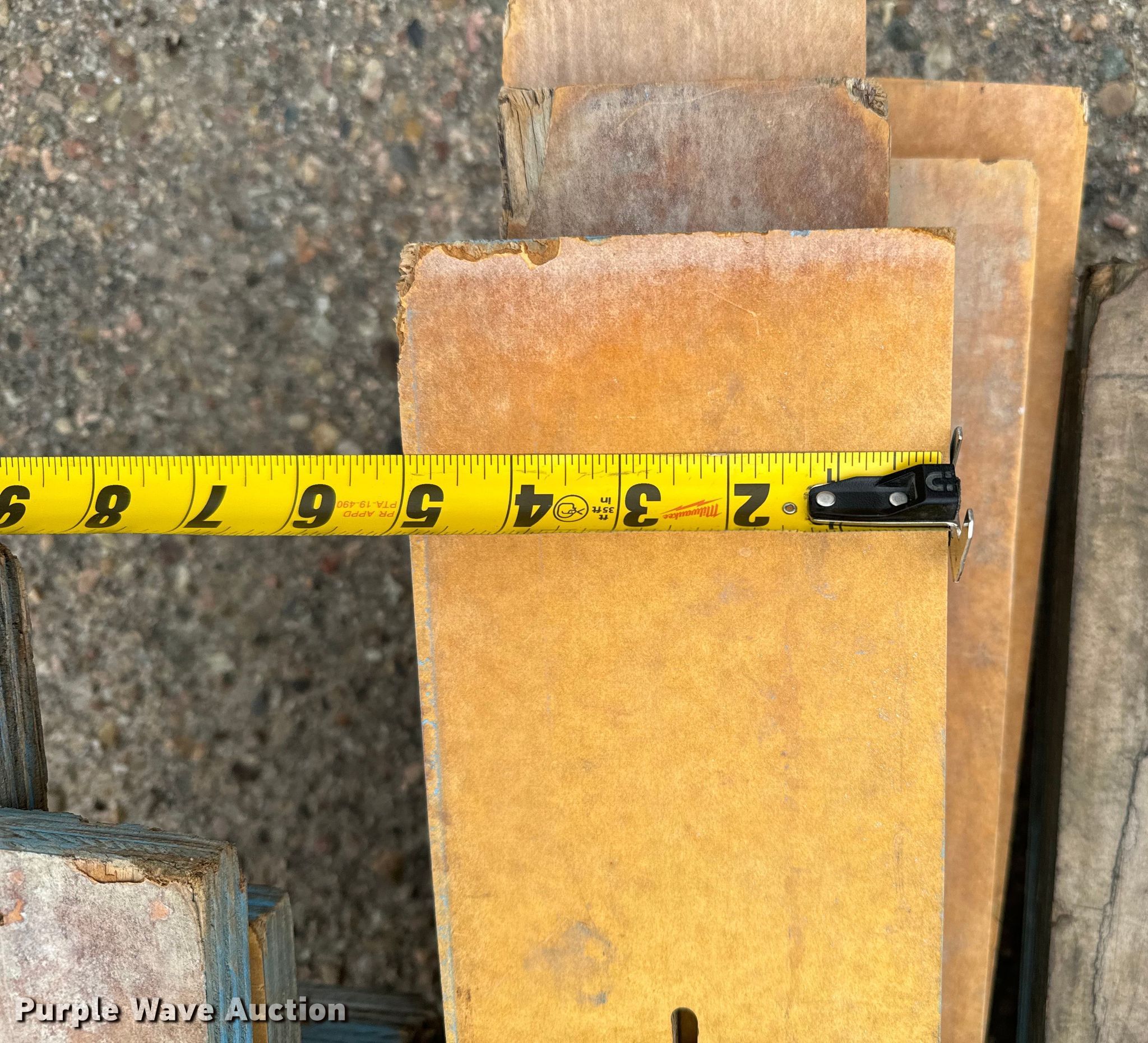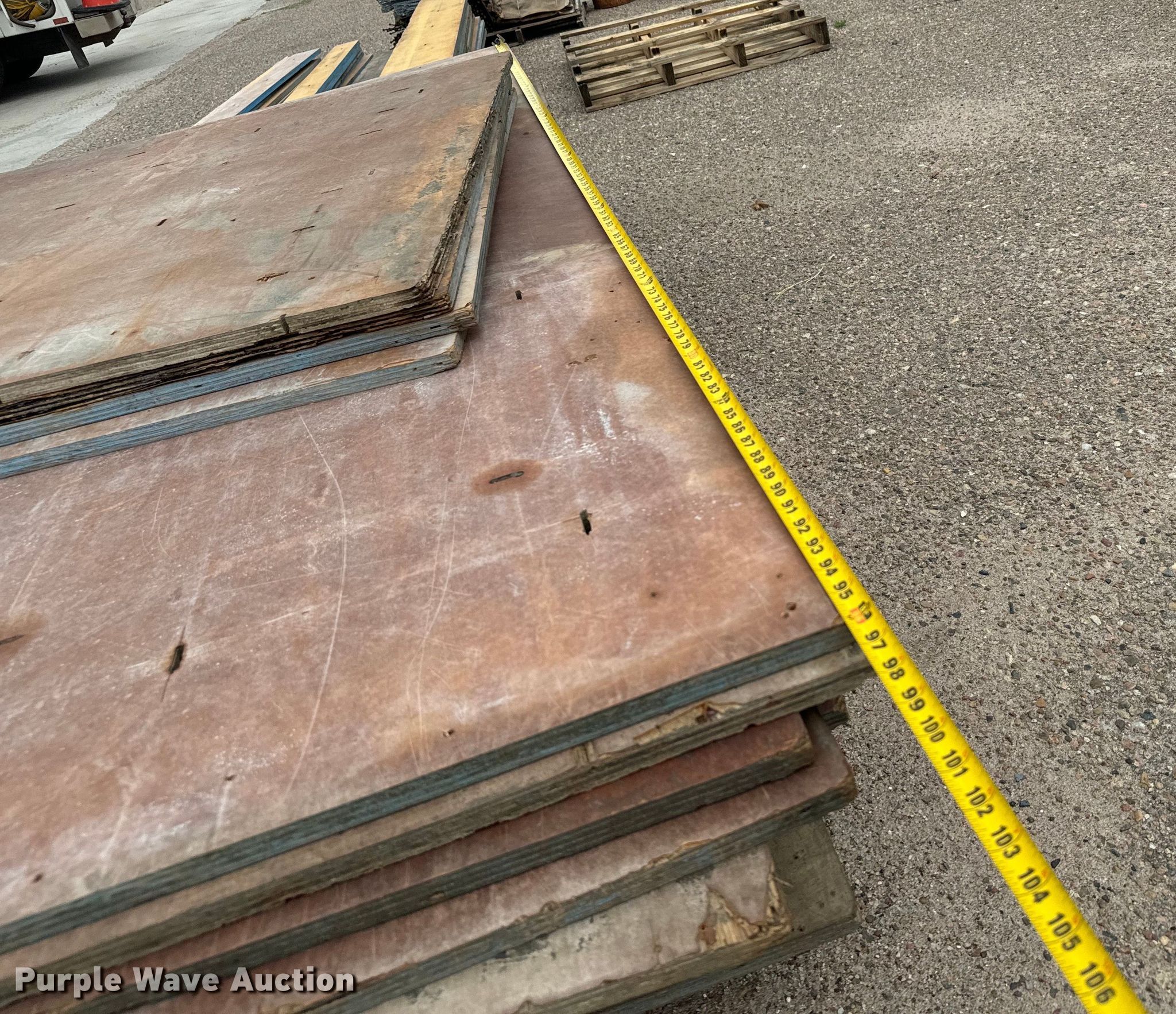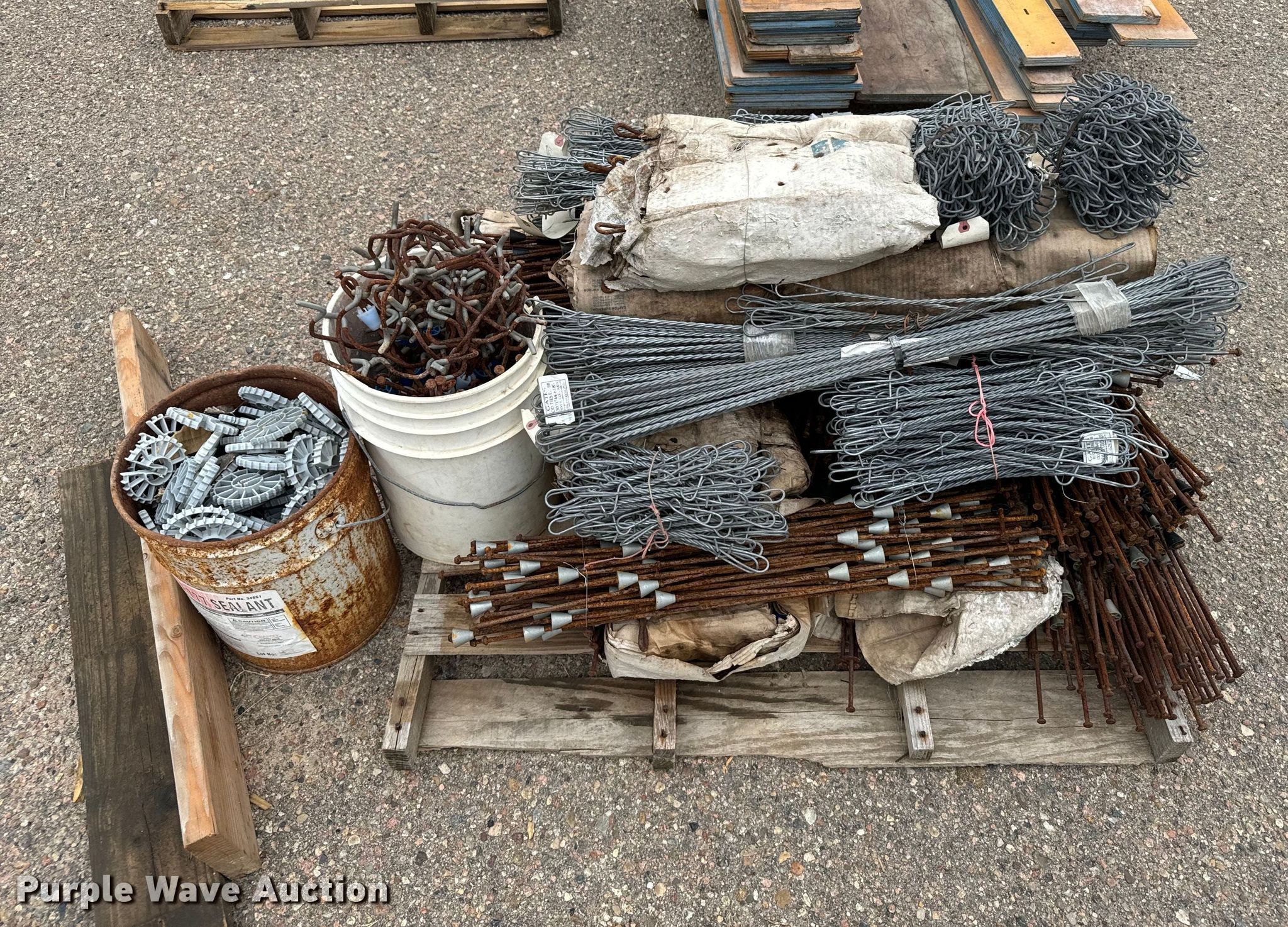 Purple Wave is selling a used Building Materials in Kansas. This item is a Concrete forms with the following: Approx. 13 10" x 8', Approx. 7 7" x 8', Approx. 18 4' x 8', Approx. 4 4' x 4', Wall ties and rear chairs, Wall pins, Approx. 54 32" x 48", (8) pallets of forms, pins and ties