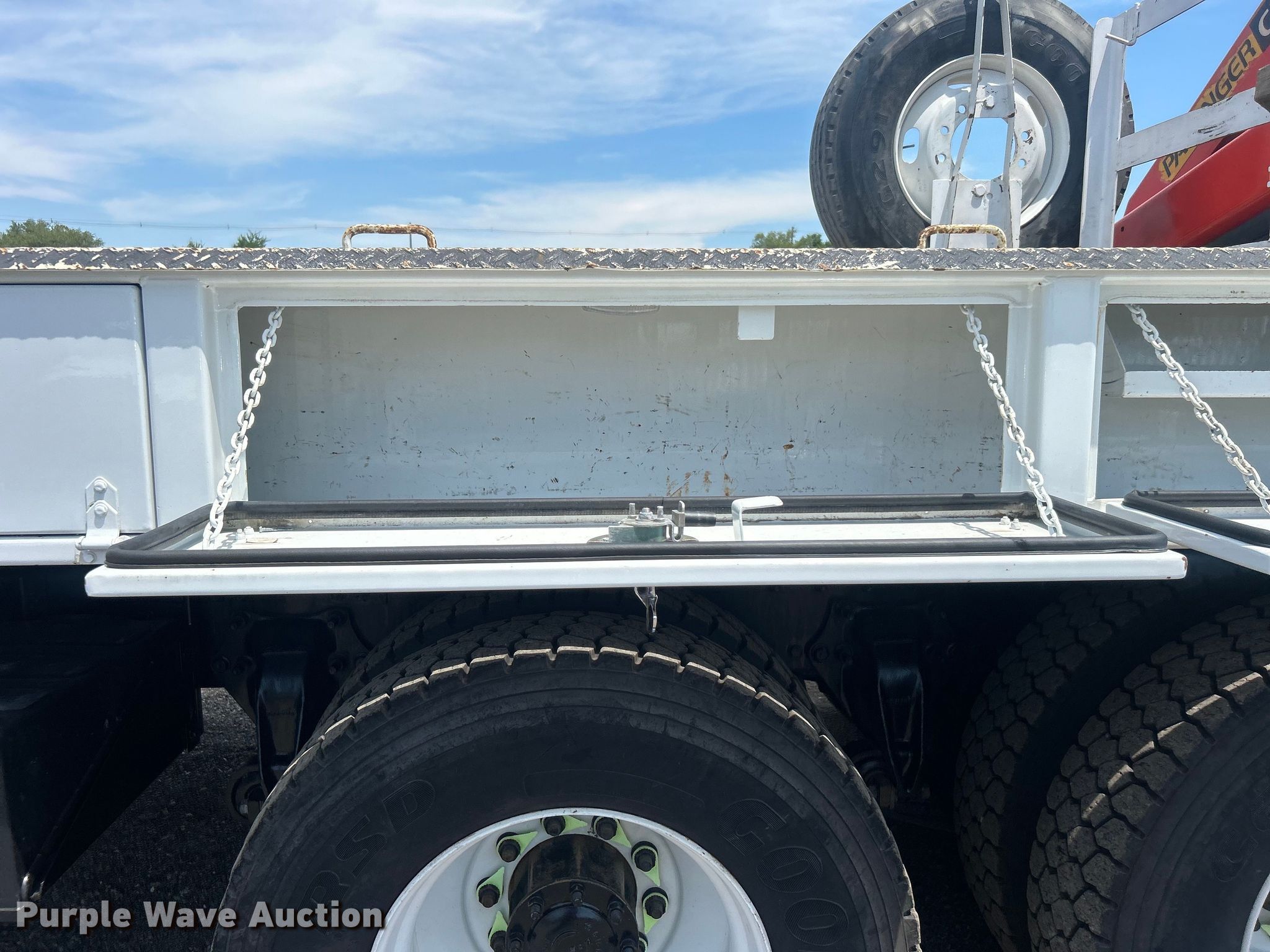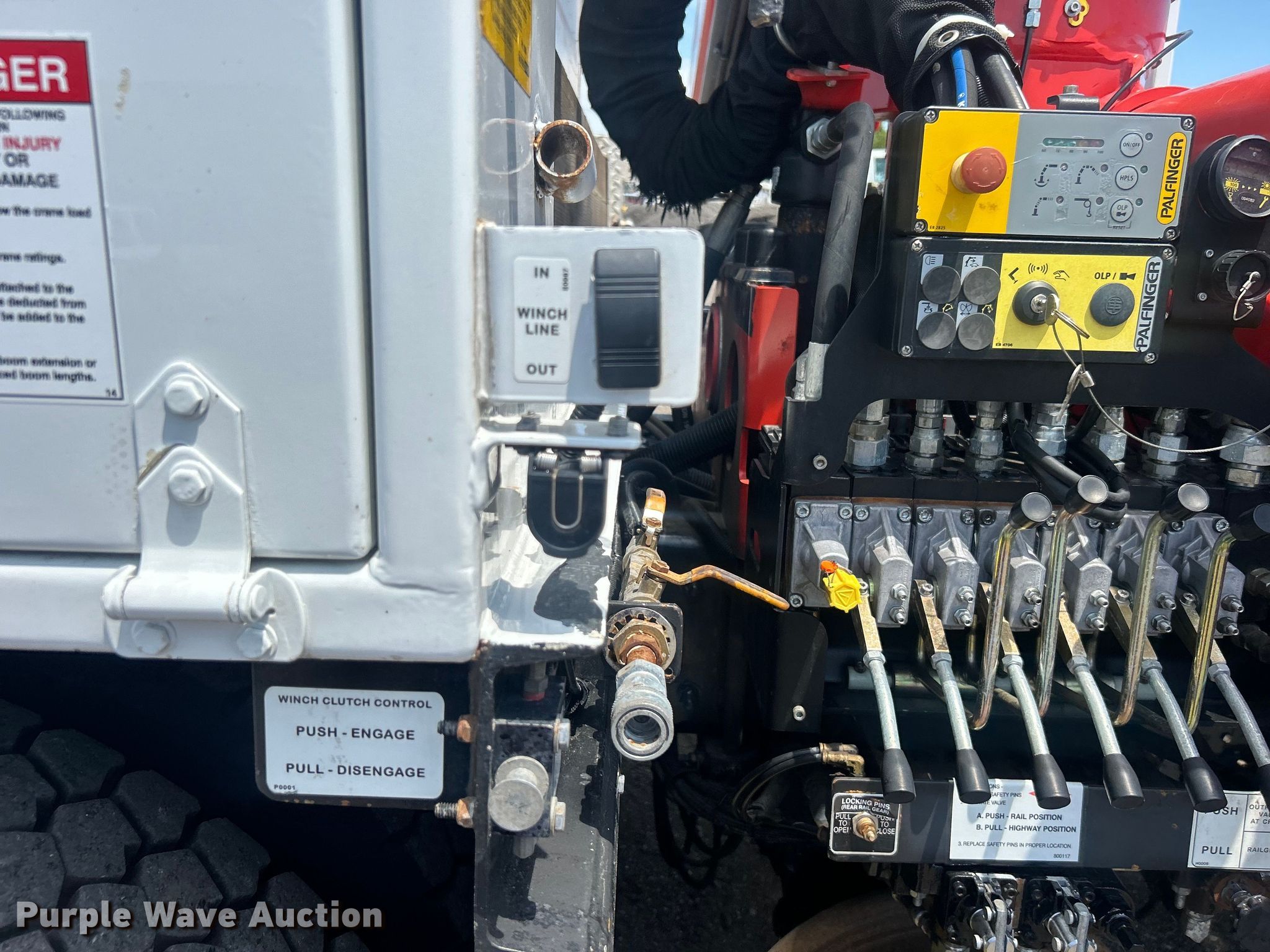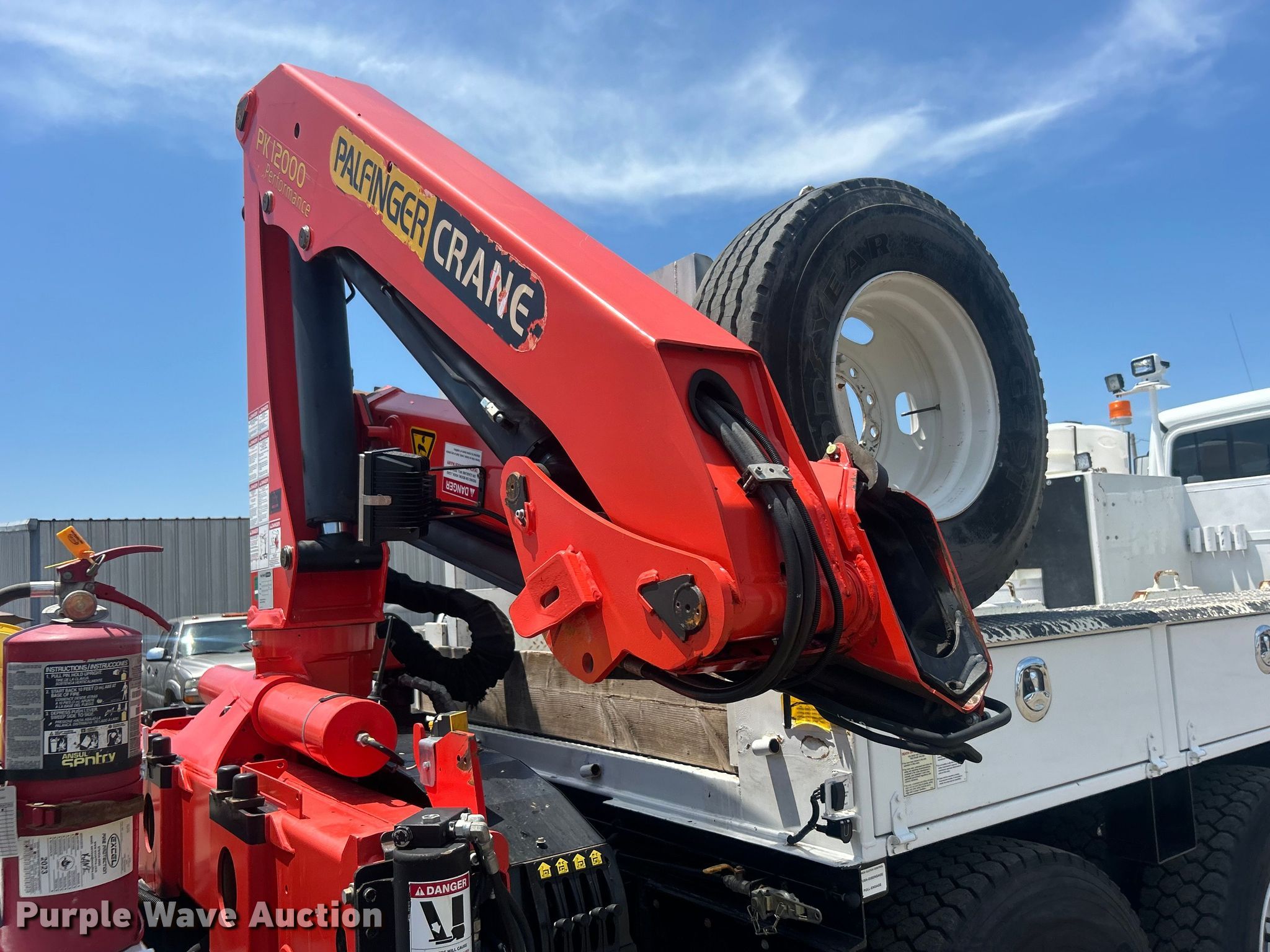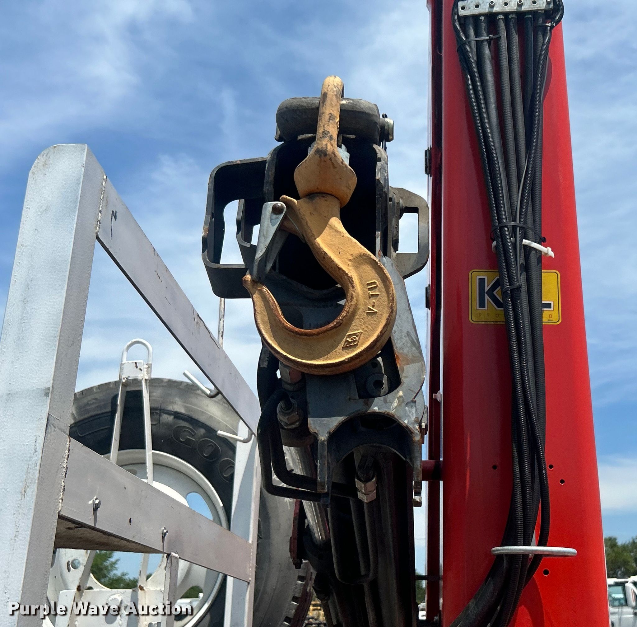 2010 Freightliner Business Class M2 utility / service truck. Miles: 53,982 on odometer, Hours: 5,439 on meter, VIN: 1FVHC7CV2ADAR3101. Engine Mercedes Benz OM460, Displacement: 12.8L, Cylinders: 6, Fuel type: Diesel, HP: 450, kW: 335. Transmission Automated manual. Chassis Axles: Tandem, Suspension: Air, Brakes: Air, PTO, GVWR: 56,000 lbs. Interior AC, Heat, Cruise control, Auxiliary controls, Brake controller. Features Bed 16' 10" L x 101" W, Crane Palfinger PK12000, Maximum boom length: 46' Maximum lift capacity: 14,970 lbs, Hi-rail system. Tires Front: 315/80R22.5, Rear: 11R22.5. Oklahoma title. 15107 North 137th East Avenue. Collinsville, OK 74021