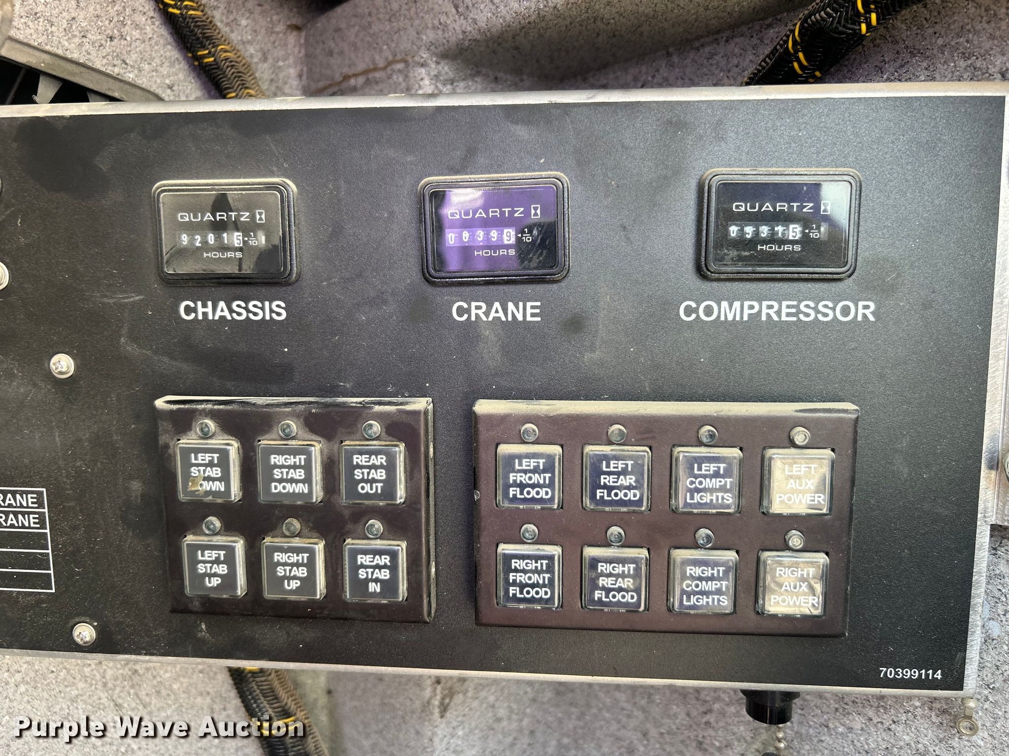 2019 Ford F550 Super Duty utility / service truck. Miles: 153,432 on odometer, Hours: 9,167 on meter, VIN: 1FDUF5HT1KEC63627. Engine Displacement: 6.7L, Cylinders: 8, Fuel type: Diesel. Transmission Automatic. Chassis Four wheel drive, Axles: Single, Suspension: Spring, Brakes: Hydraulic, GVWR: 19,500 lbs, Wheelbase: 169". Interior AC, Heat, Heated mirrors, Power windows, Power locks, Cruise control, Auxiliary controls, Brake controller, Backup camera. Features Bed 10' 11" L x 94" W, Air compressor IMT CAS40P-AW, Oil/lube system Hose reels, Crane IMT 7500, Maximum boom length: 24' Maximum lift capacity: 7,500 lbs.. Tires Size: 225/70R19.5. Notes Dash warning indicator: Airbag. Oklahoma title. Mileage has not been verified. Exempt will be written in the odometer disclosure on the title. Collinsville, OK 74021