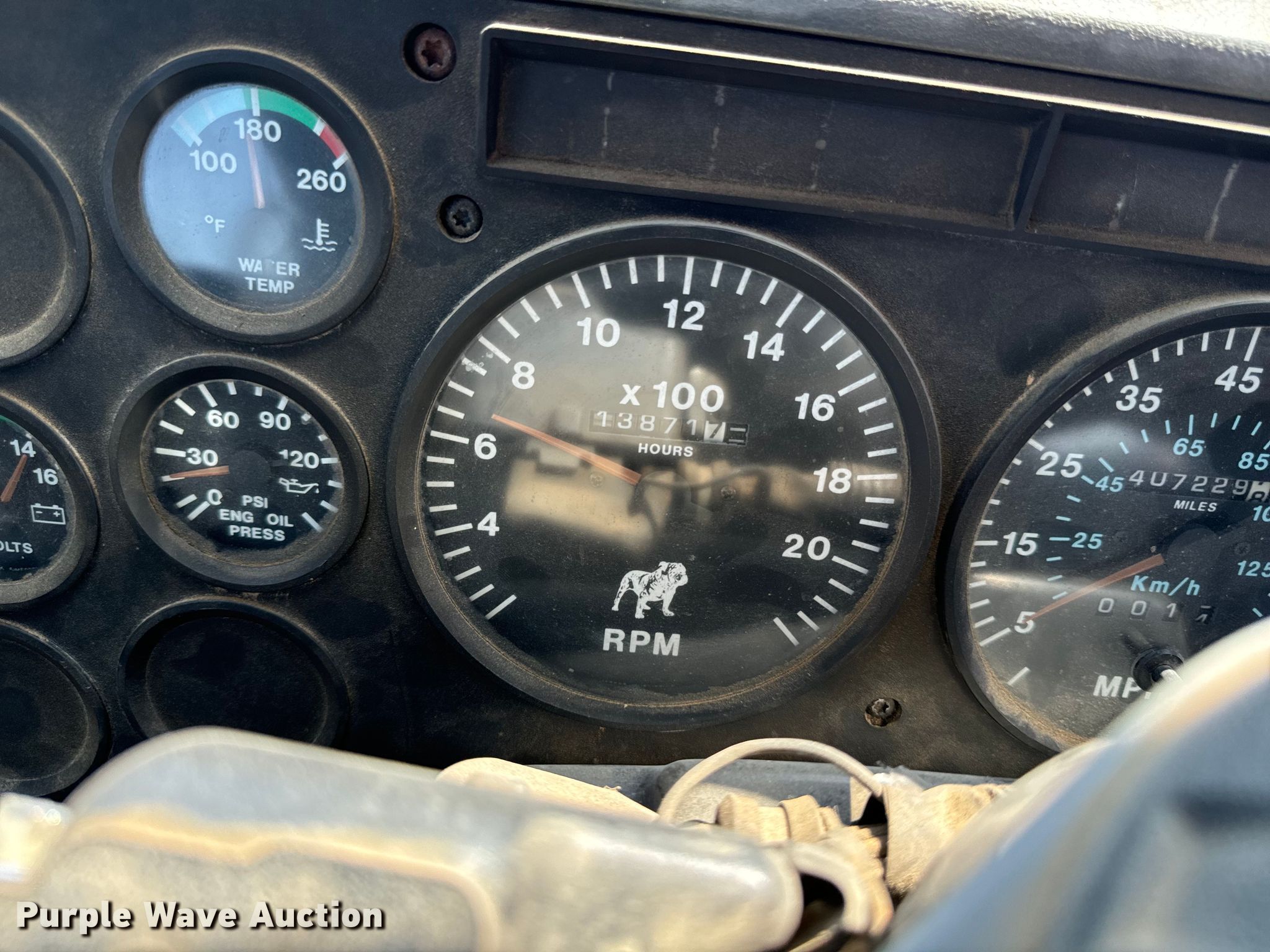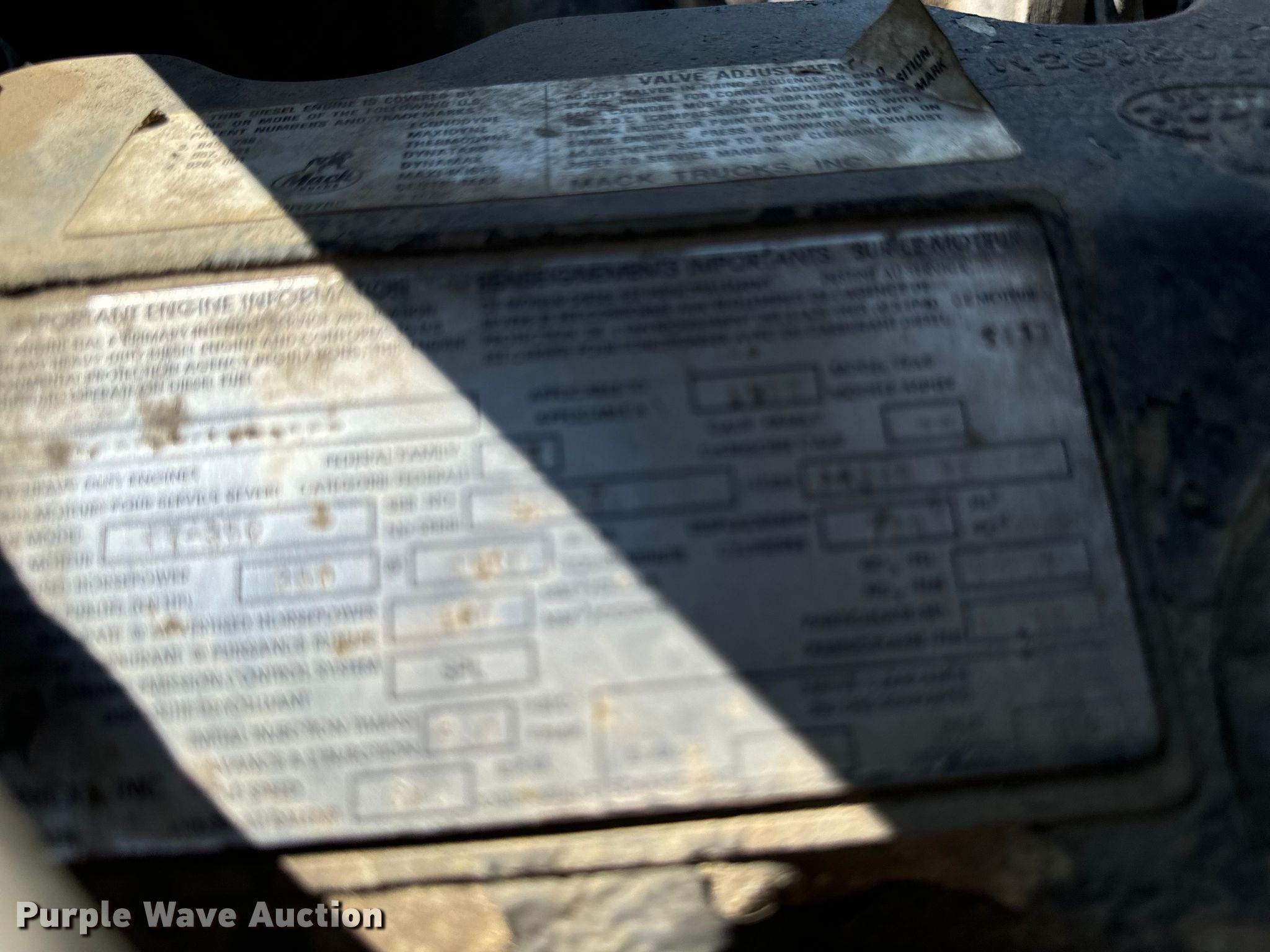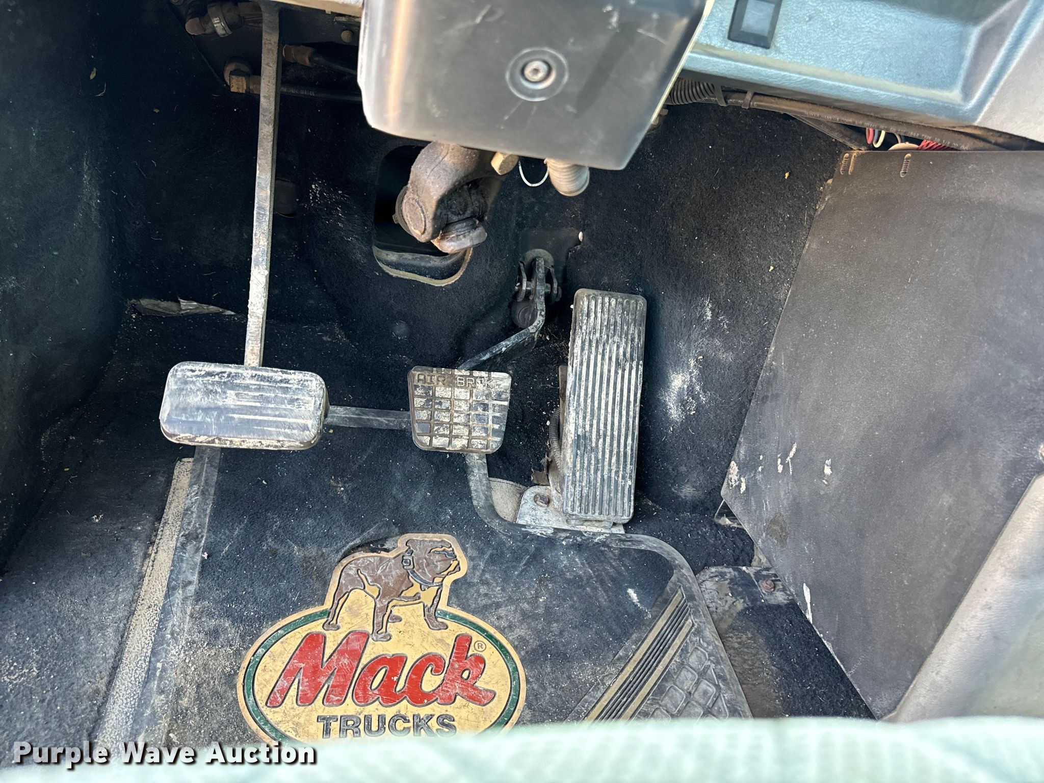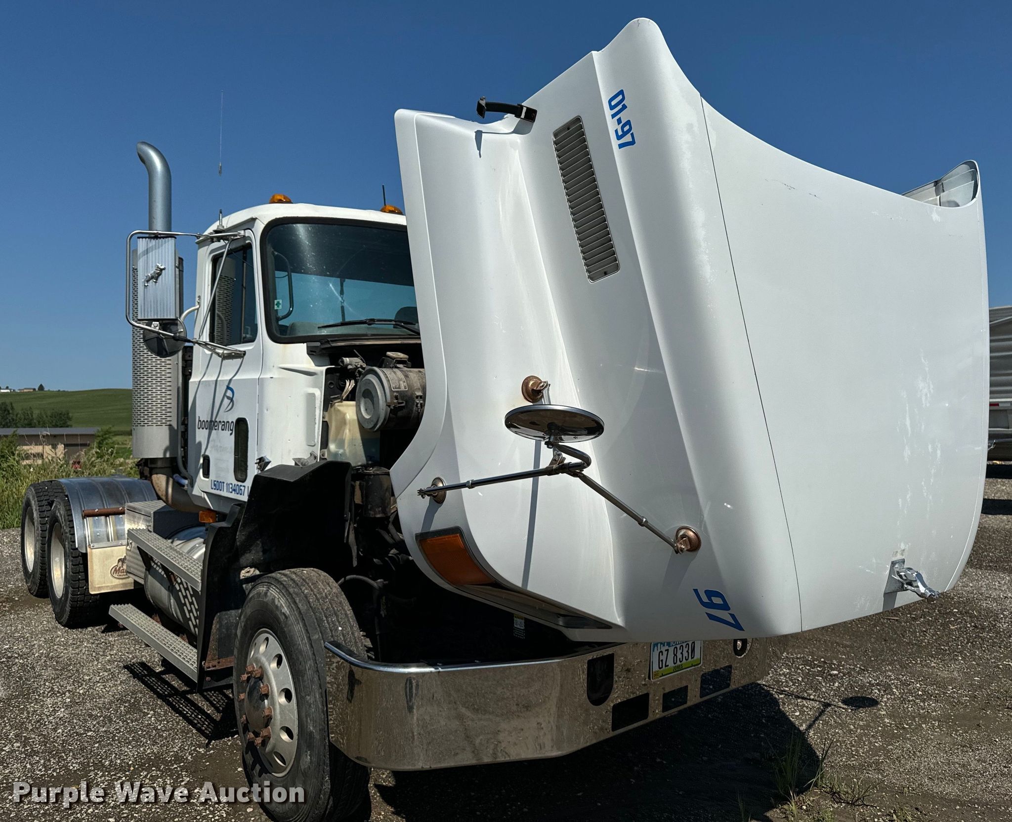 1995 Mack CH613 semi truck. Miles: 407,230 on odometer, Hours: 13,872 on meter, VIN: 1M1AA13Y0SW049787. Engine Mack E7 350, Displacement: 12.0L, Cylinders: 6, Fuel type: Diesel. Transmission Eaton Fuller Roadranger, Manual, Speed: 10. Chassis Axles: Tandem, Differential lock: Inter-axle, Suspension: Air, Brakes: Air, PTO, Wet kit. Interior AC, Heat, Cruise control, Air ride cab. Features Deck plate: Aluminum, Fifth wheel type: Air operated, Fuel tank: Single. Tires Front: 11R22.5, Rear: 295/75R22.5. Iowa title. Boomerang Corp. Anamosa, IA 52205