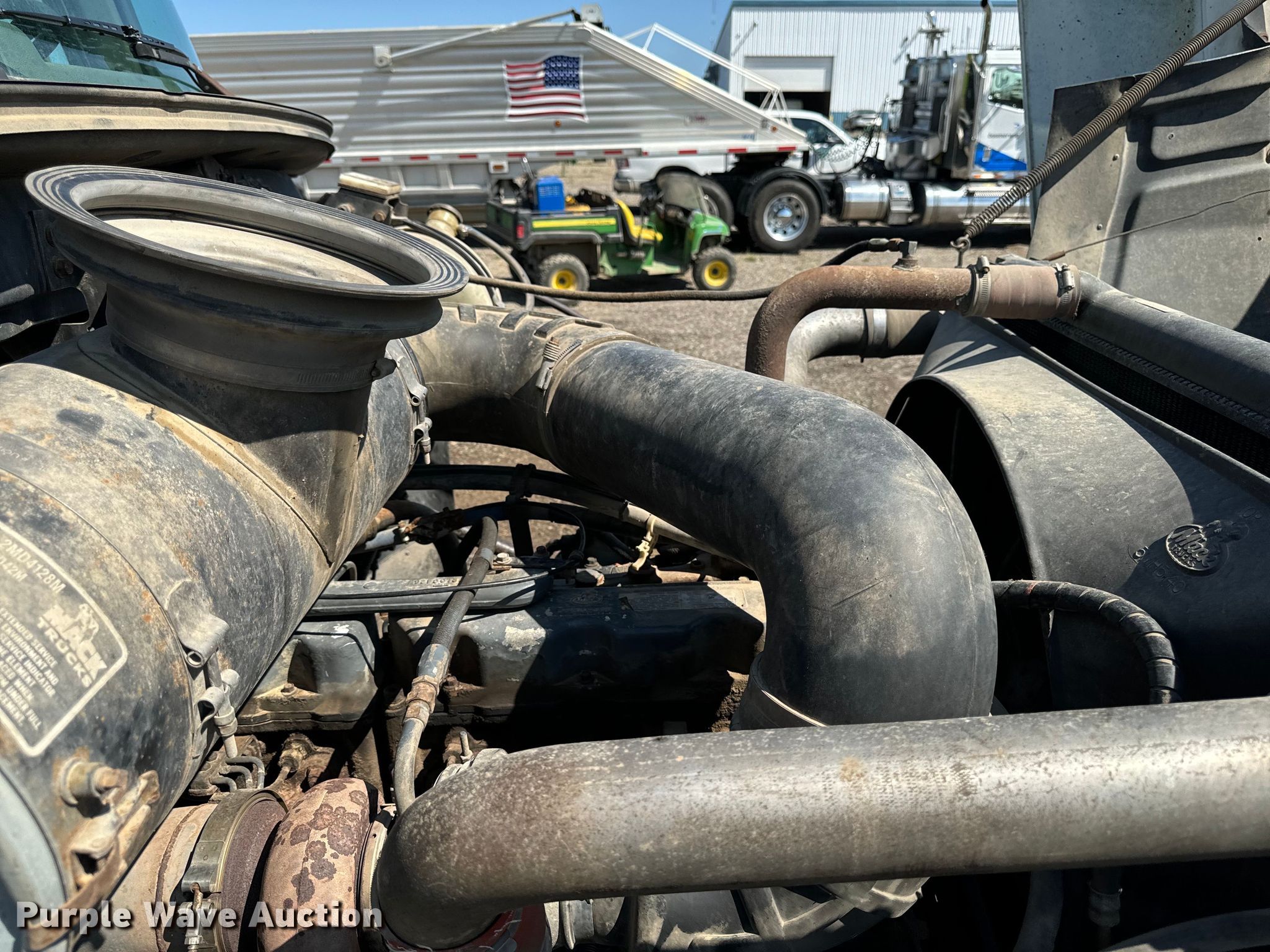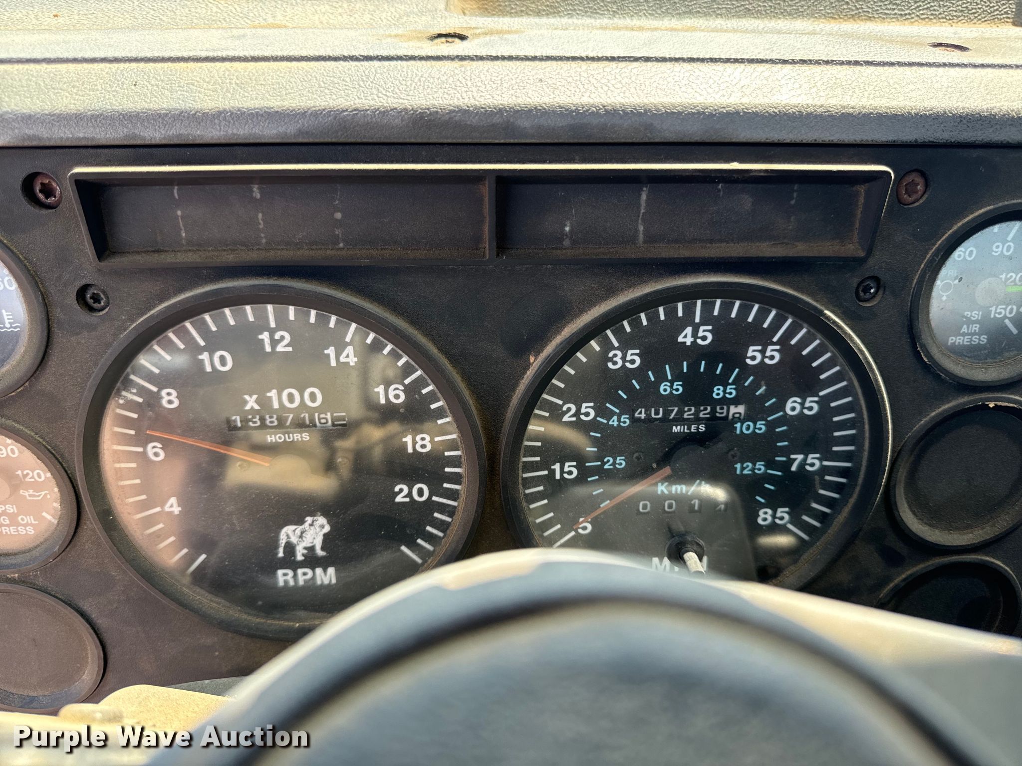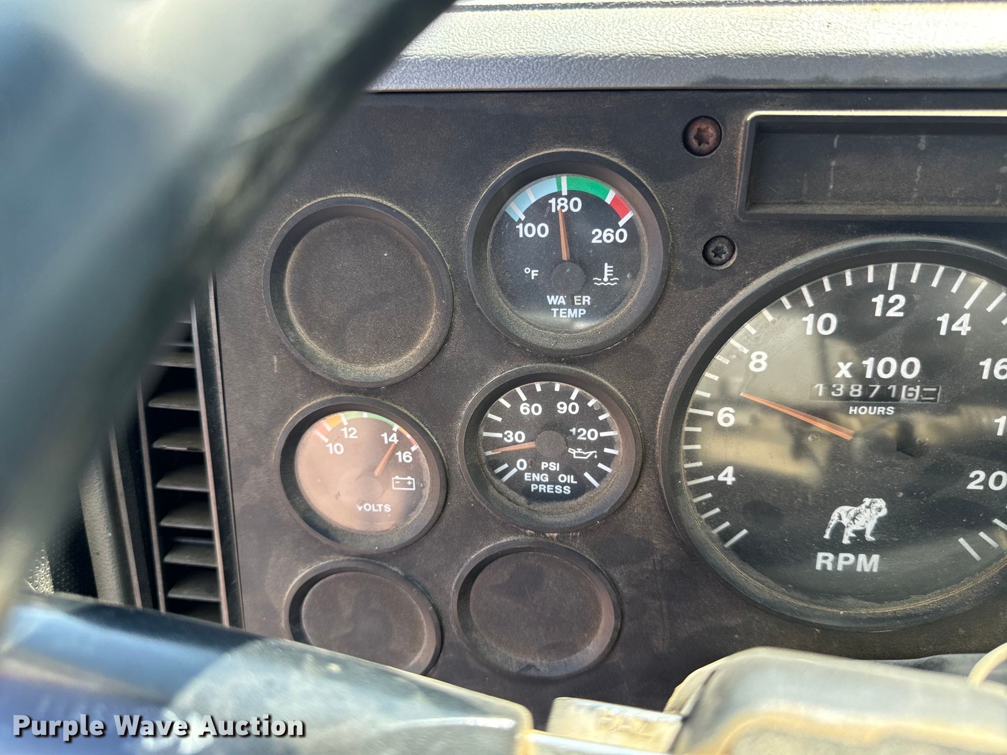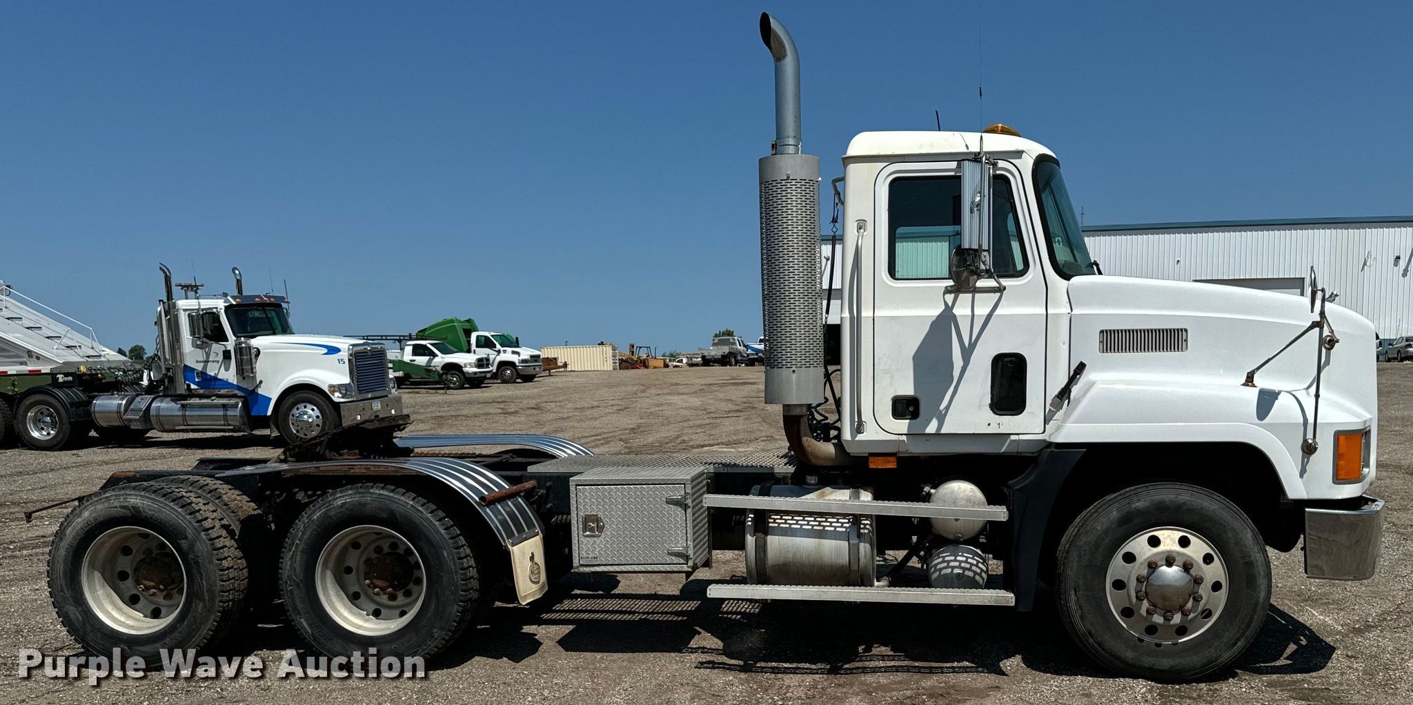 1995 Mack CH613 semi truck. Miles: 407,230 on odometer, Hours: 13,872 on meter, VIN: 1M1AA13Y0SW049787. Engine Mack E7 350, Displacement: 12.0L, Cylinders: 6, Fuel type: Diesel. Transmission Eaton Fuller Roadranger, Manual, Speed: 10. Chassis Axles: Tandem, Differential lock: Inter-axle, Suspension: Air, Brakes: Air, PTO, Wet kit. Interior AC, Heat, Cruise control, Air ride cab. Features Deck plate: Aluminum, Fifth wheel type: Air operated, Fuel tank: Single. Tires Front: 11R22.5, Rear: 295/75R22.5. Iowa title. Boomerang Corp. Anamosa, IA 52205