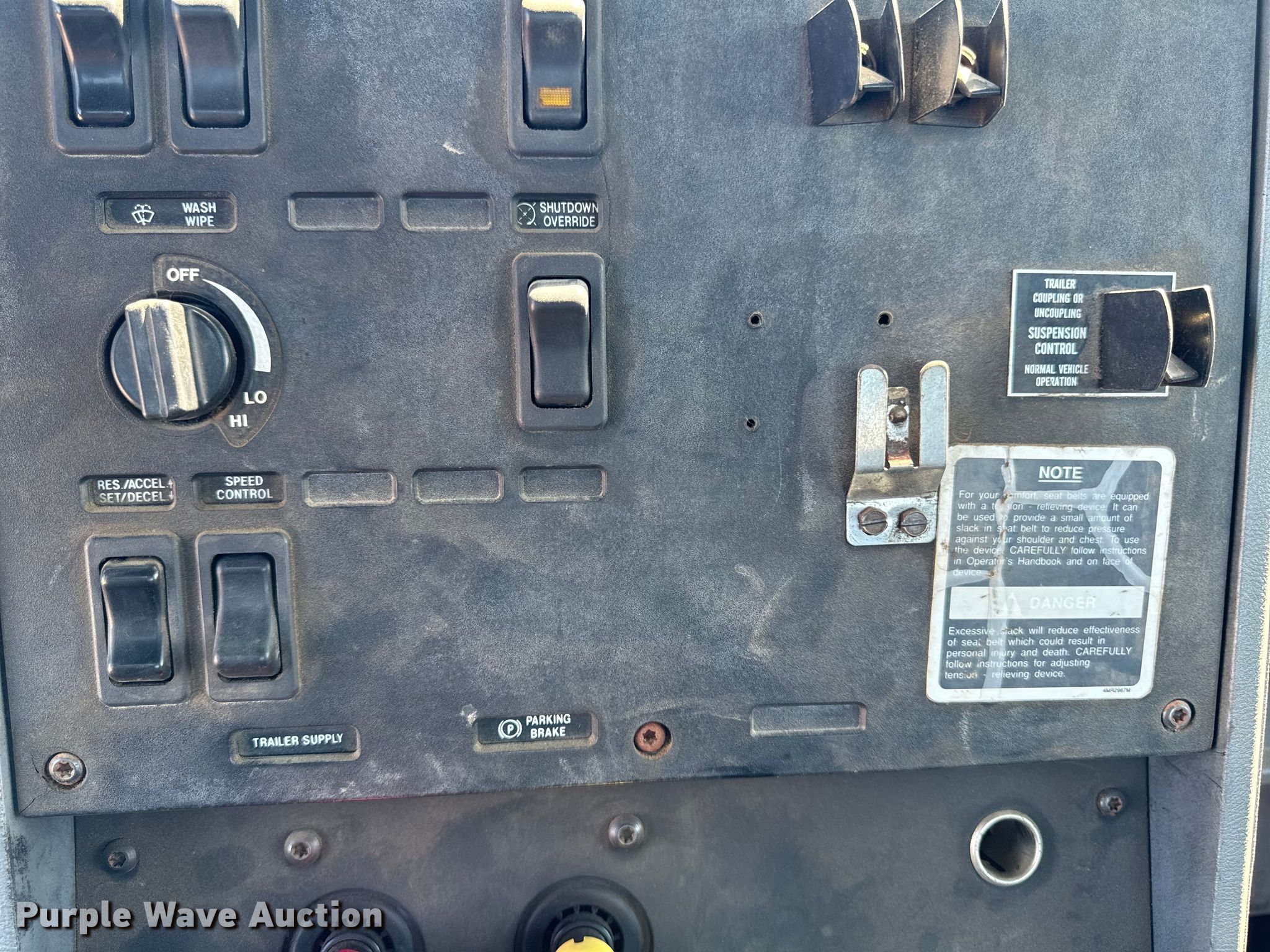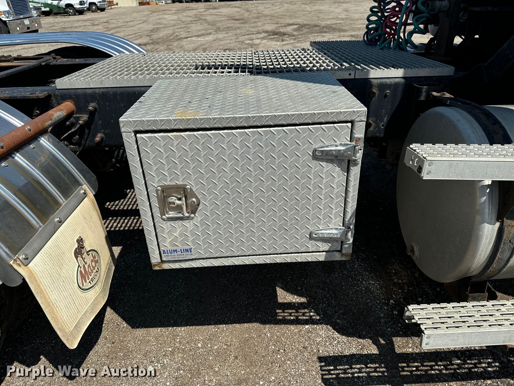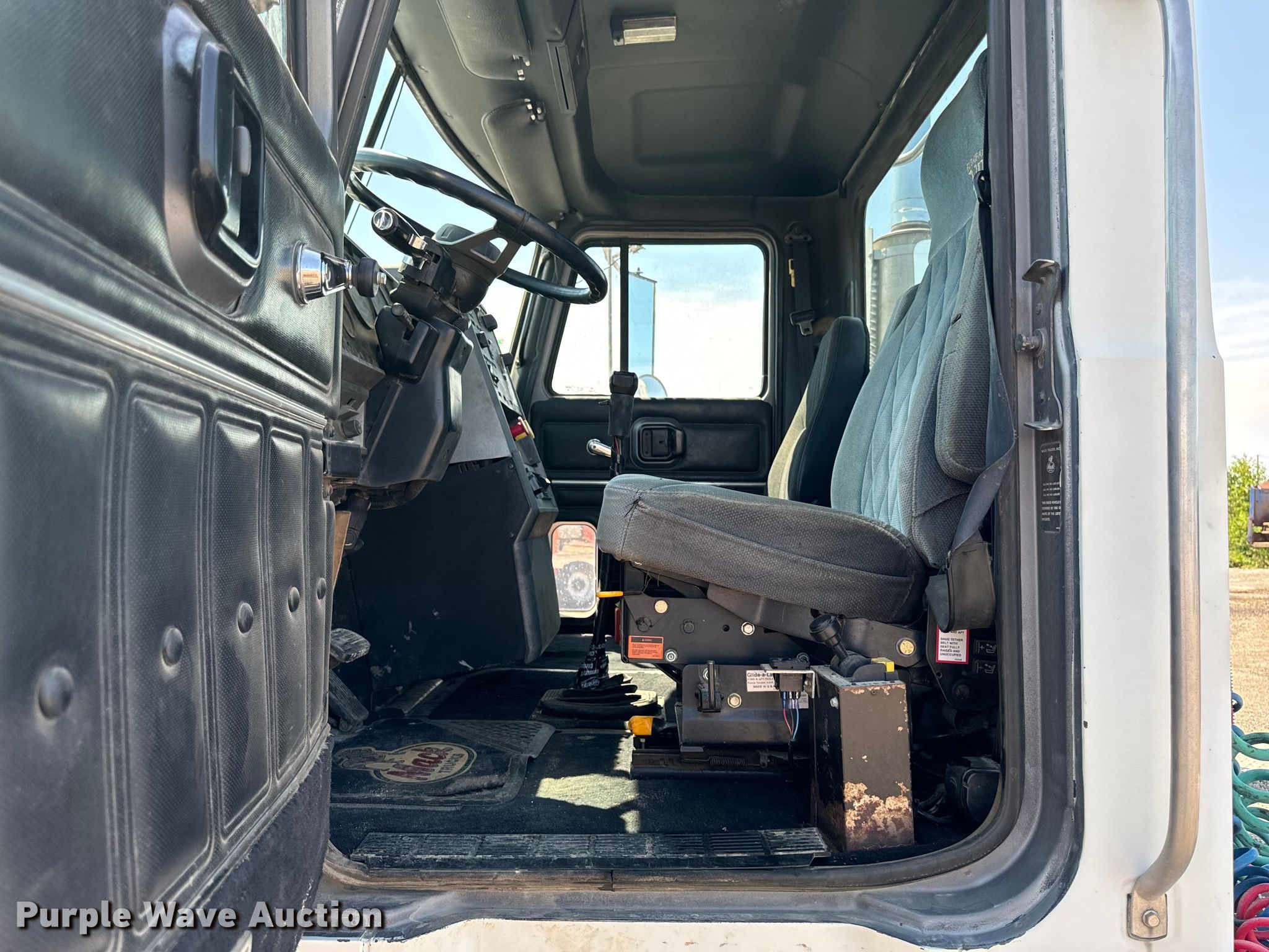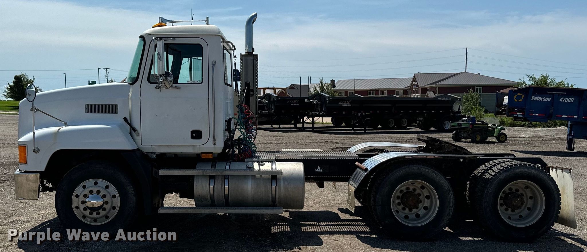 1995 Mack CH613 semi truck. Miles: 407,230 on odometer, Hours: 13,872 on meter, VIN: 1M1AA13Y0SW049787. Engine Mack E7 350, Displacement: 12.0L, Cylinders: 6, Fuel type: Diesel. Transmission Eaton Fuller Roadranger, Manual, Speed: 10. Chassis Axles: Tandem, Differential lock: Inter-axle, Suspension: Air, Brakes: Air, PTO, Wet kit. Interior AC, Heat, Cruise control, Air ride cab. Features Deck plate: Aluminum, Fifth wheel type: Air operated, Fuel tank: Single. Tires Front: 11R22.5, Rear: 295/75R22.5. Iowa title. Boomerang Corp. Anamosa, IA 52205