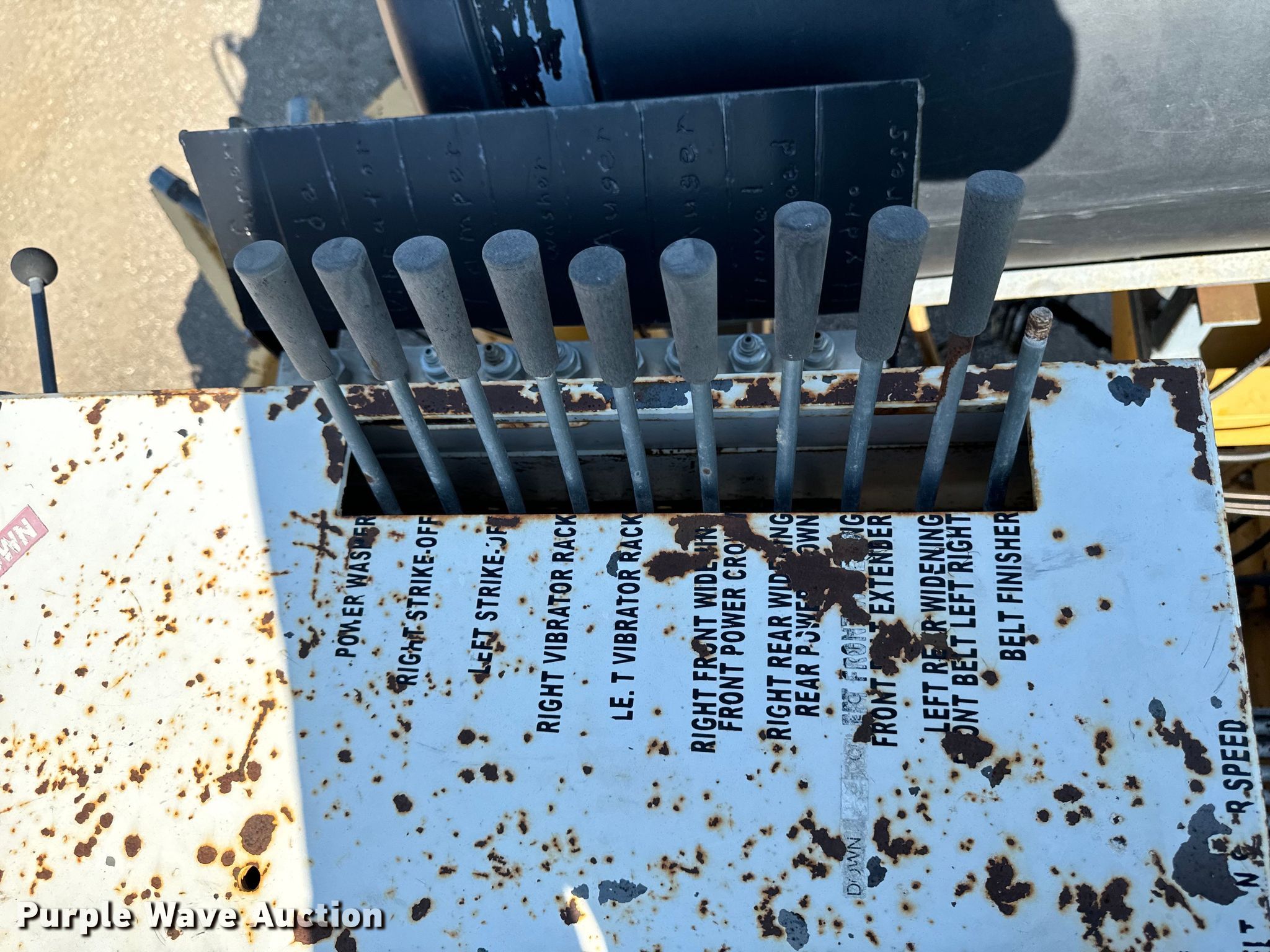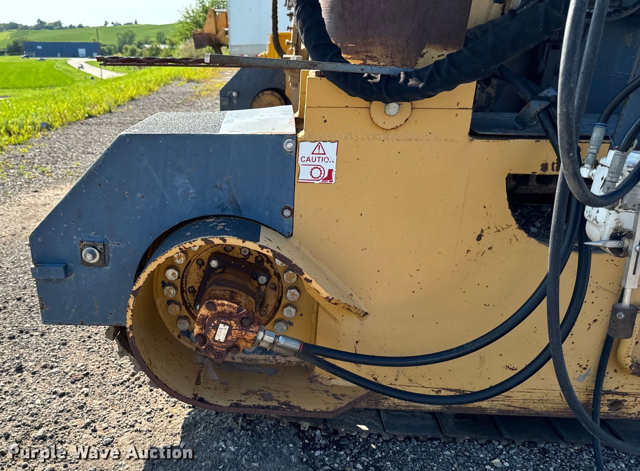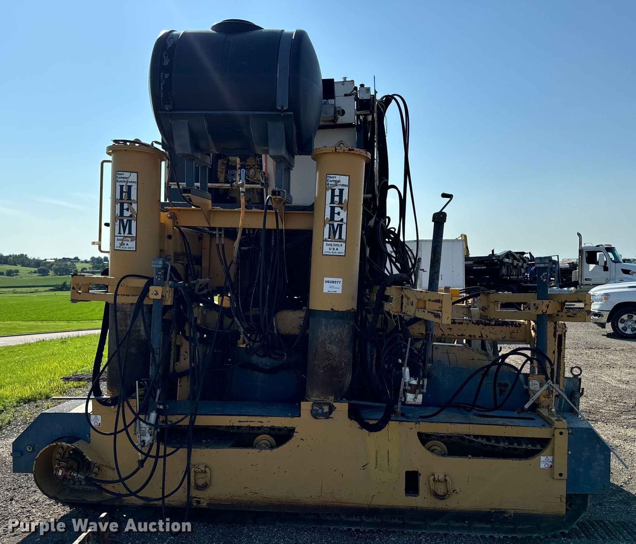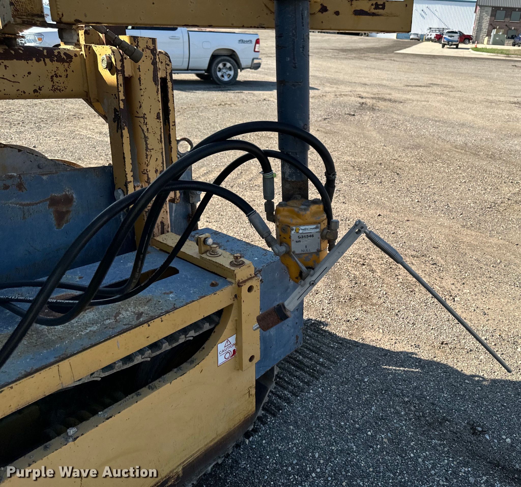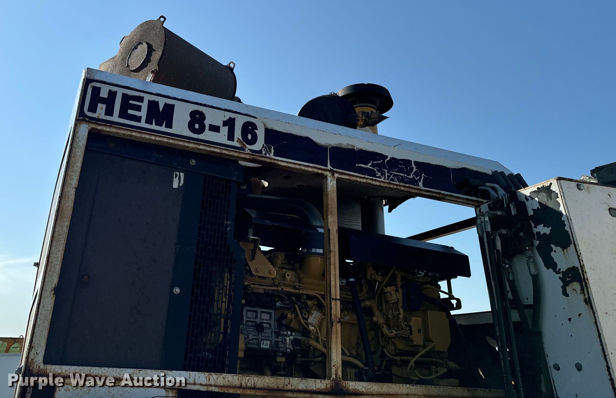 HEM 8-16 slip form paver. Hours: Unknown. Engine Caterpilar C6.6 Acert, Serial: 66609108, Displacement: 6.6L, Fuel type: Diesel. Transmission Hydrostatic. Features Paving width: 8' to16', Molds: 4, Auger Length: 84", Diameter: 16", Hopper 60" L x 108" W, Conveyor 10' L x 30" W. Tracks Width: 12", Steel, Grouser pads: Triple. Boomerang Corp. Anamosa, IA 52205