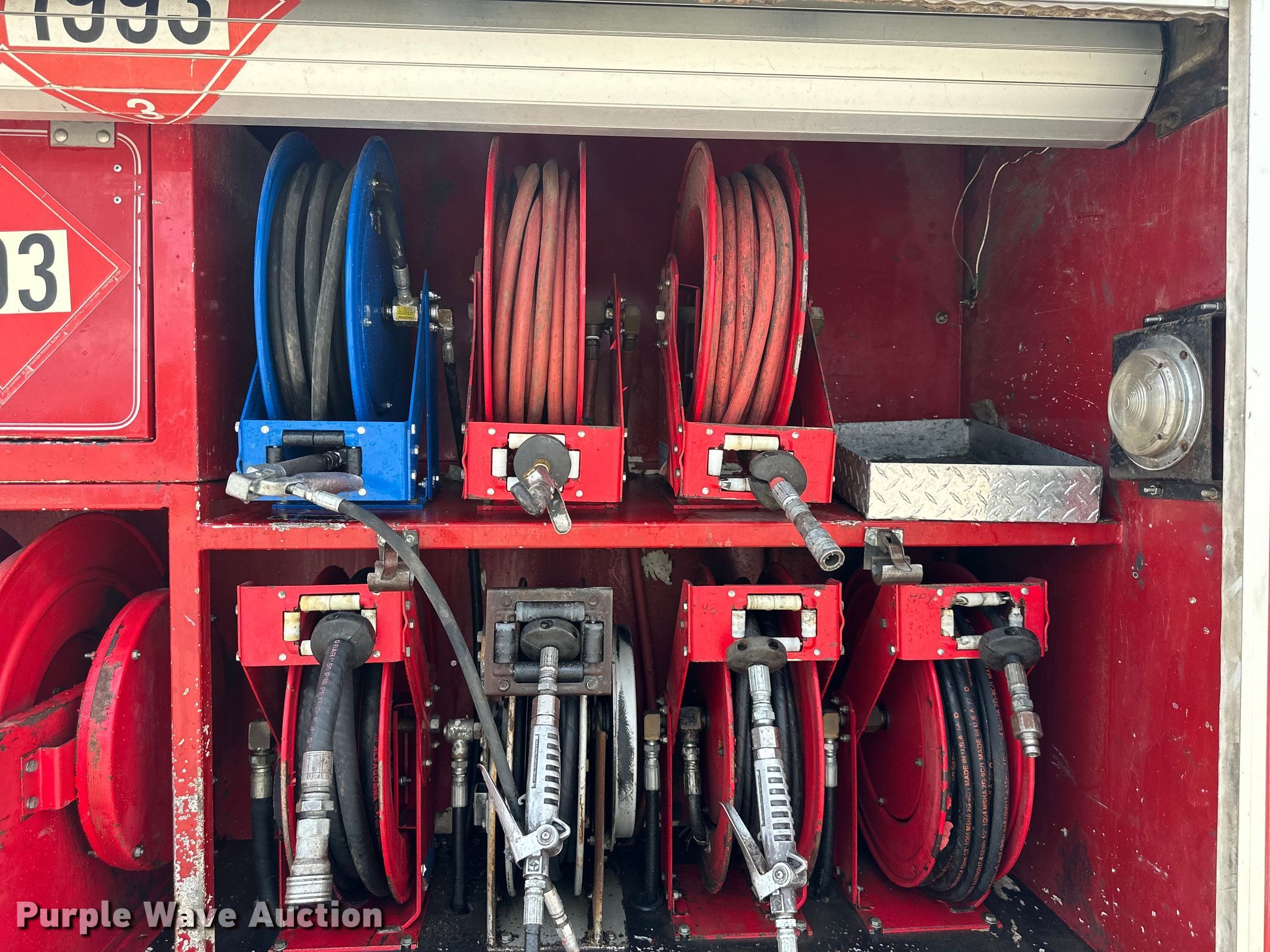 2008 Peterbilt 335 fuel / lube truck. Miles: 278,115 on odometer, Hours: 18,281 on meter, VIN: 2NPLHN8XX8M765065. Engine Paccar PX-8, Displacement: 8.3L, Cylinders: 6, Fuel type: Diesel. Transmission Manual, Speed: 10. Chassis Axles: Single, Differential lock: Full, Suspension: Spring, Brakes: Air, PTO. Interior AC, Heat, Heated mirrors, Cruise control. Features Bed / tank Capacity: 1,000 gallons, Compartments: 7, Hose reels: 8, Nozzles, Oil/lube reservoirs Hydraulic fluid, Grease, Motor oil, Used oil, FS Curtis air compressor Engine Honda GX390, PSI: 175. Tires Size: 11R22.5. Missouri title. Title distribution may be delayed up to 14 days from verification of funds. Linaweaver Construction, Inc.. Lansing, KS 66043