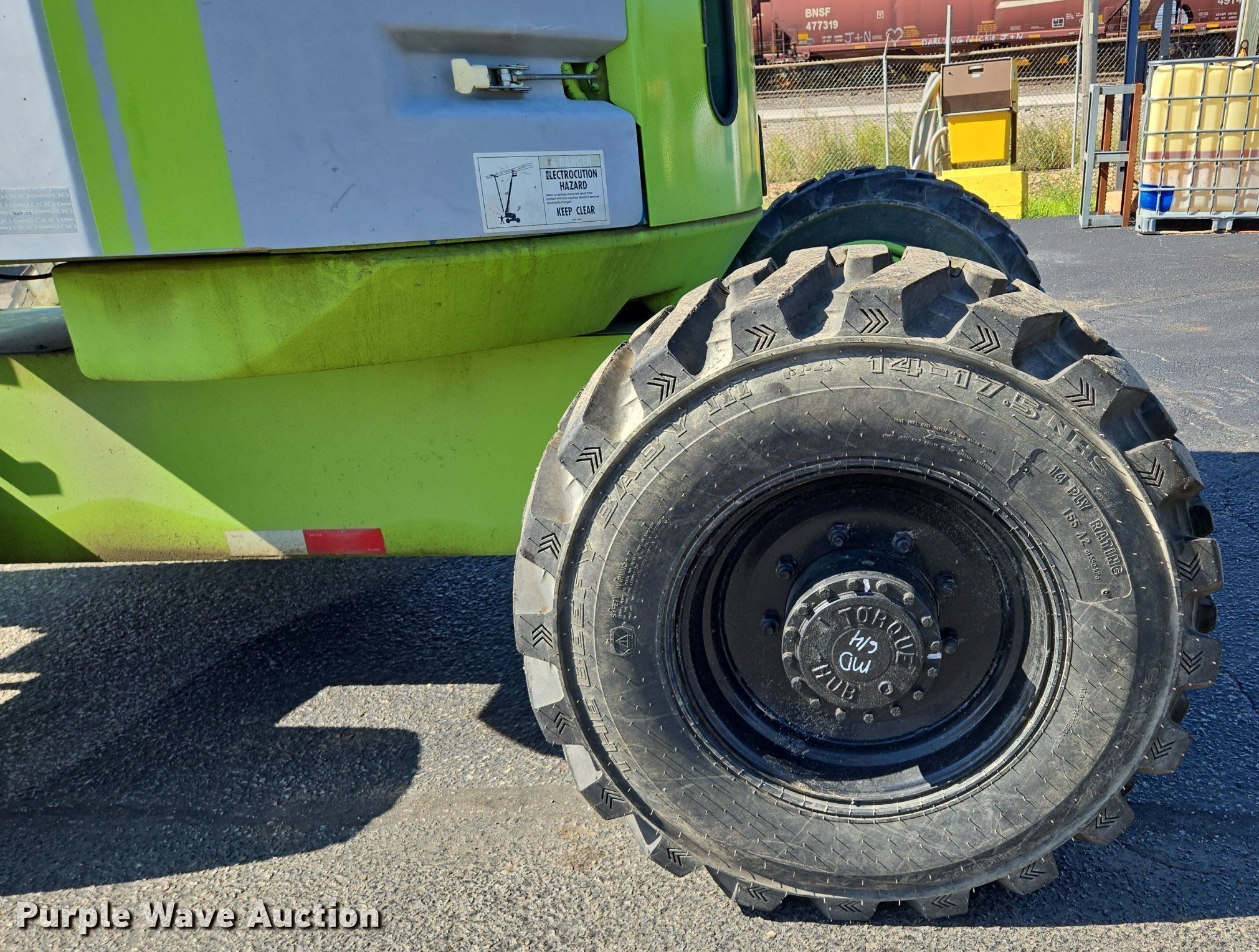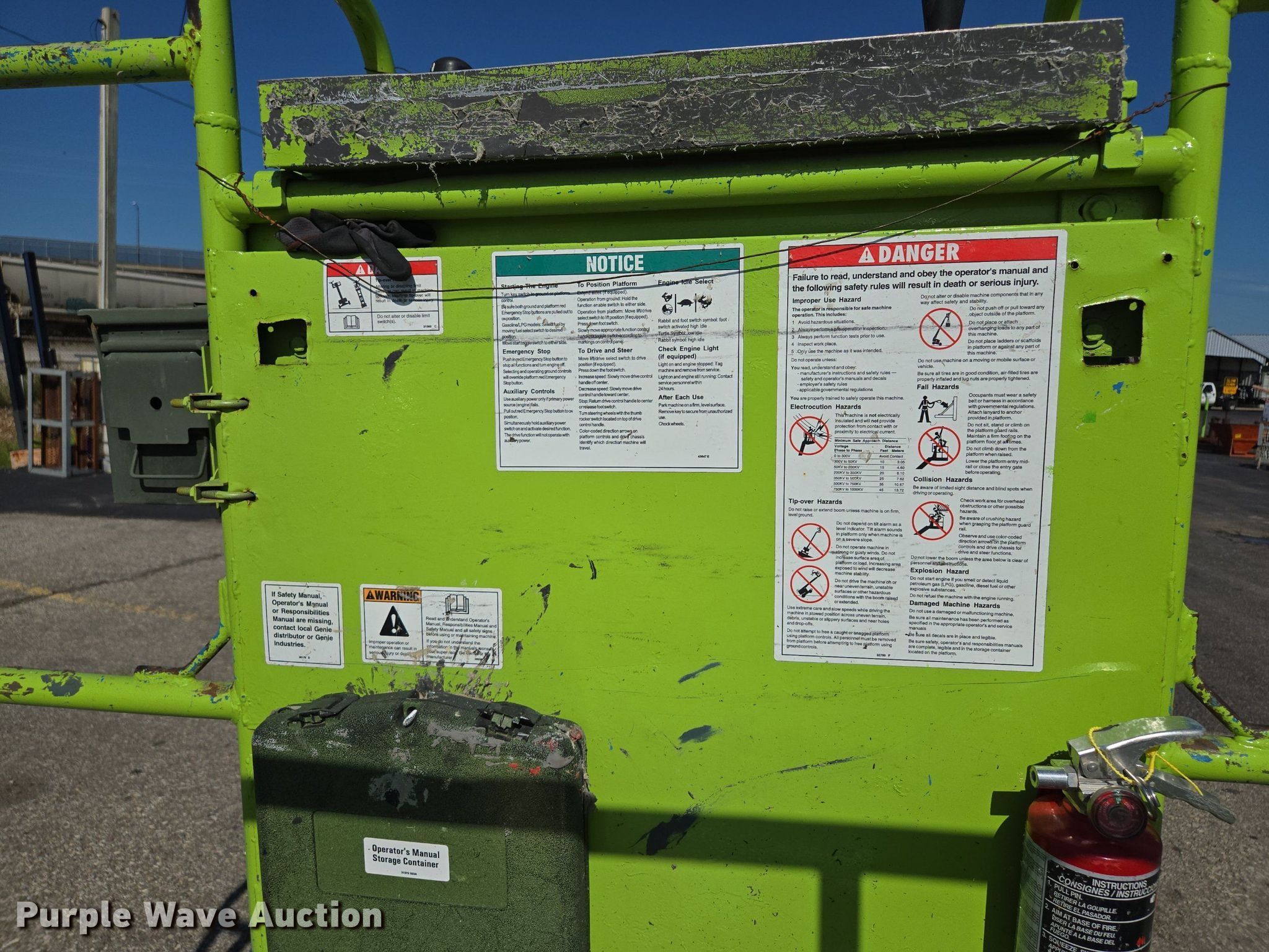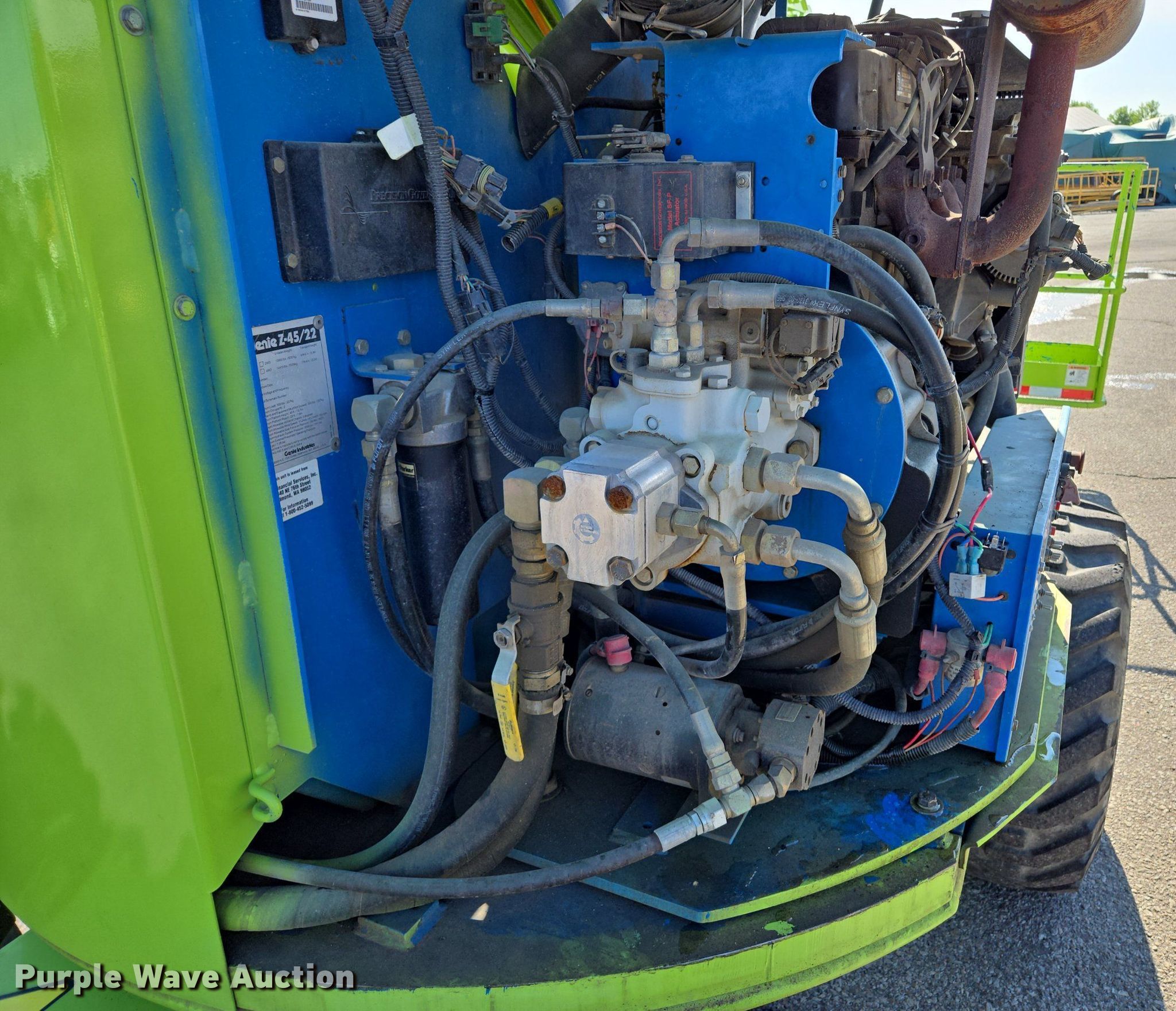1997 Genie Z-45/22 boom lift. Hours: 2,961 on meter, Serial: Z-45-005954. Engine Ford, Displacement: 2.3L, Cylinders: 4, Fuel type: LPG. Chassis Four wheel drive. Features Rough terrain, Boom type: Articulating, Telescopic, Maximum lift capacity: 500 lbs, Maximum reach length: 23', Maximum lift height: 45', Platform: 69" L x 27" W, Controls: Platform, Ground, Platform rotation: Hydraulic. Tires Tire size: 14-17.5. Delta Innovative Services. Kansas City, KS 66106