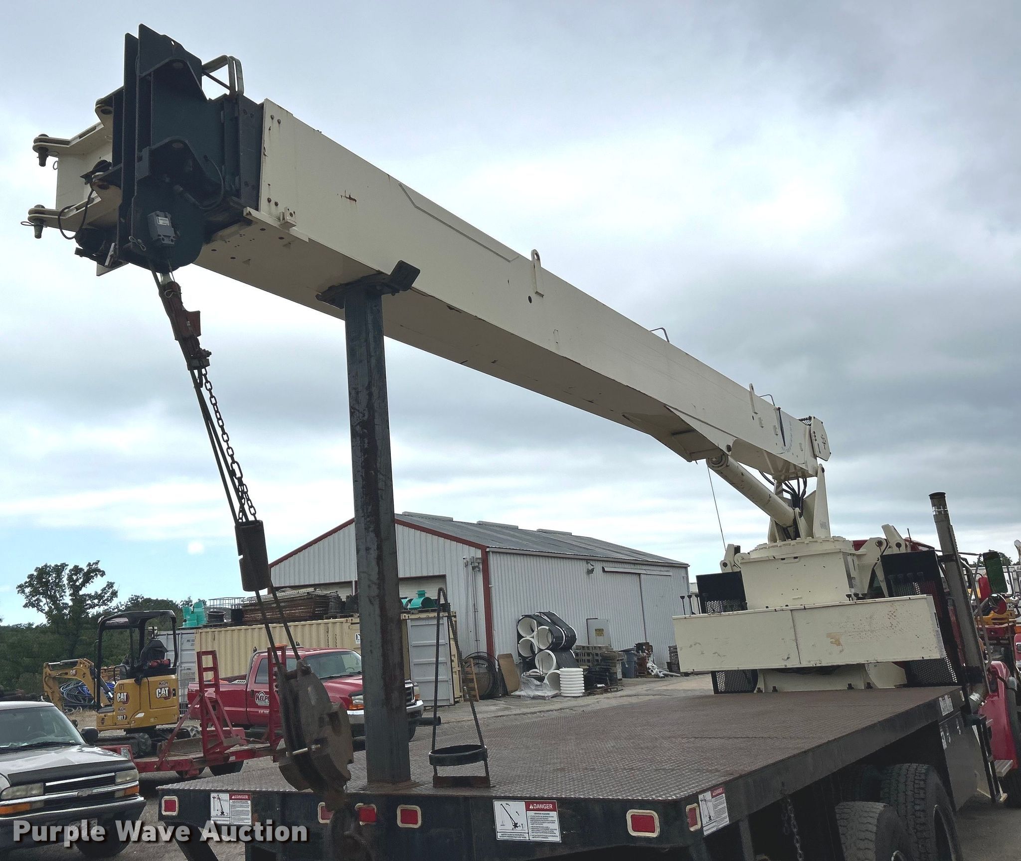 2006 Sterling L7500 crane truck. Miles: 36,296 on odometer, Hours: 4,319 on meter, VIN: 2FZHATDC66AW01967. Engine Caterpillar, Displacement: 7.2L, Cylinders: 6, Fuel type: Diesel. Transmission Eaton Fuller Roadranger RT/RTO-8LL, Manual, Speed: 10. Chassis Axles: Tandem, Suspension: Spring over walking beam, Brakes: Air, PTO, GVWR: 52,350 lbs FAWR: 12,350 lbs, IAWR: 20,000 lbs, RAWR: 20,000 lbs. Interior AC, Heat, Cruise control. Features Flatbed 20' L x 96" W, Crane National Crane 600E Serial: 292487, Boom Telescopic, Maximum boom length: 90' Sections: 4, Maximum lift capacity: 40,000 lbs, Jib: 45', Boom controls Ground, Crane block Capacity: 12.5 tons, Lift chart. Tires Front: 12R22.5, Rear: 11R22.5. Missouri title. Kelpe Contracting, Inc.. Wildwood, MO 63038