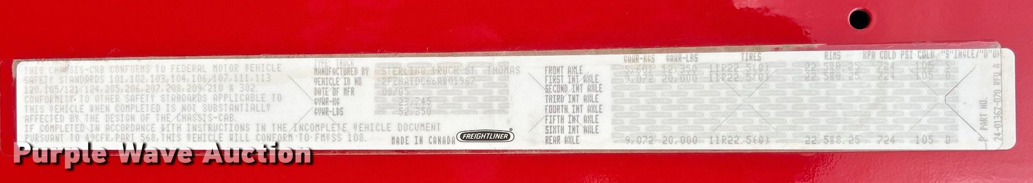 Purple Wave is selling a used Crane Truck in Missouri. This item is a 2006 Sterling L7500 crane truck with the following: Miles: 36,296 on odometer, Hours: 4,319 on meter, VIN: 2FZHATDC66AW01967