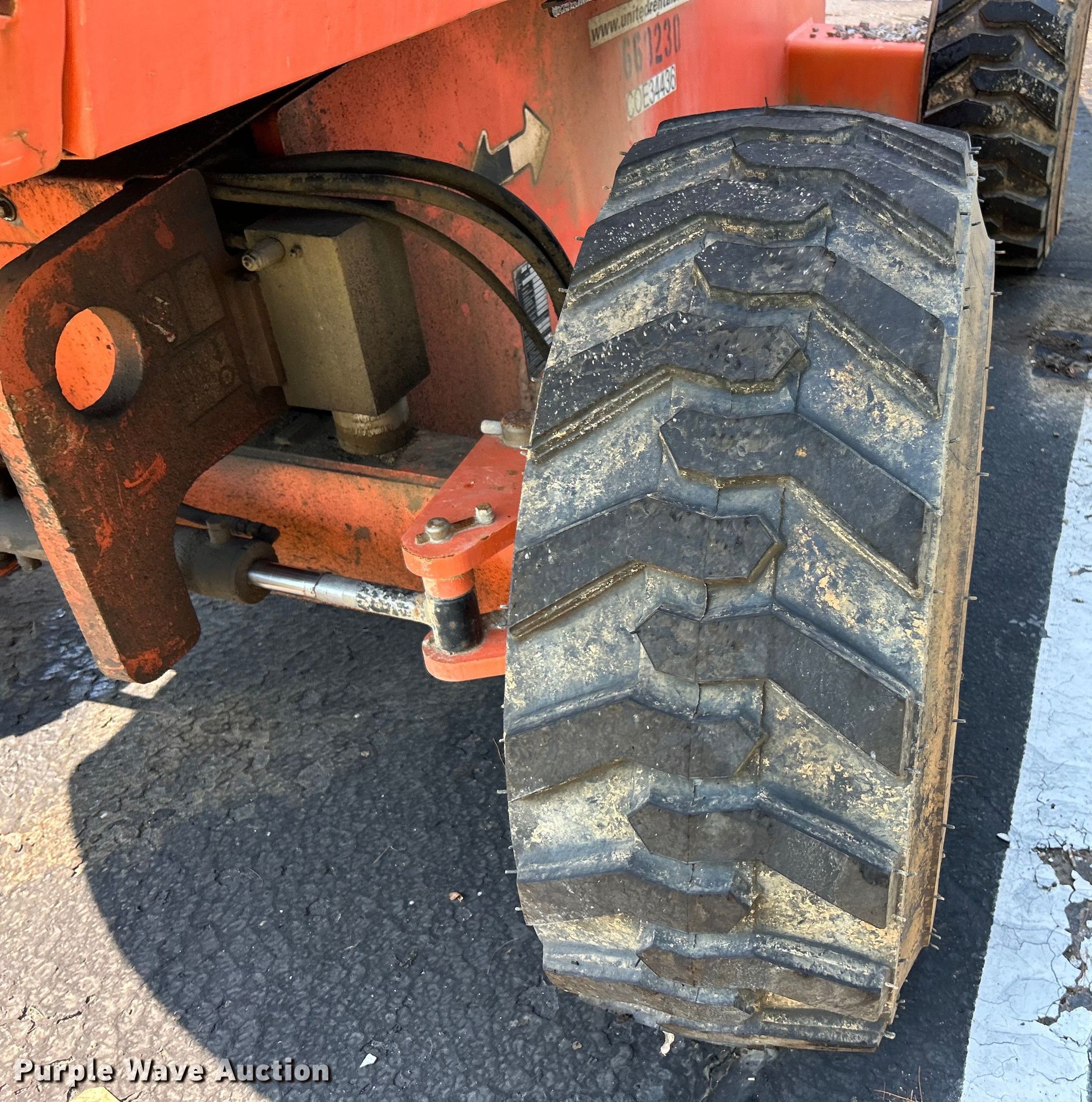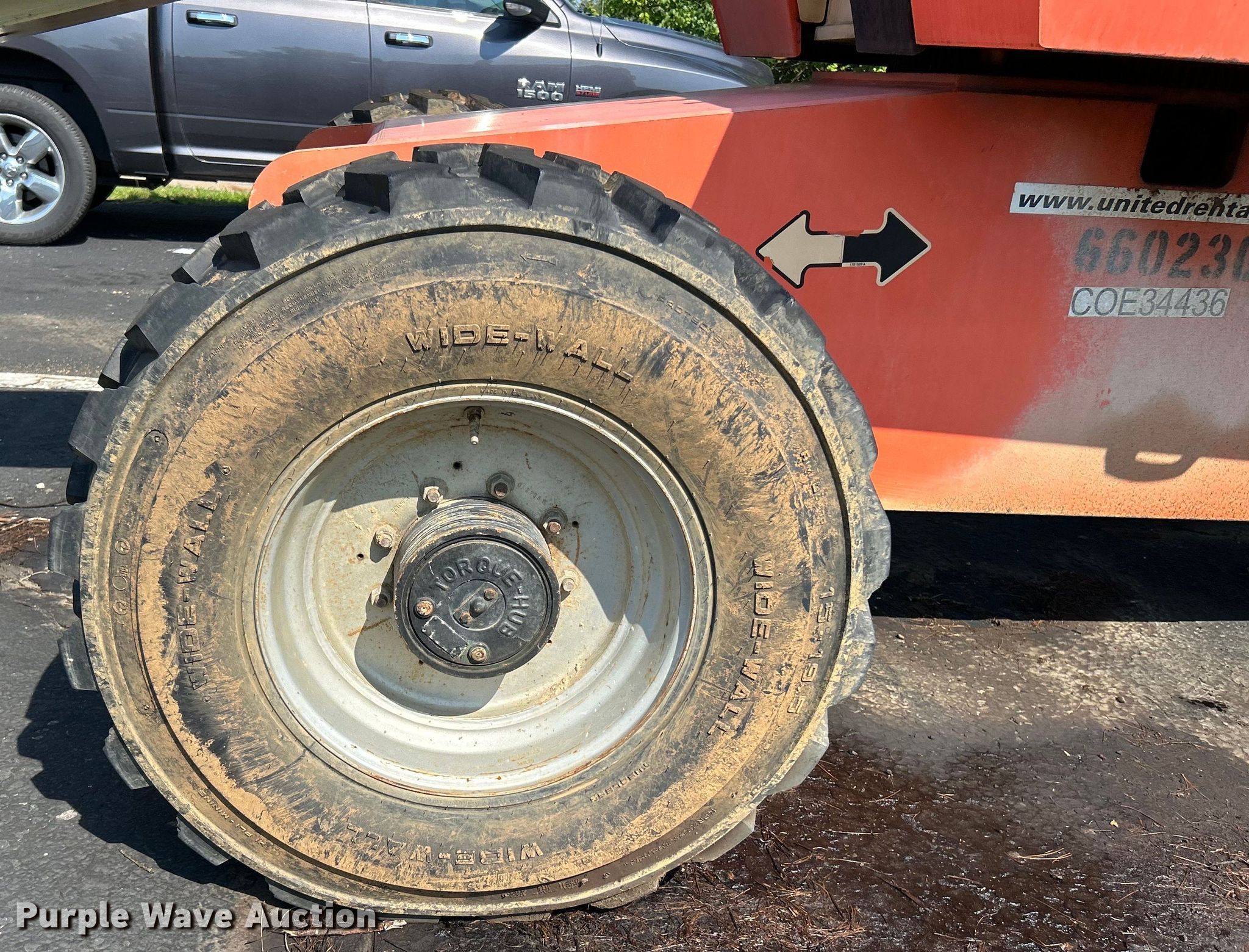 2000 JLG 660SJ boom lift. Hours: 5,250 on meter, Serial: 0300081047. Engine Deutz, Displacement: 3.109L, Cylinders: 4, Fuel type: Diesel. Chassis Four wheel drive. Features Rough terrain, Boom type: Telescopic, Maximum lift capacity: 500 lbs, Maximum reach length: 48.75', Maximum lift height: 66', Hydraulic extendable jib, Hydraulic leveling, Platform: 36" L x 96" W, AC power outlet, Controls: Platform, Ground, Platform rotation: Hydraulic. Tires Tire size: 15-19.5. Notes Jib cylinder issues, leaks. Big Boy's Steel Erection. Hazelwood, MO 63042