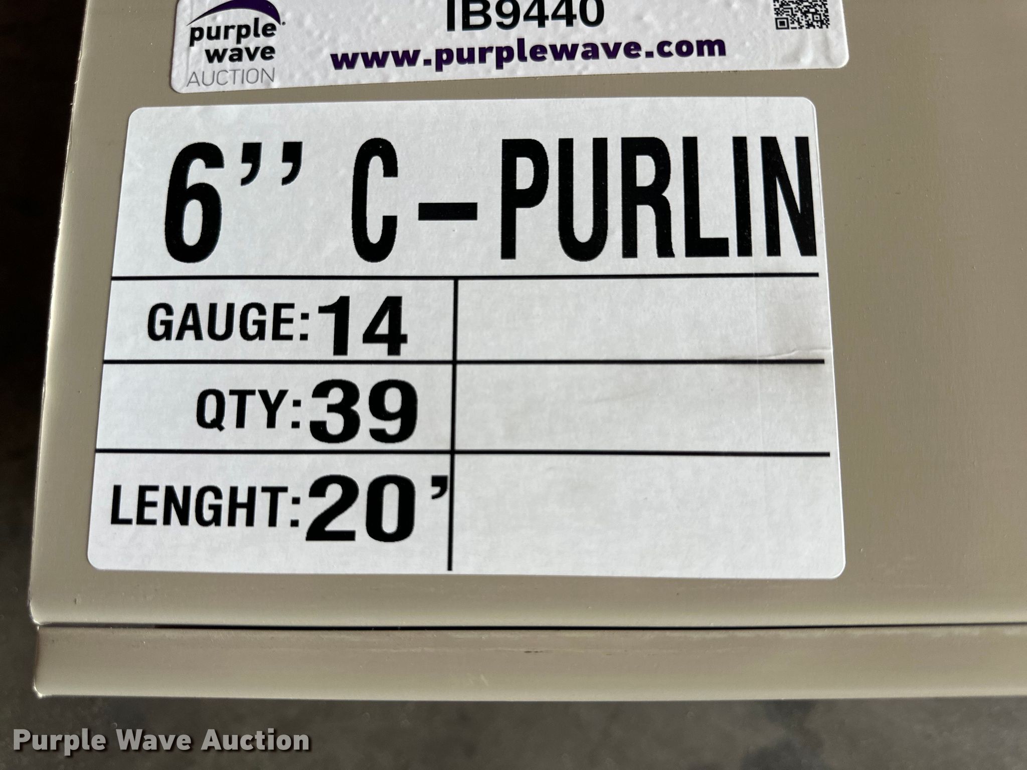 Purple Wave is selling a used Building Materials in Texas. This item is a (39) Doerkson Metal Components C-Purlins with the following: 6' L x 20" W, 14 gauge, Possible blemishes