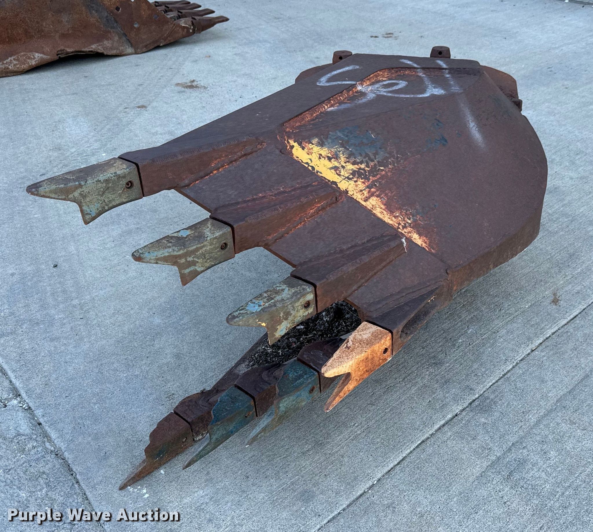 Purple Wave is selling a used Excavator Attach. in Kansas. This item is a Hensley v-bottom bucket with the following: Width: 24", Teeth: 7